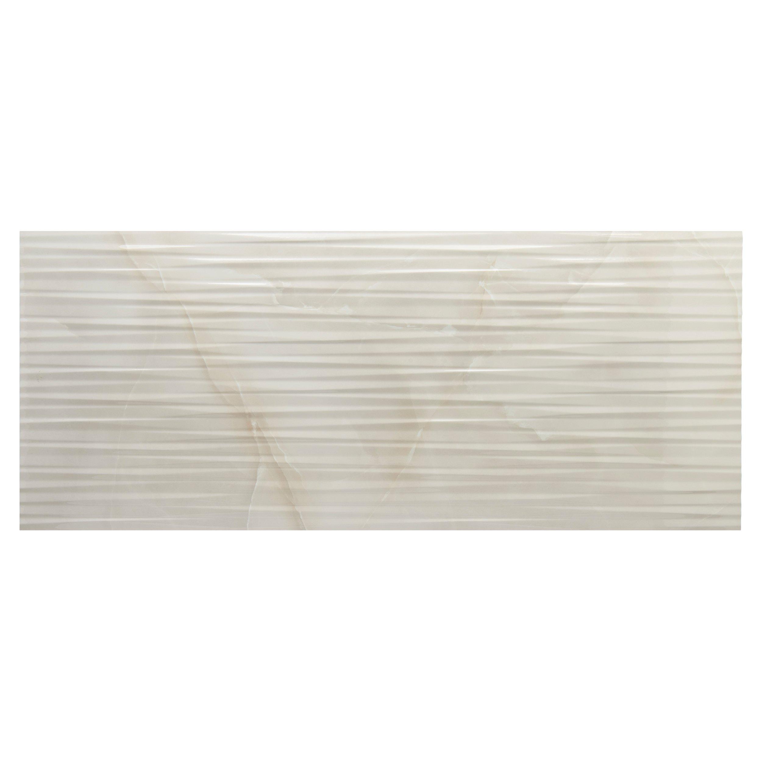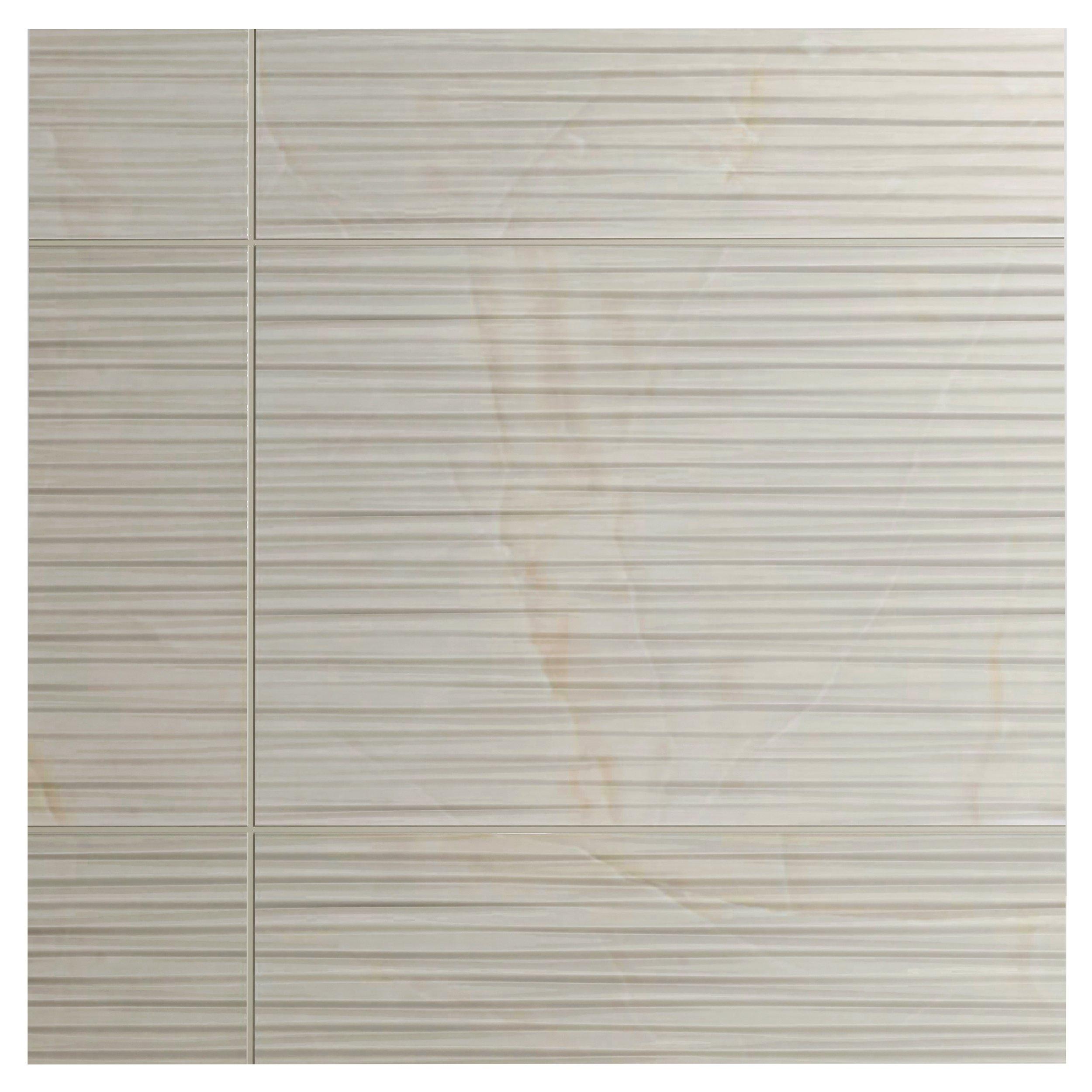 The Onyx Pearl Ceramic Polished Tile by San Giorgio is an elegant addition to any indoor space, perfect for creating a luxurious atmosphere in your home. This high gloss, 20 x 48 rectangular wall tile is designed to enhance the beauty of your kitchen, bathroom, or backsplash with its pristine white color and polished finish.