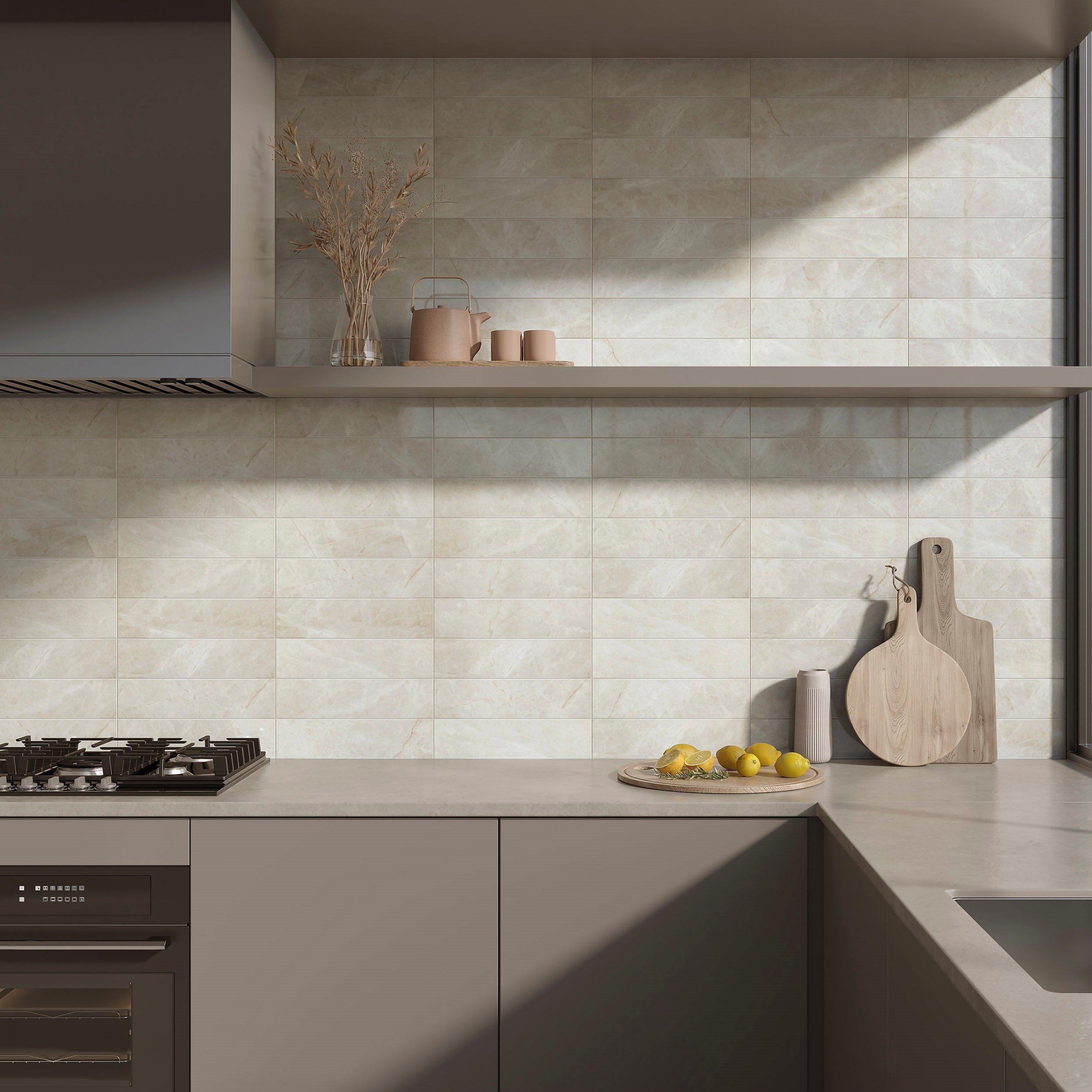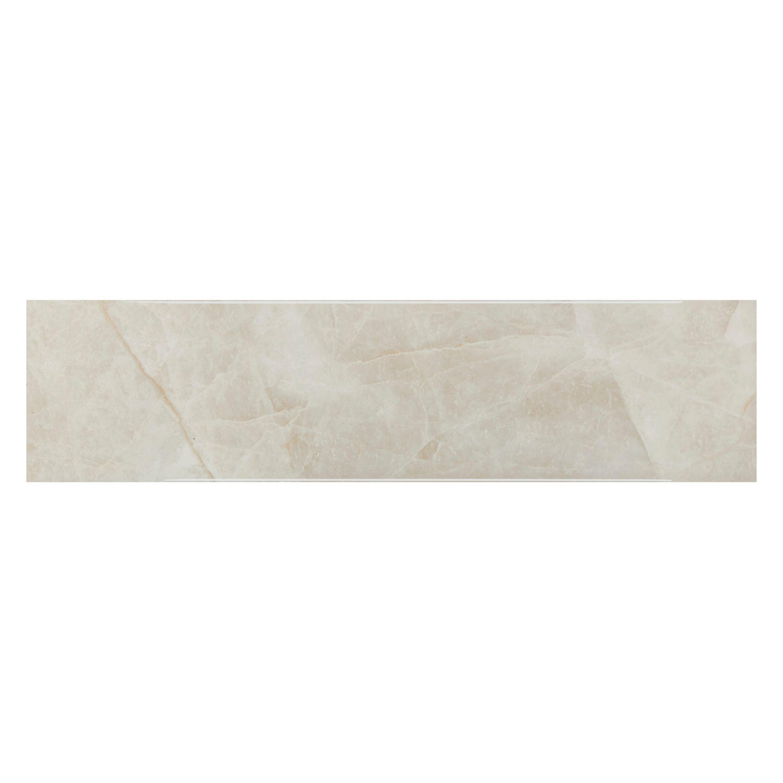 Personalize your space with the Taj Mahal Ceramic Polished Tile. This natural high gloss finish tile will make a great impact in small areas like the bathroom, den, or other overlooked spaces.