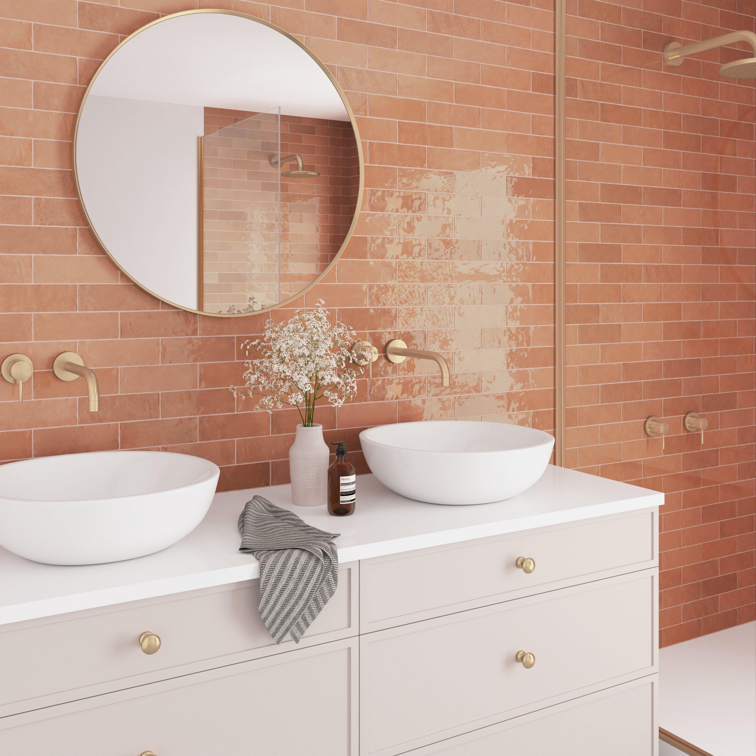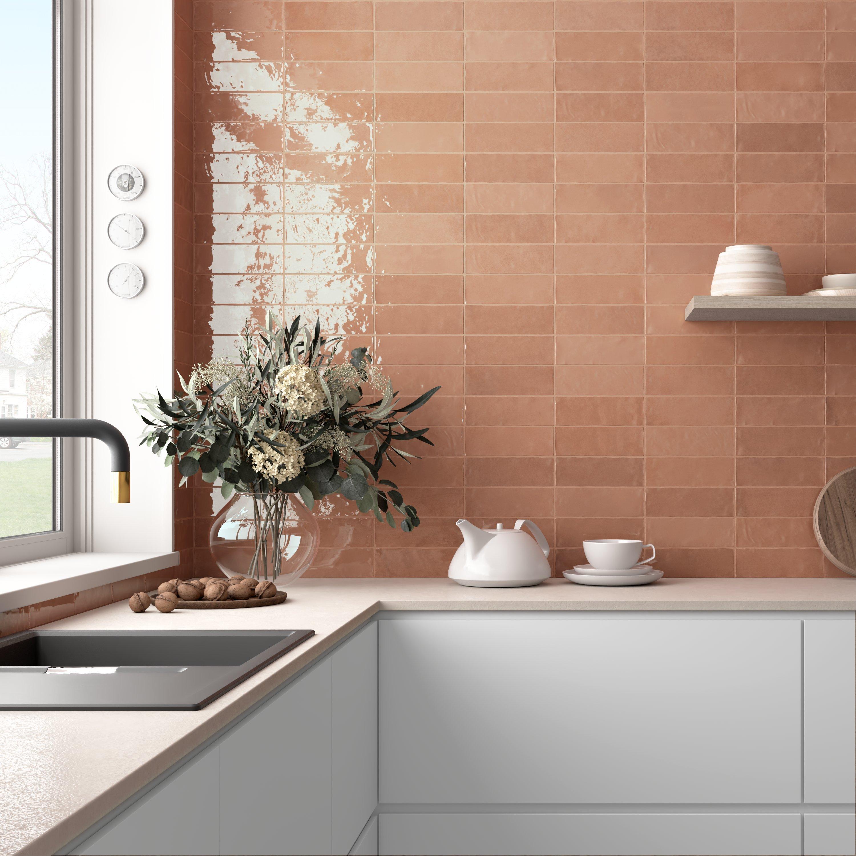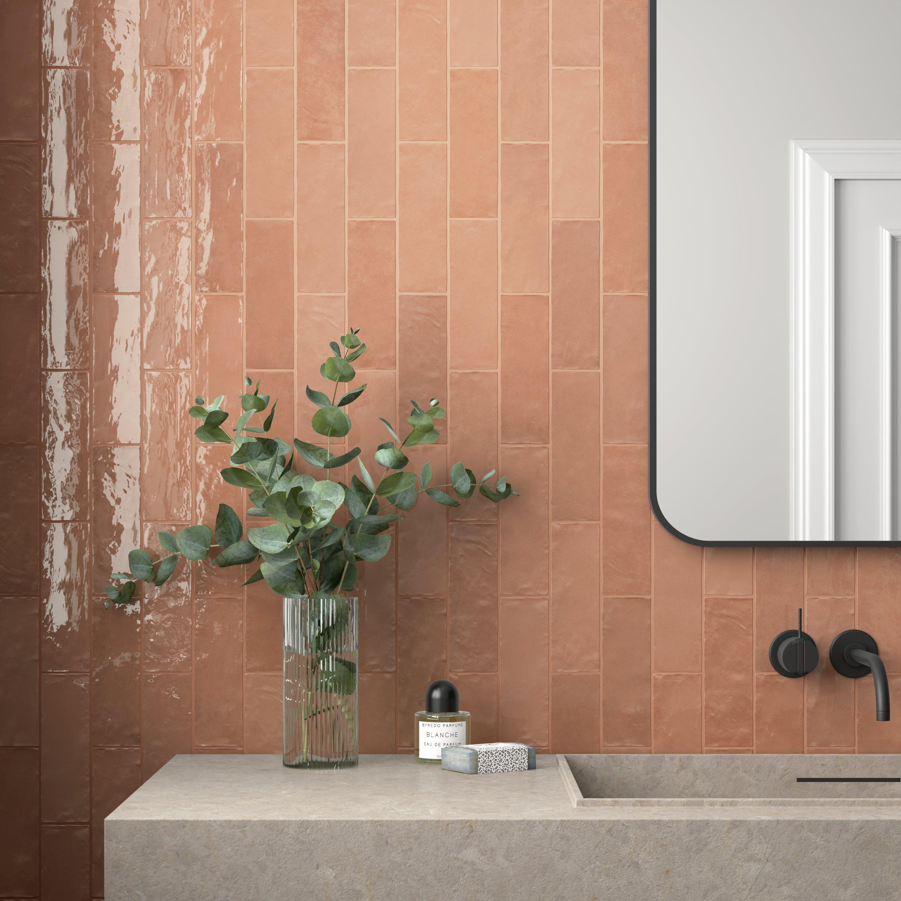 For an elevated look to your design, choose the Zellige Dust Rose Ceramic Tile with a high gloss finish. Use this red/ pink tile to add new visual interest in any space like the bathroom, kitchen, living room, and more.