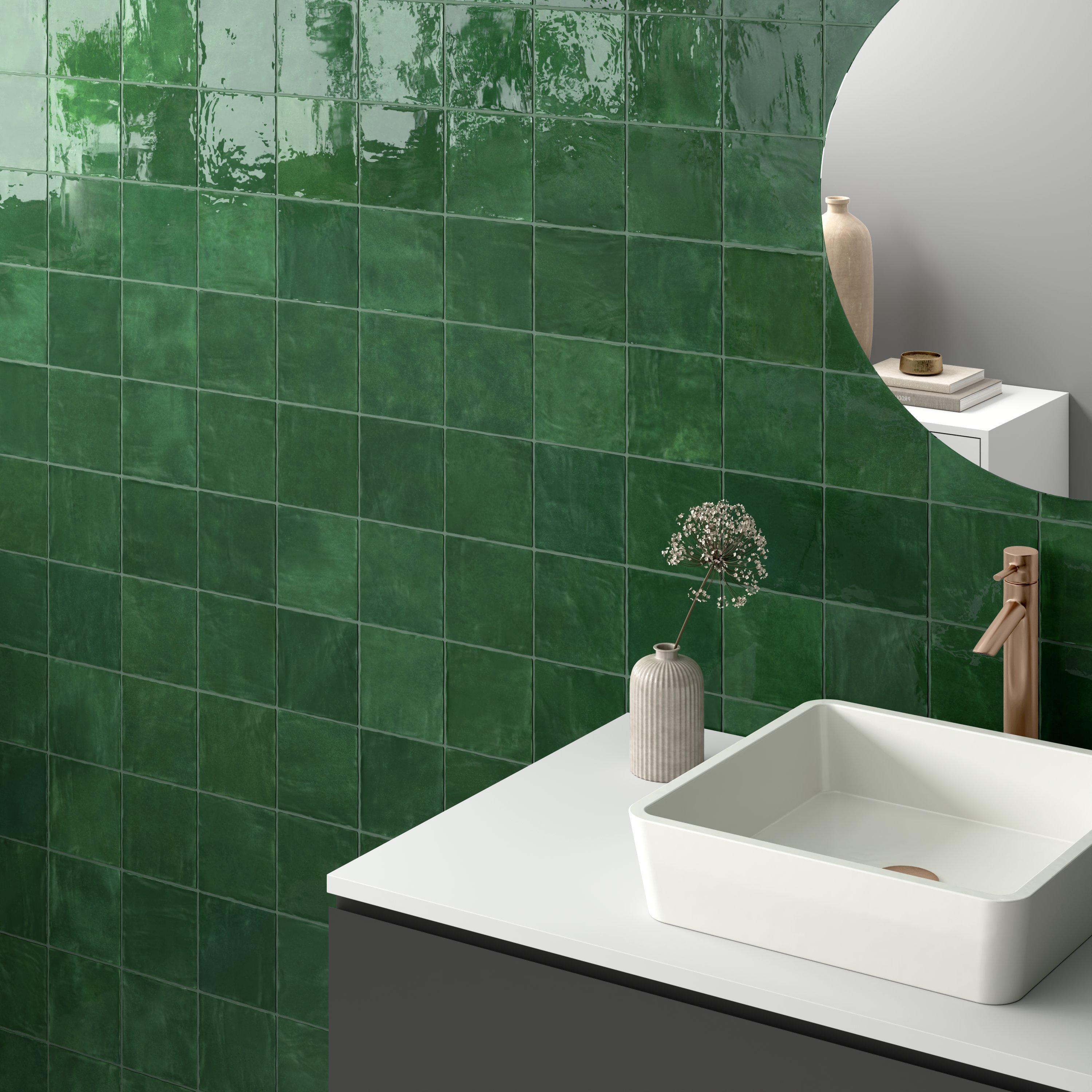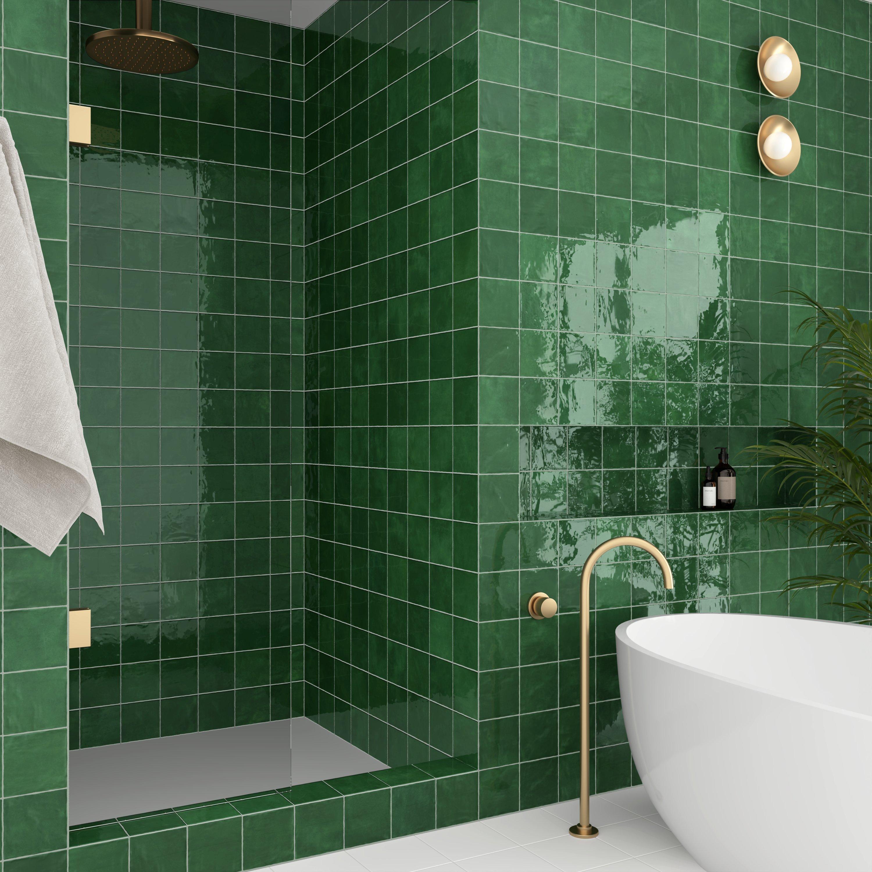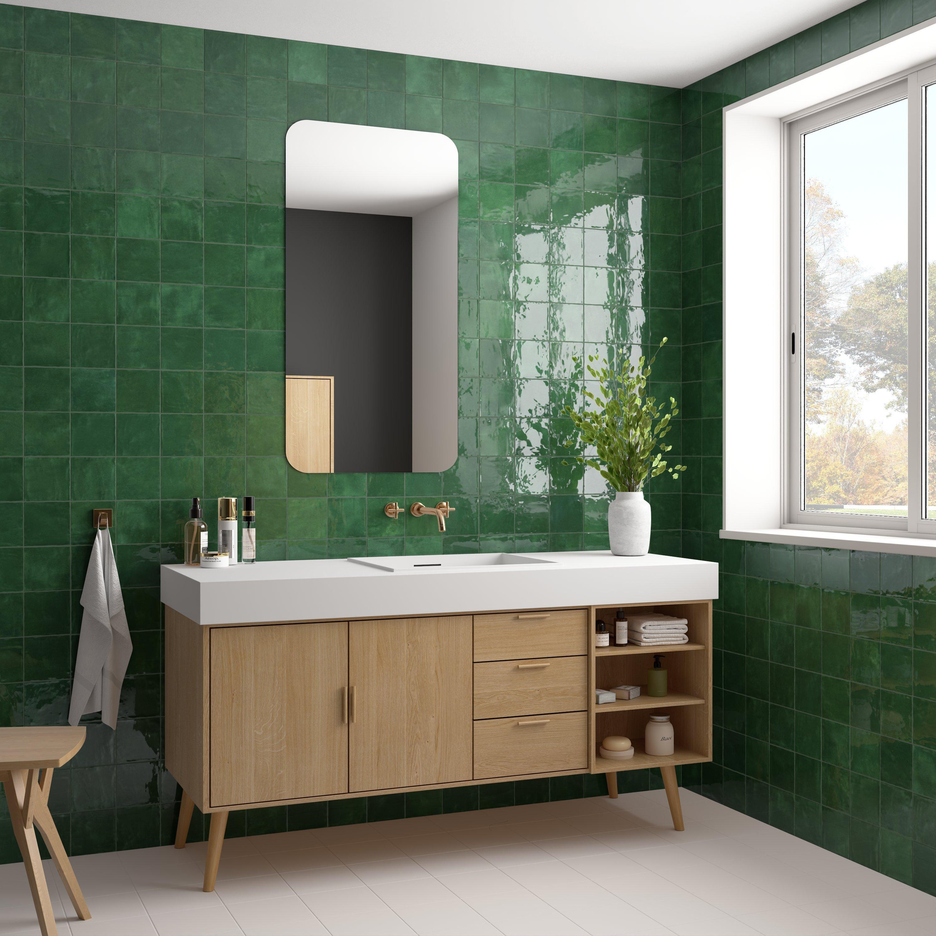 For an elevated look to your design, choose the Zellige Forest Ceramic Tile with a high gloss finish. Use this green tile to add new visual interest in any space like the bathroom, kitchen, living room, and more.