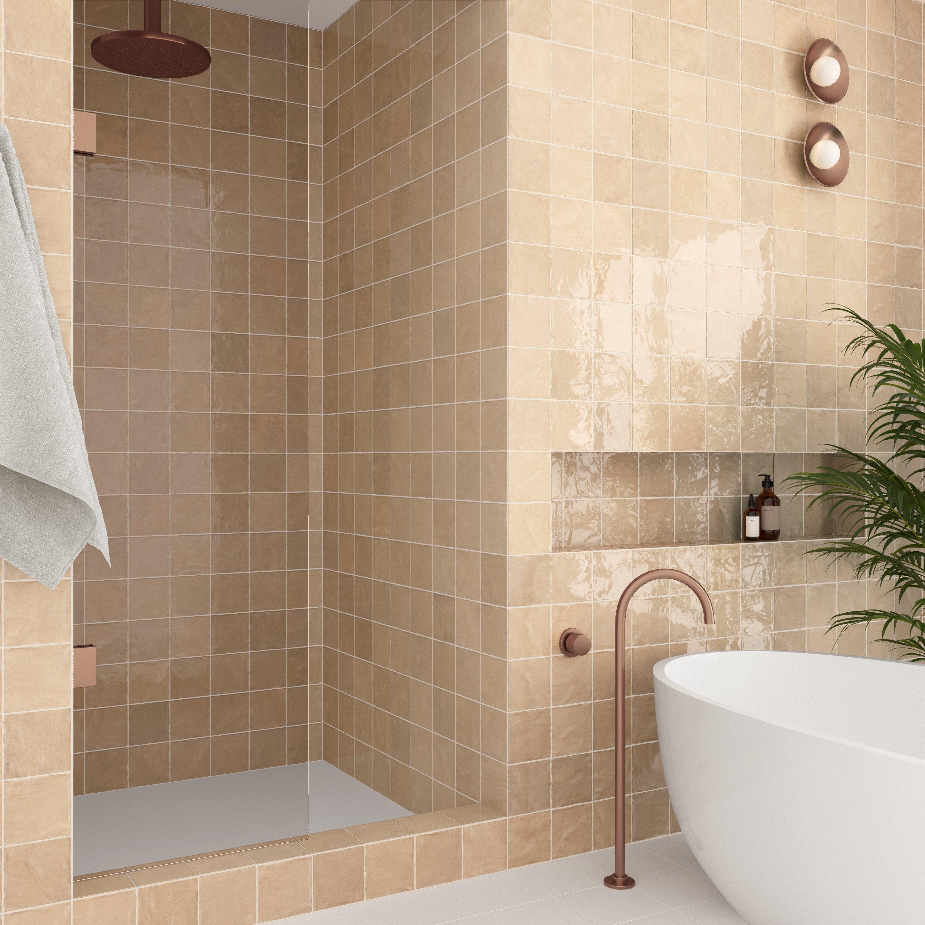 Whether you’re looking to create an accent piece or give a bigger area unique appeal, you can upgrade your space with Zellige Fossil Ceramic Tile.