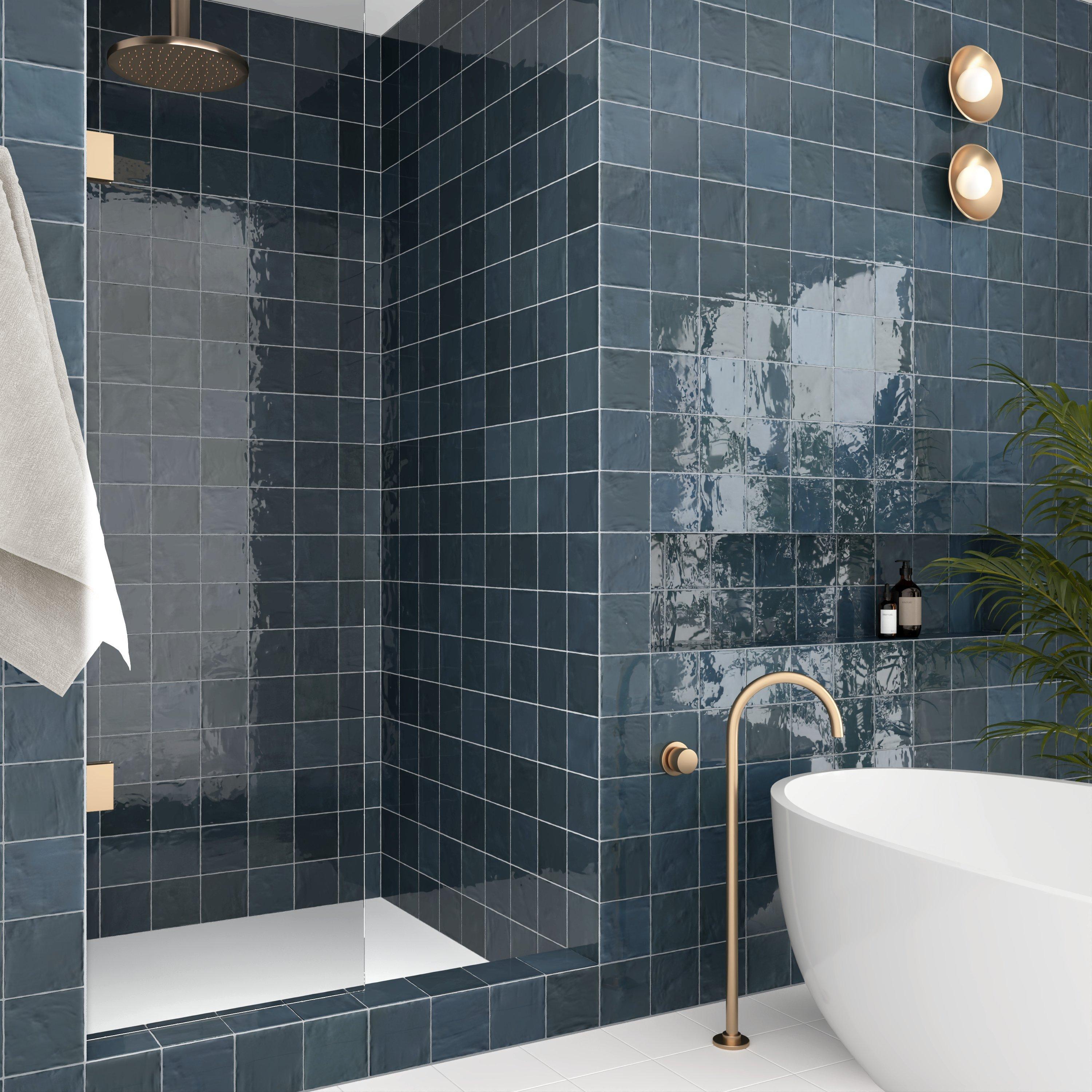 Make a statement with the 5 x 5 Zellige Oxford Ceramic Tile. This tile is blue and has a high gloss finish, making it an excellent addition for your style and space.