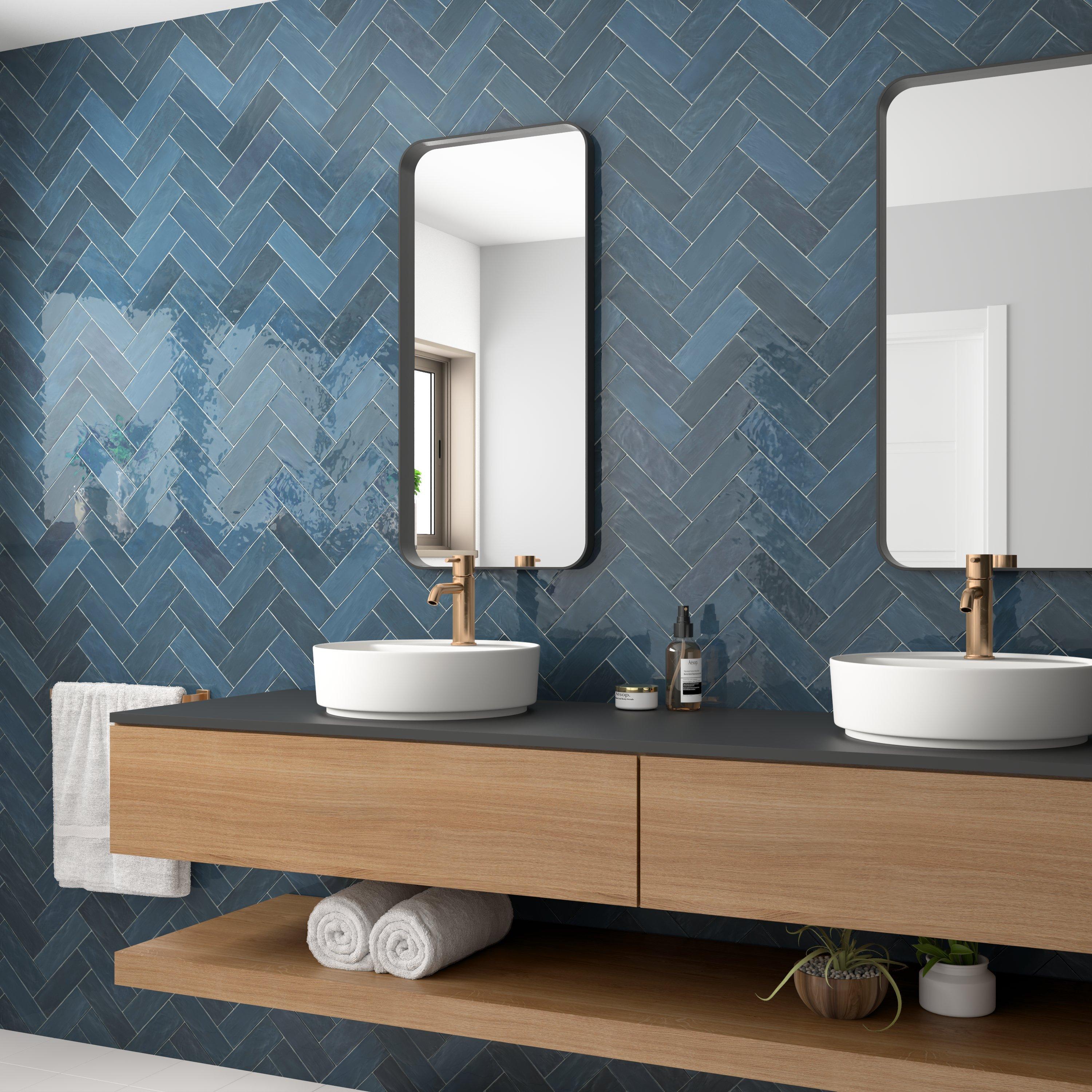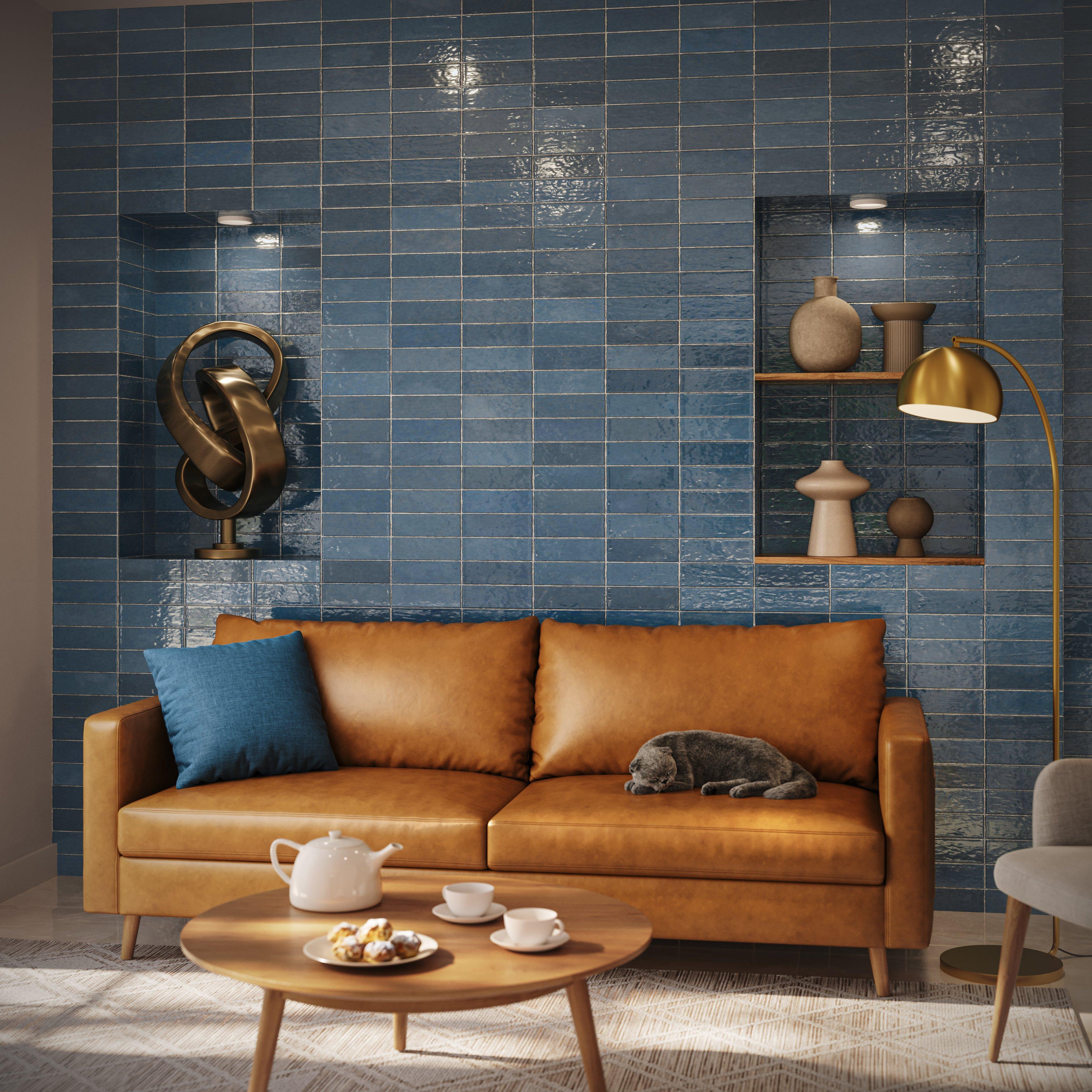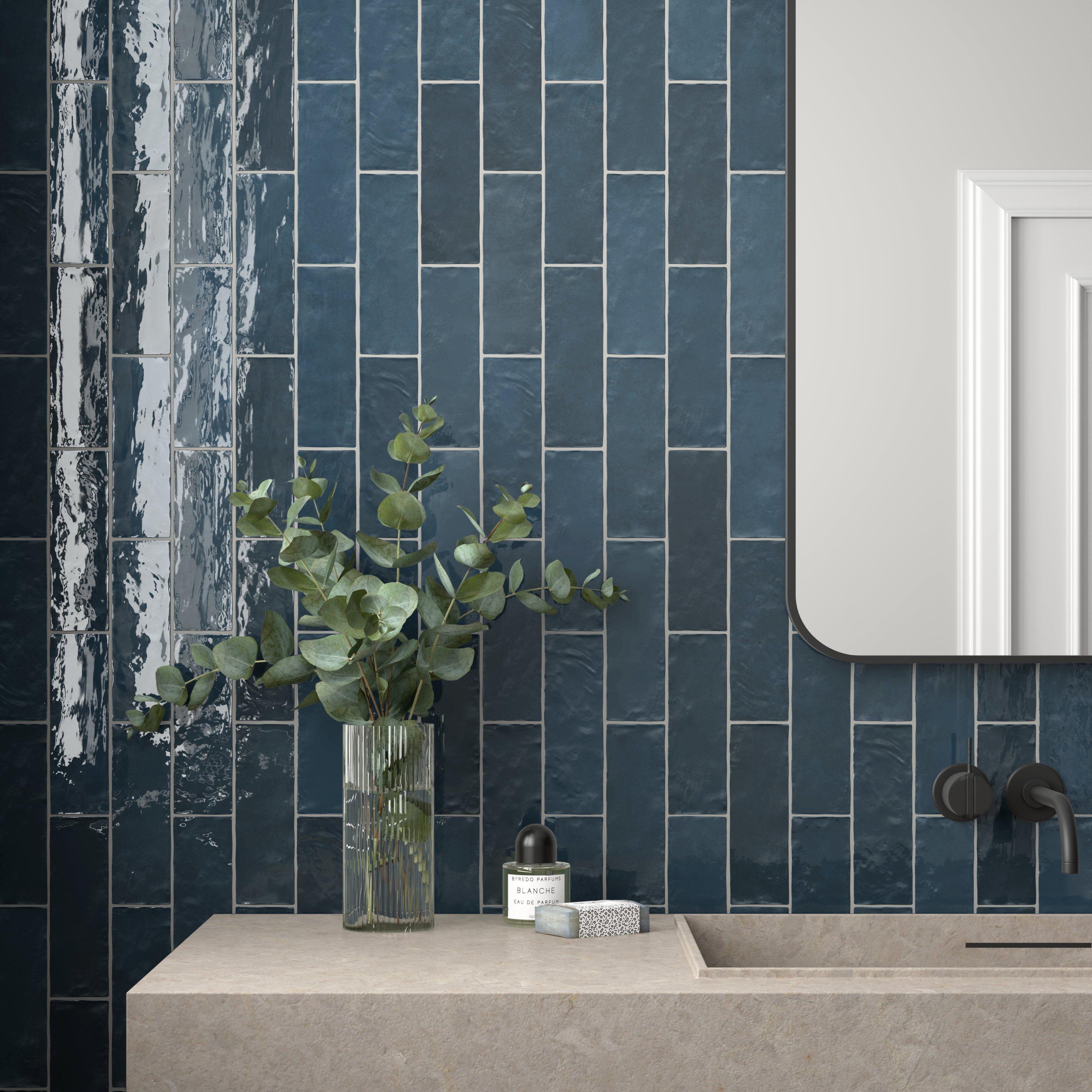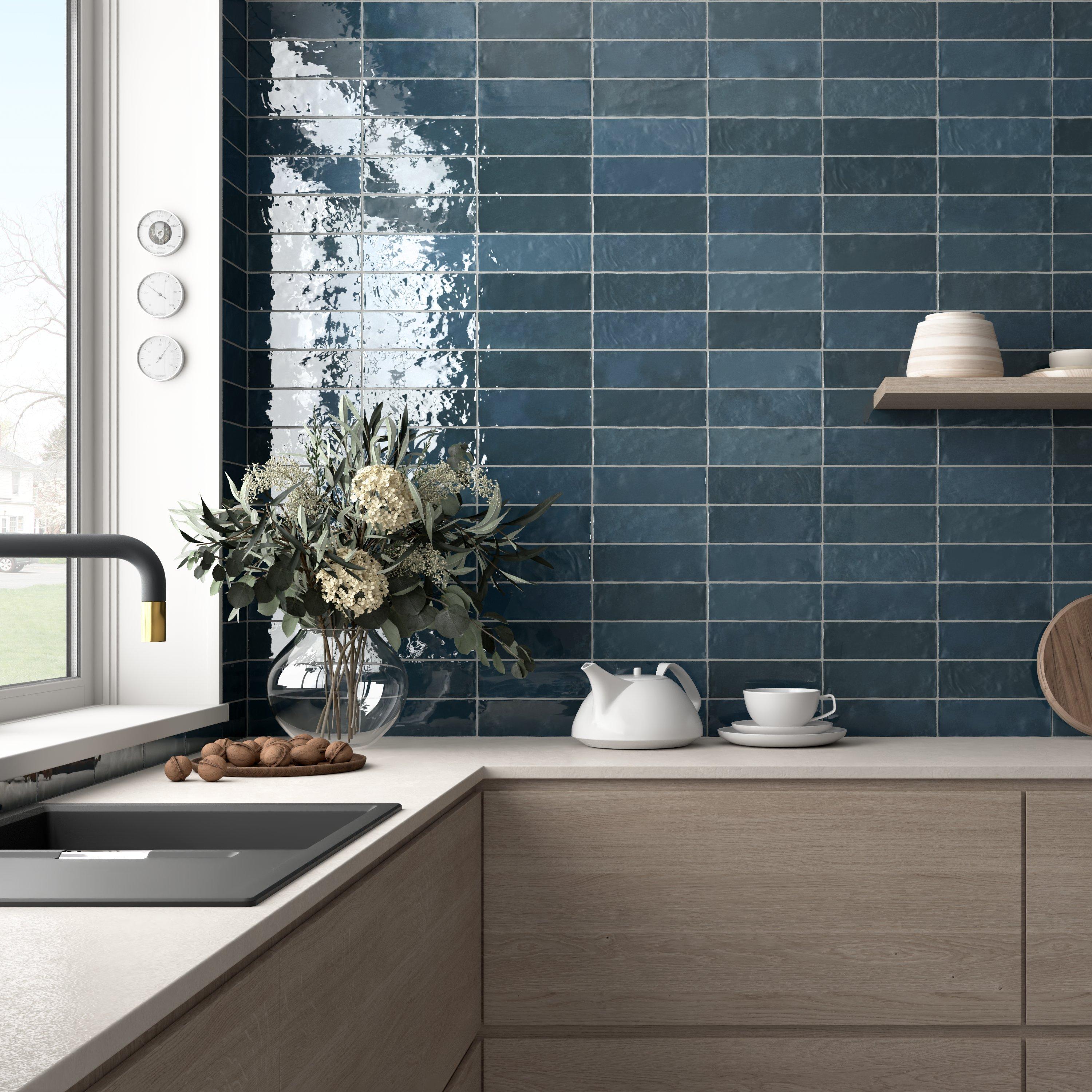 For an elevated look to your design, choose the Zellige Oxford Ceramic Tile with a high gloss finish. Use this blue tile to add new visual interest in any space like the bathroom, kitchen, living room, and more.