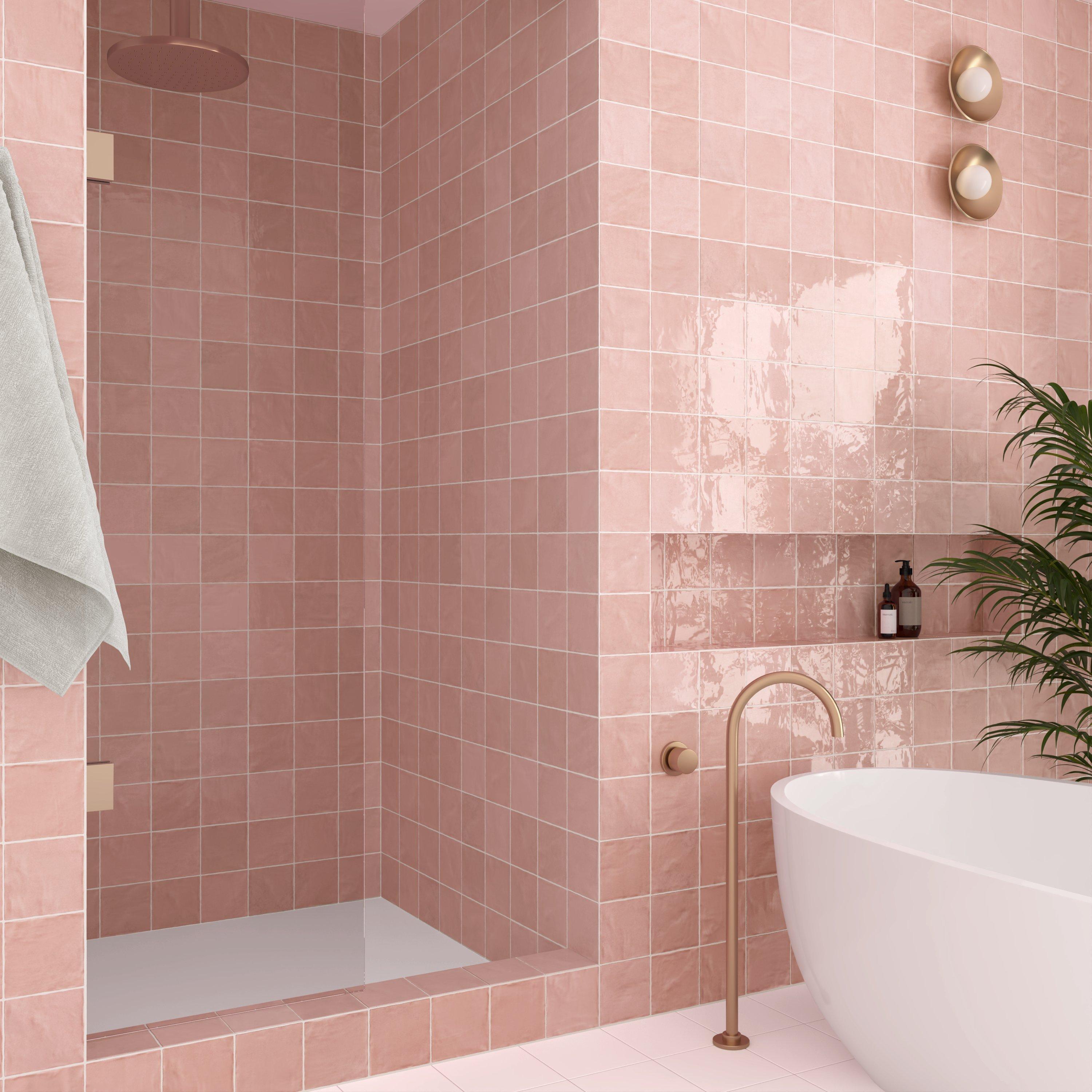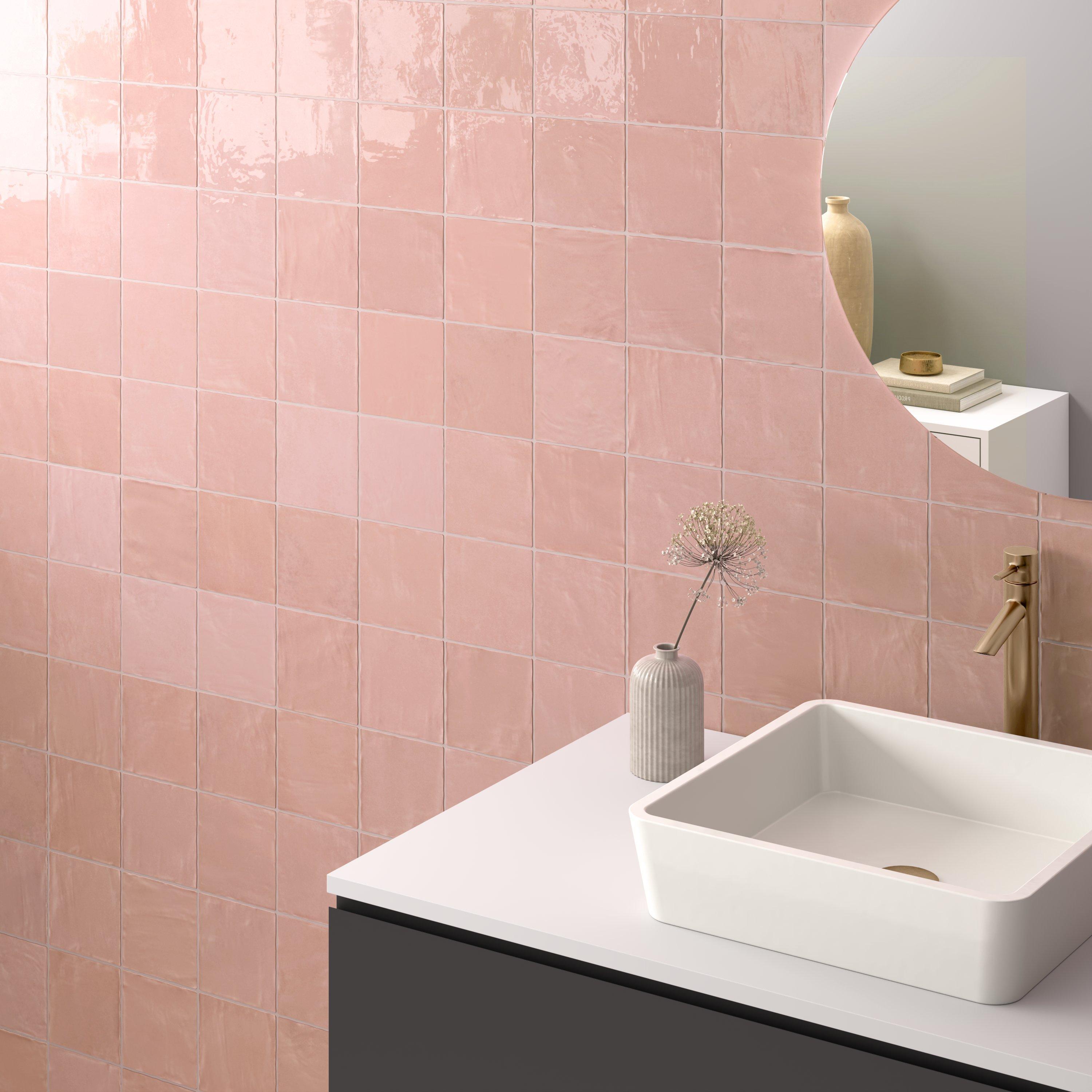For an elevated look to your design, choose the Zellige Peony Ceramic Tile with a high gloss finish. Use this red/ pink tile to add new visual interest in any space like the bathroom, kitchen, living room, and more.