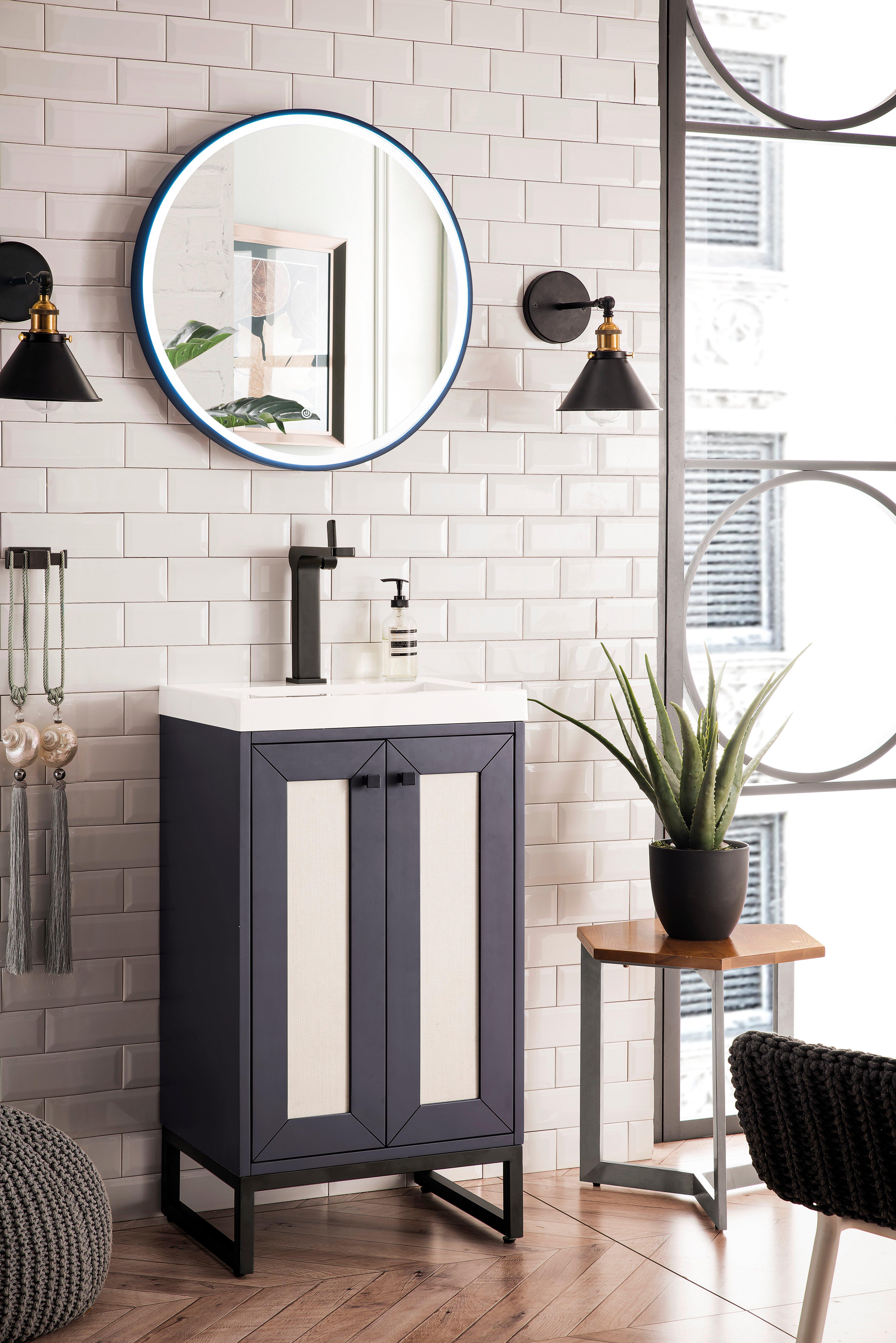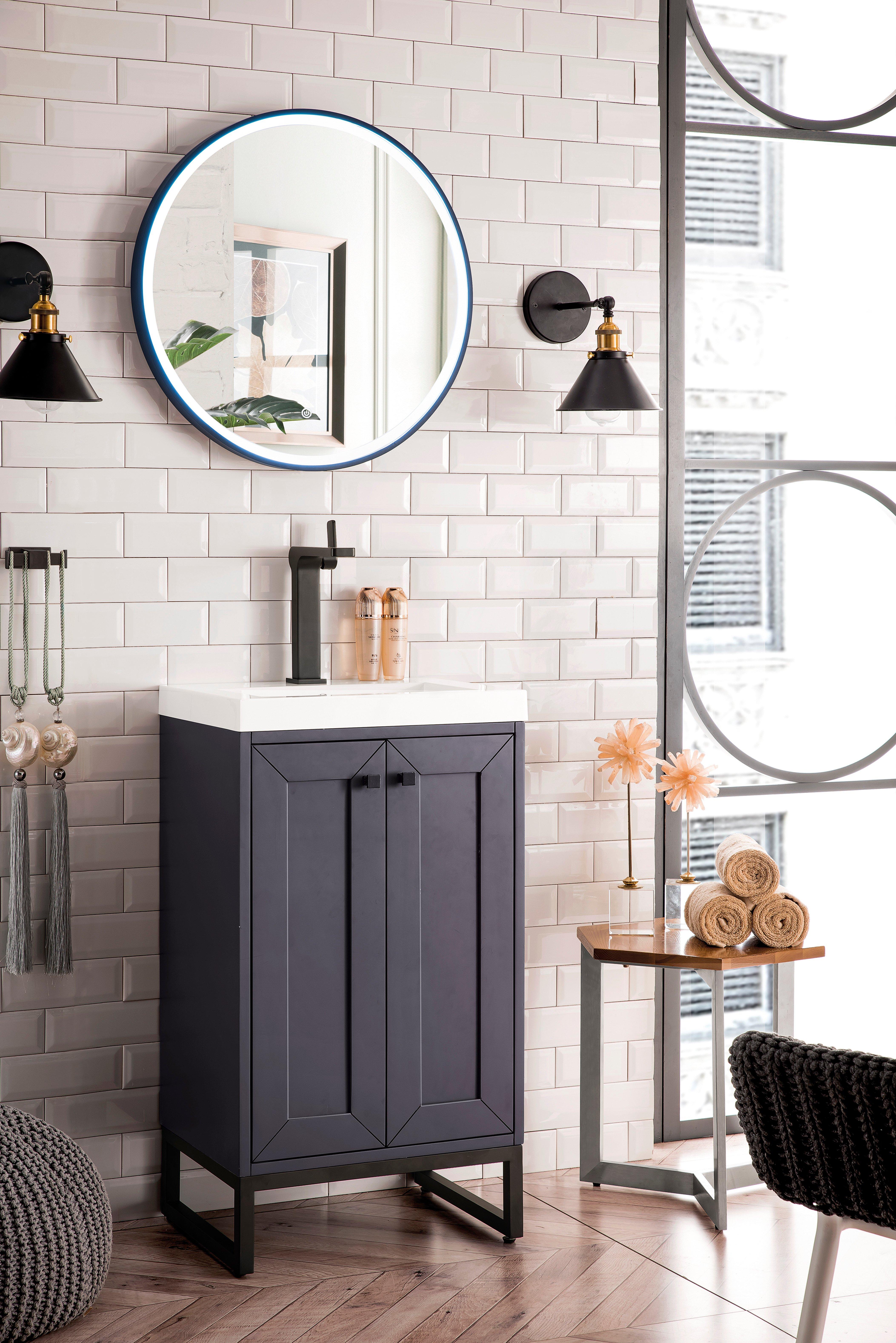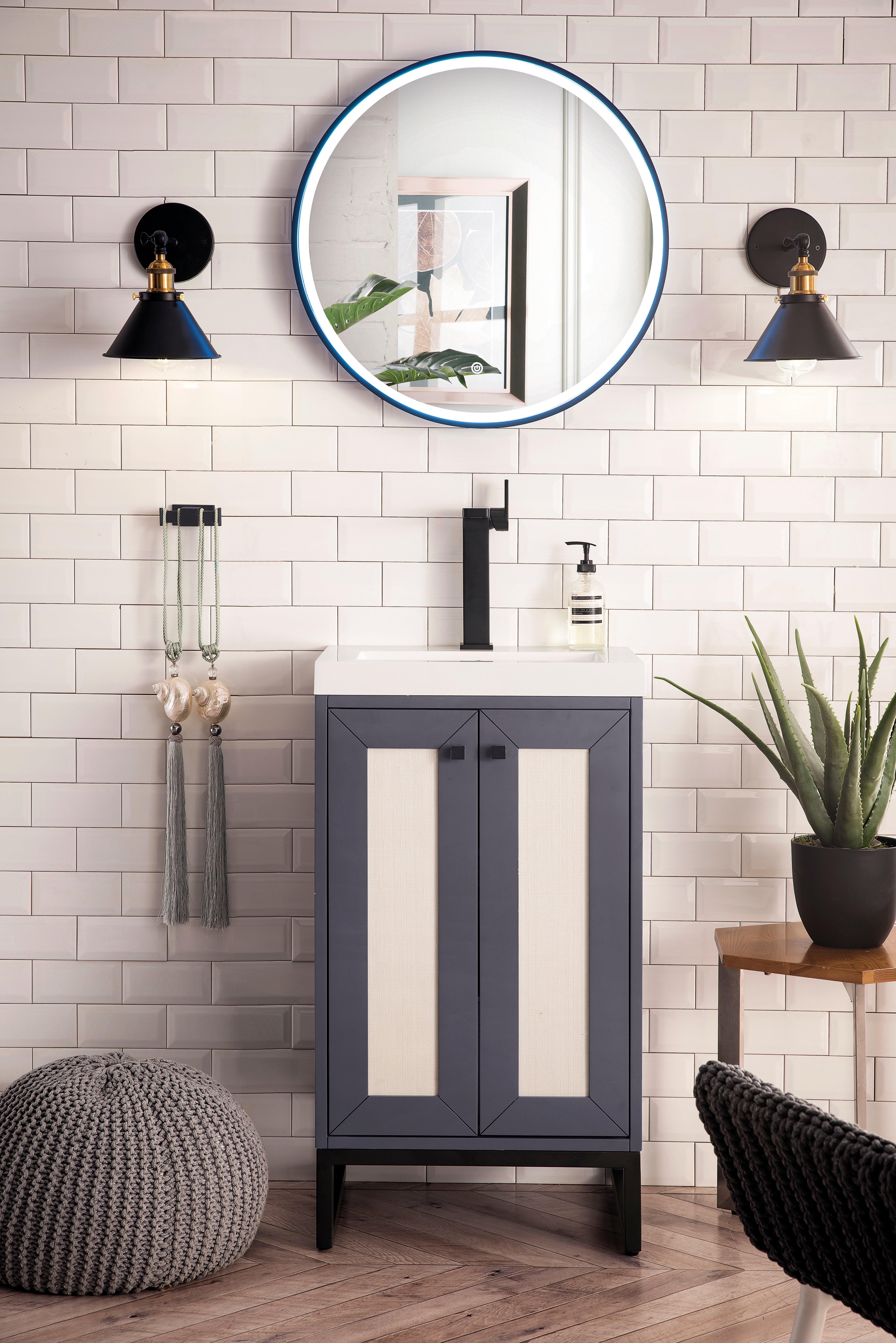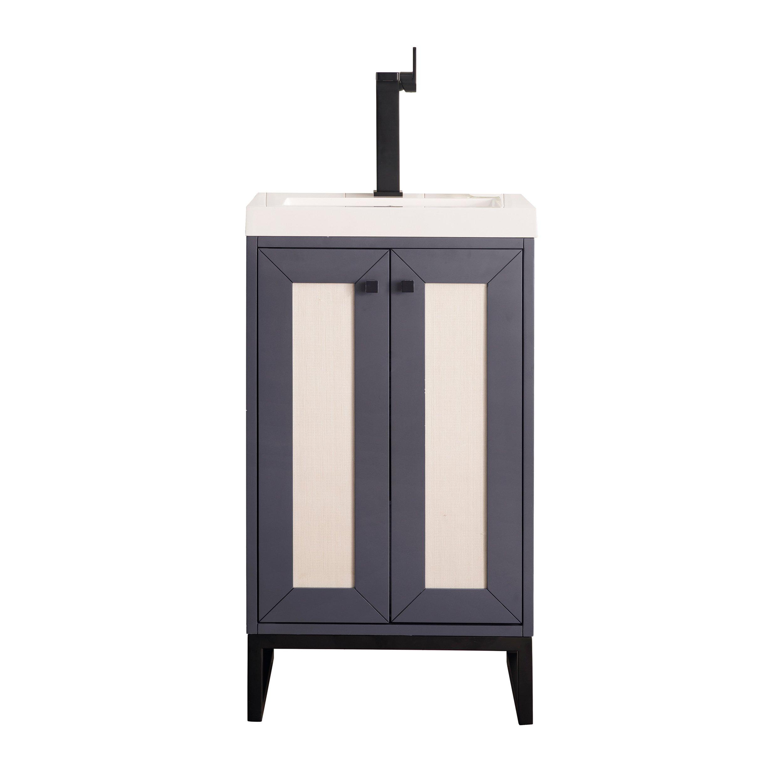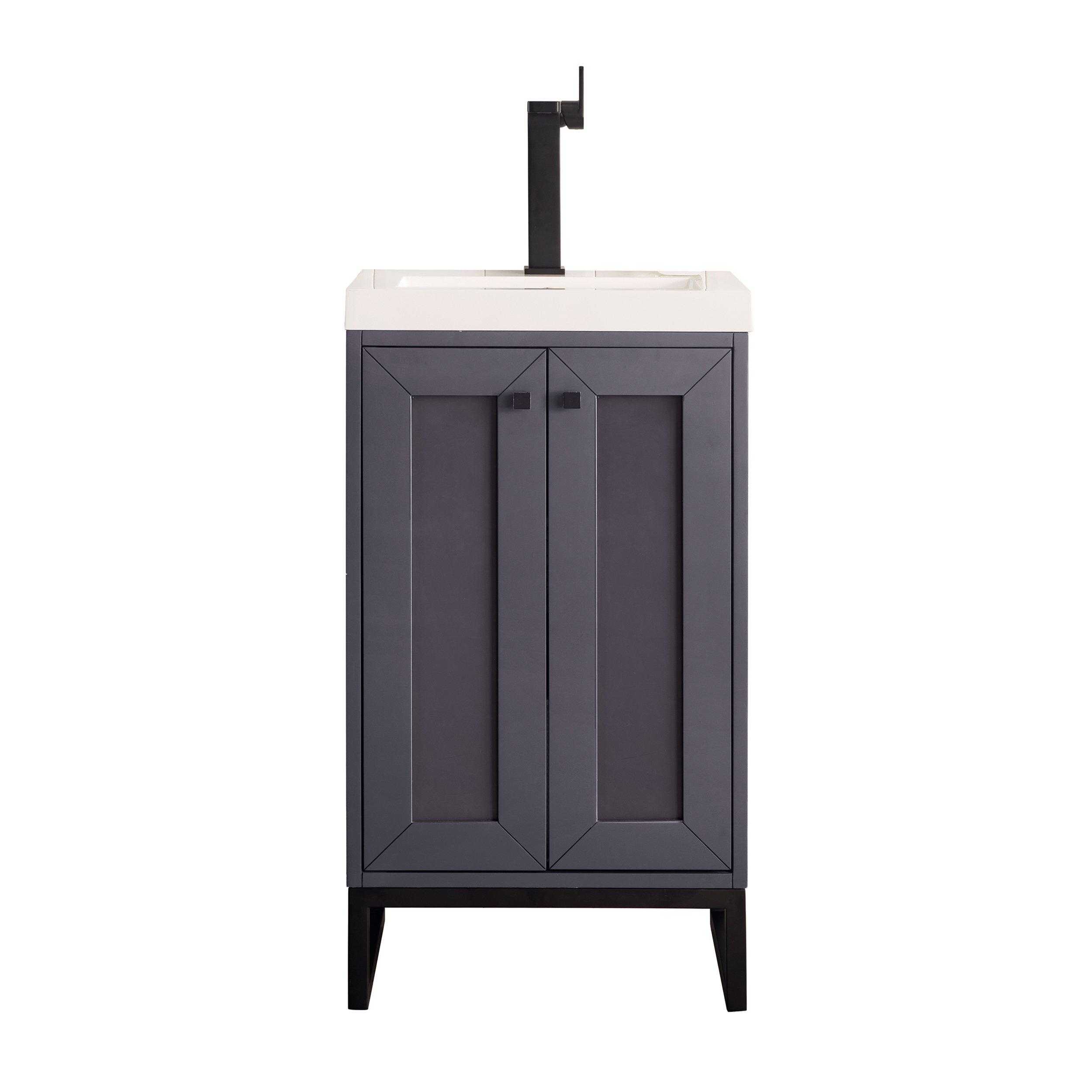 Tailor the look of your bathroom with the Chianti 20 in. Mineral Gray and Matte Black Vanity with Glossy White Top featuring gorgeous solid wood, mdf in gray with 2 doors, 0 drawers, and 1 shelves. This piece is completed with beautiful matte black hardware and a single integral white sink. The Chianti 20 in. Mineral Gray and Matte Black Vanity with Glossy White Top is a stunning addition to any bathroom setting.