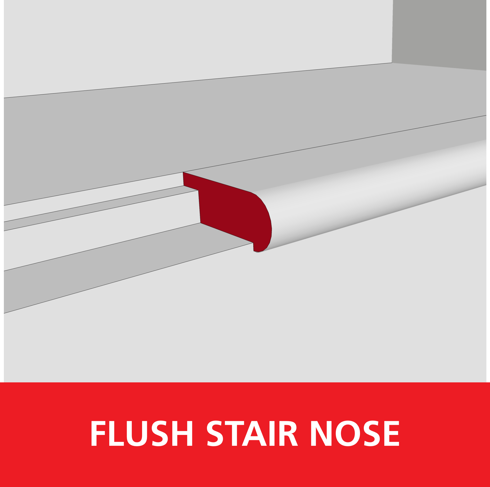 A flush stair nose creates a smooth and flush finish on the edges of your step where the flooring meets the transition. Stair noses can also be used for open balconies or step downs in an open concept space.