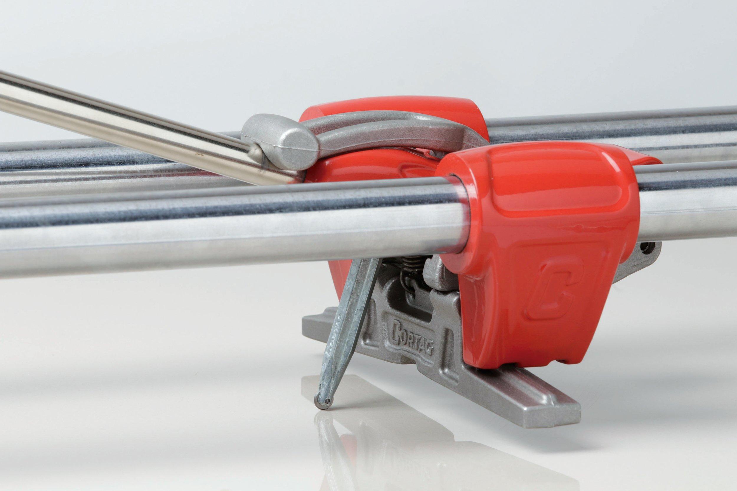 The Cortag Mega 125 49in. Manual Tile Cutter is suitable for cutting large format ceramic and porcelain tiles up to 15mm thick and 125cm/ 49in. length.