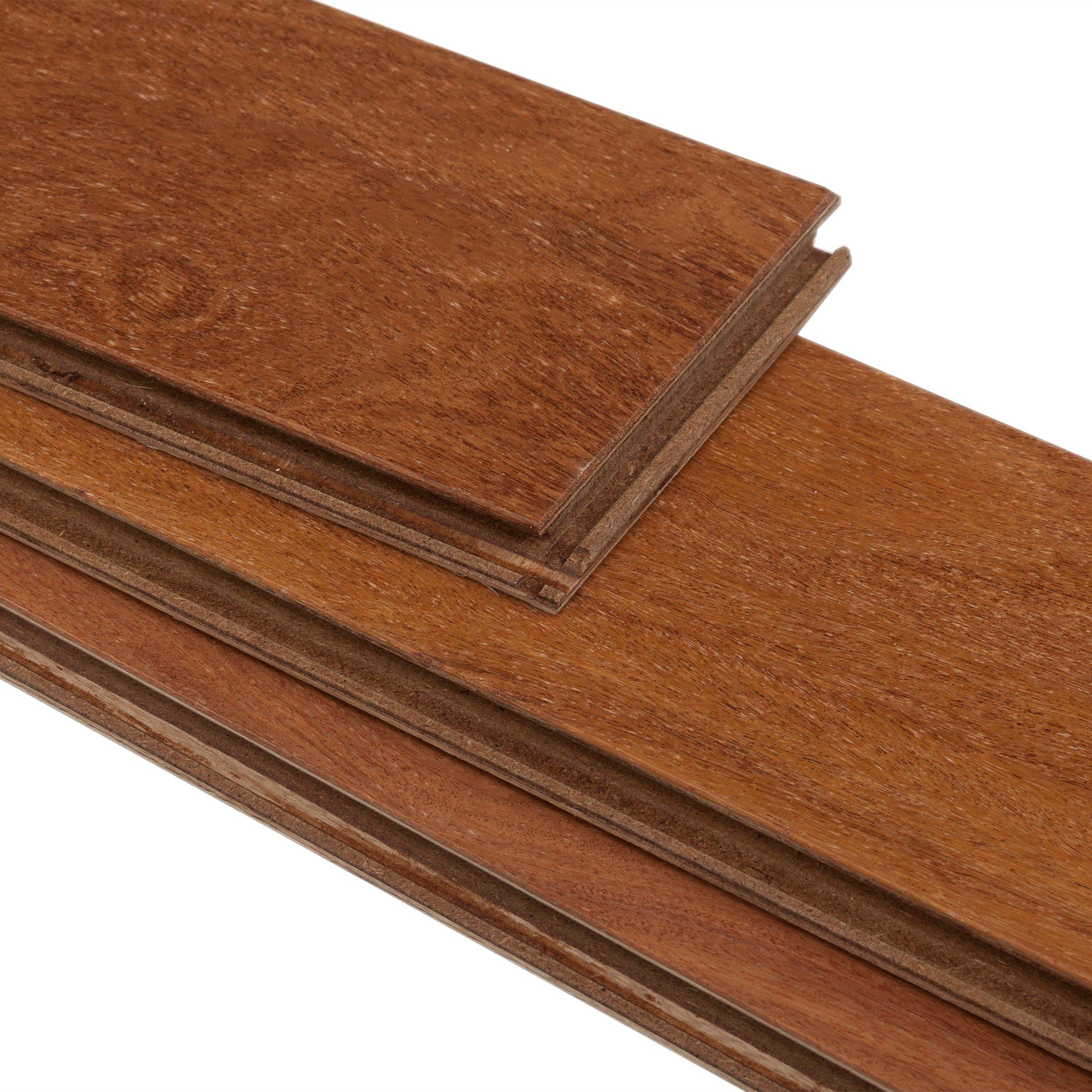 This 1/2 x 4 3/4in. Cumaru Brazilian Teak Smooth Locking Engineered Hardwood comes in a smooth finish with a 25 year residential/ lifetime structural warranty.