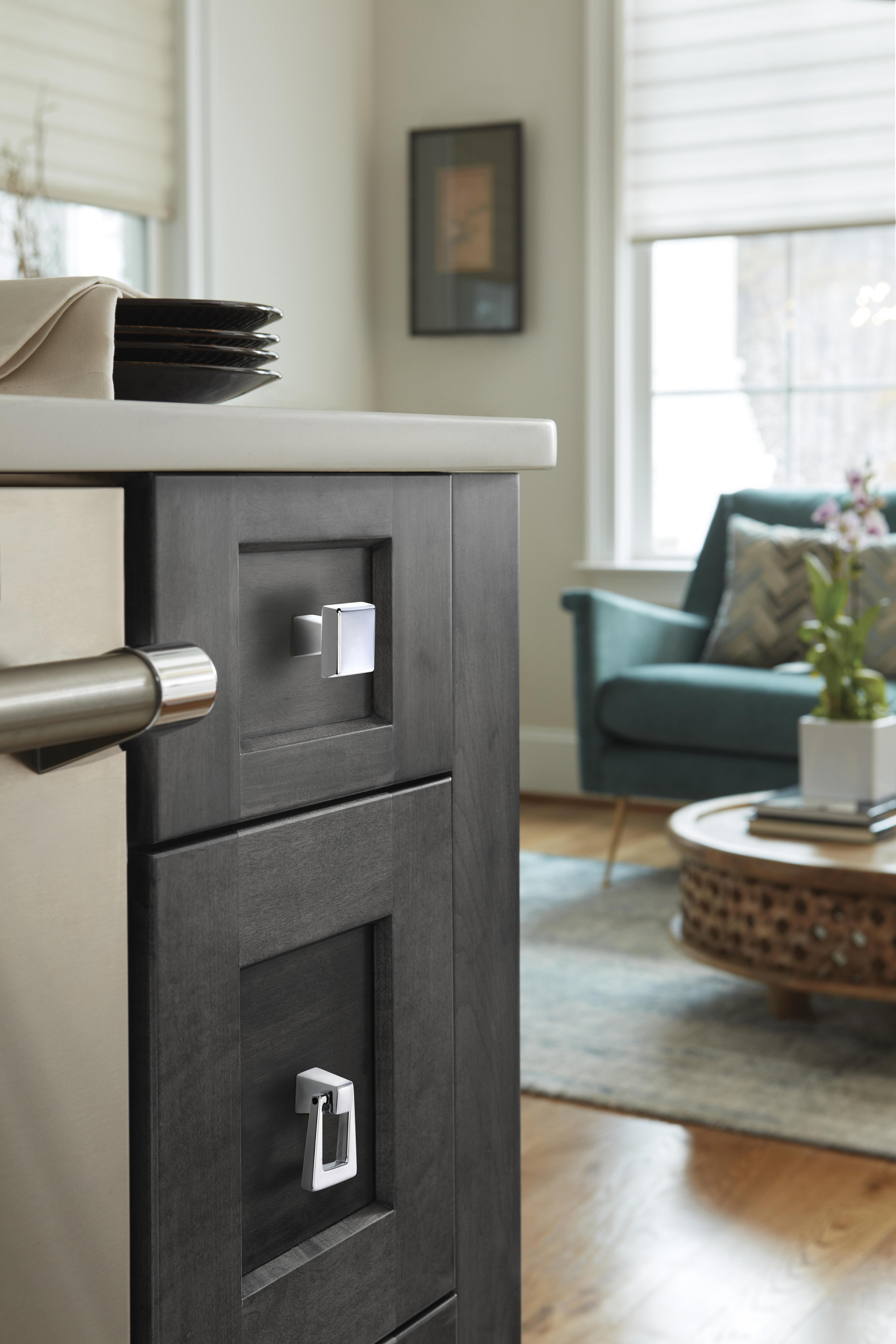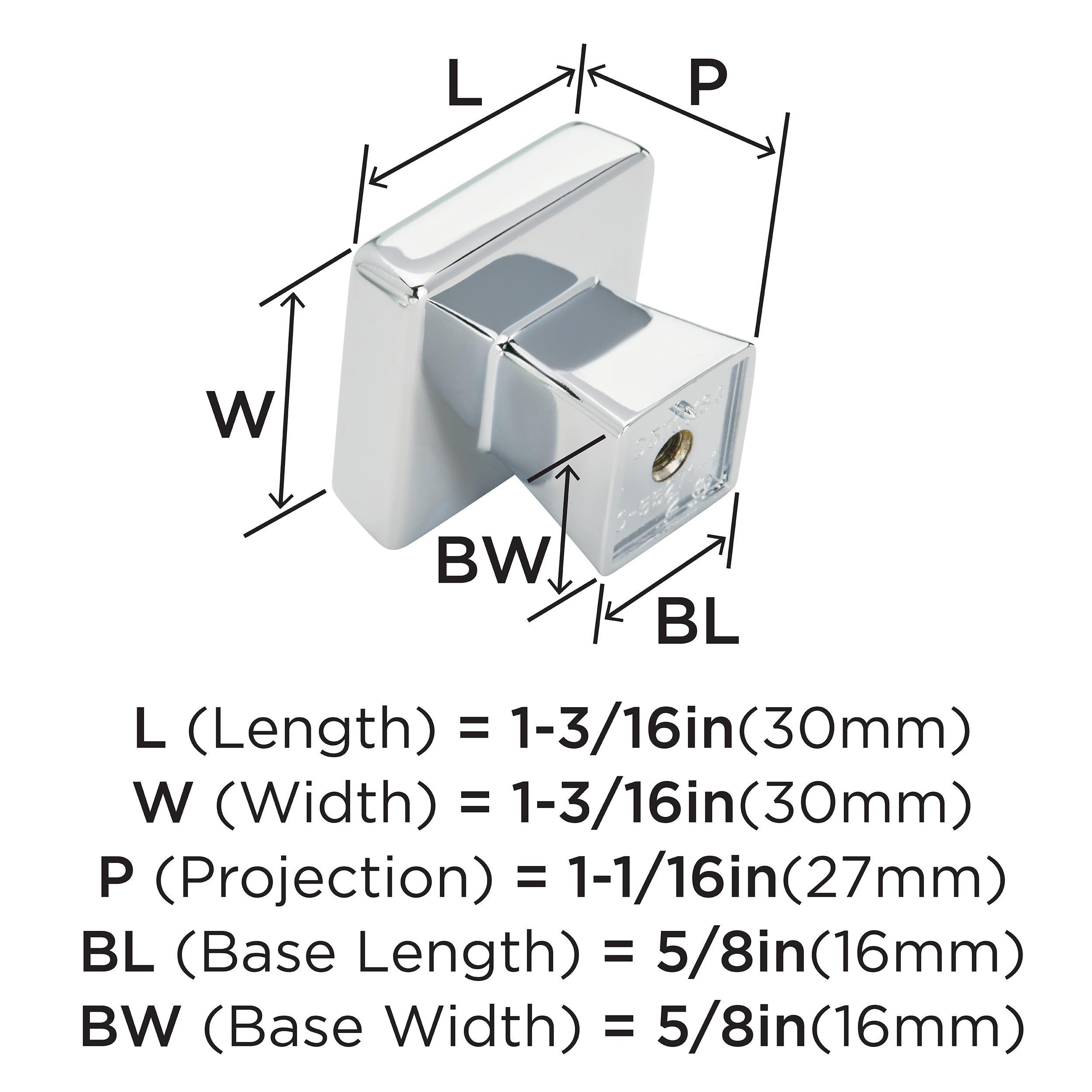 The Amerock Blackrock 1-3/16 in. Polished Chrome Cabinet Knob is finished in polished chrome polished. Inspired by hard, geometric lines, the Blackrock collection's simple shapes make a lasting impression.