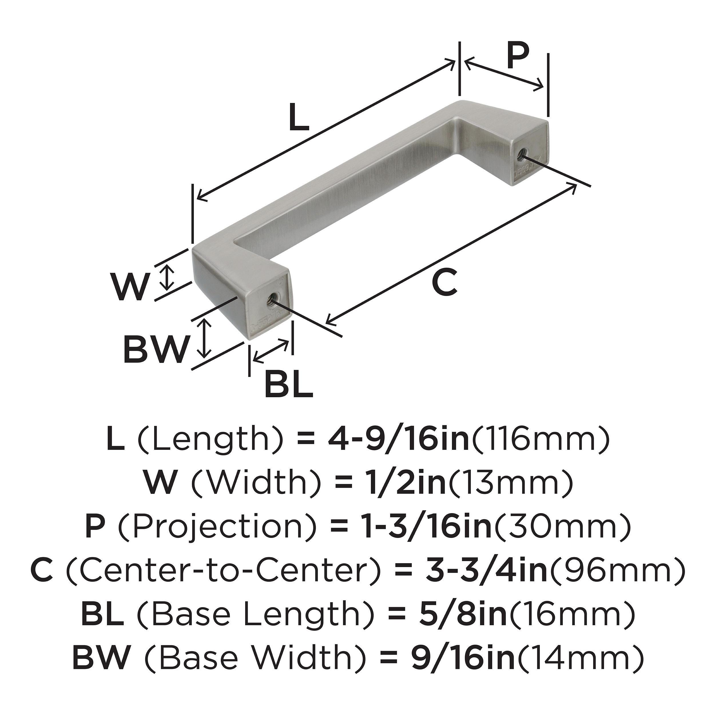 The Amerock Blackrock 3-3/4 in. Center-to-Center Satin Nickel Cabinet Pull is finished in satin nickel satin. Inspired by hard, geometric lines, the Blackrock collection's simple shapes make a lasting impression.