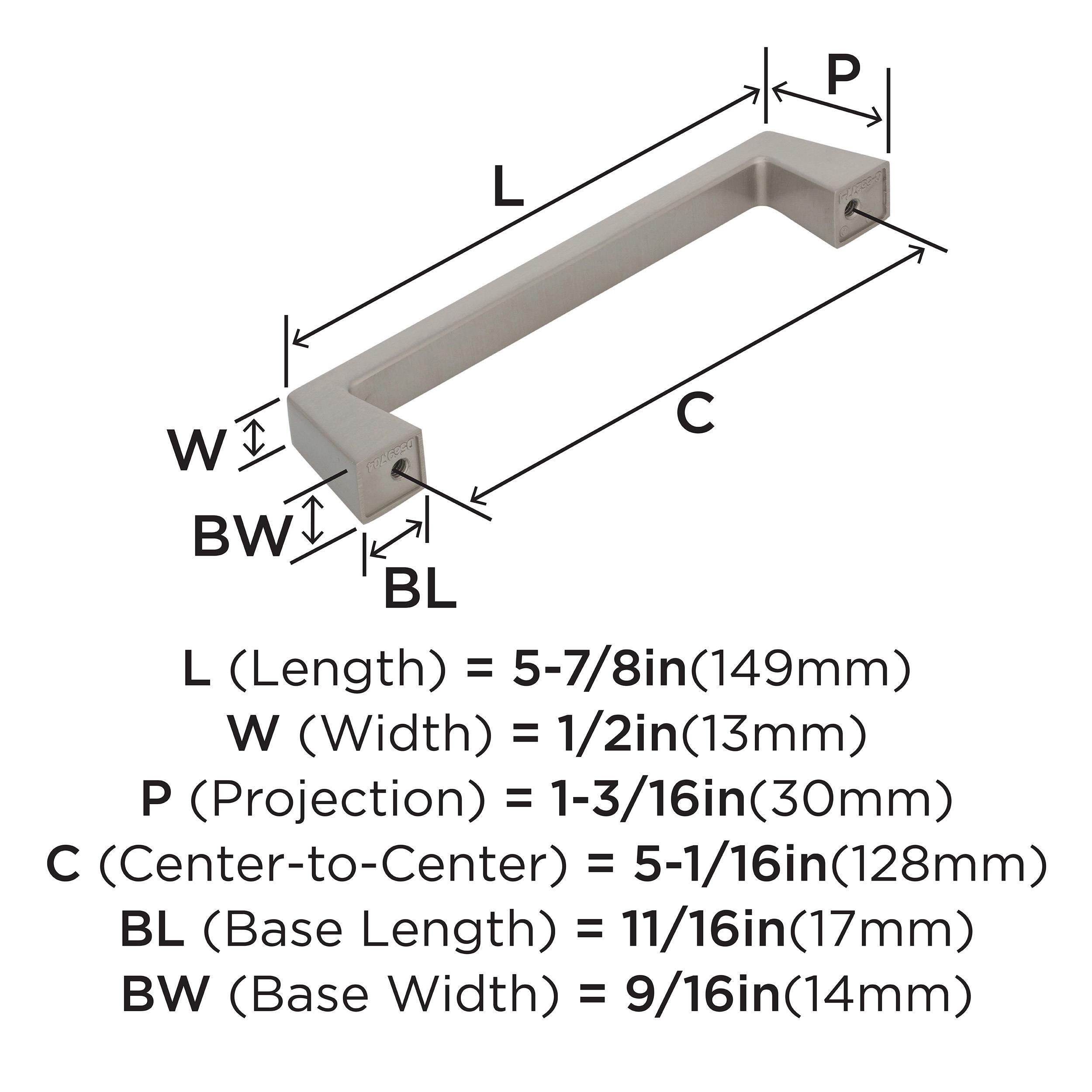 The Amerock Blackrock 5-1/16 in. Center-to-Center Satin Nickel Cabinet Pull is finished in satin nickel satin. Inspired by hard, geometric lines, the Blackrock collection's simple shapes make a lasting impression.