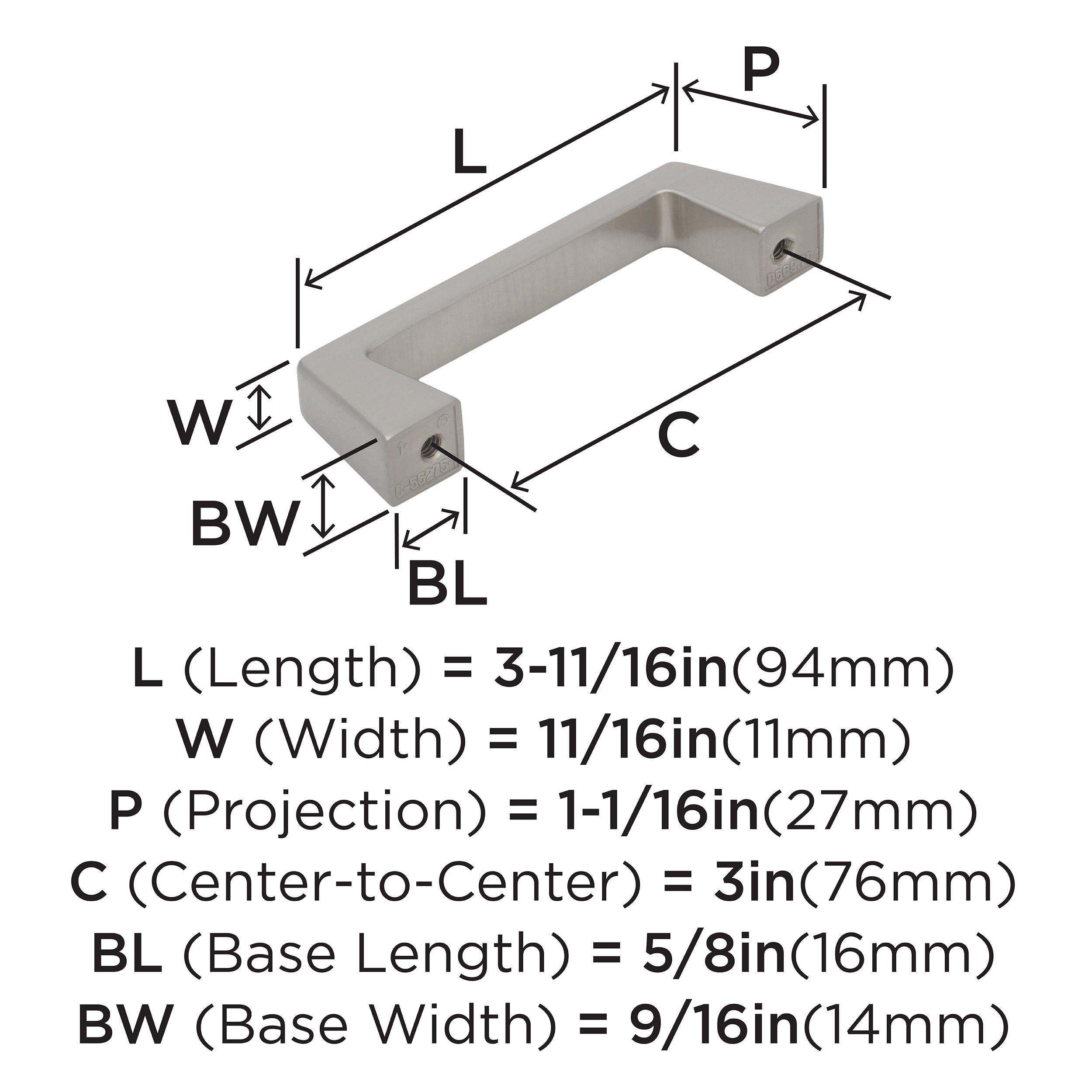 The Amerock Blackrock 3 in. Center-to-Center Satin Nickel Cabinet Pull is finished in satin nickel satin. Inspired by hard, geometric lines, the Blackrock collection's simple shapes make a lasting impression.