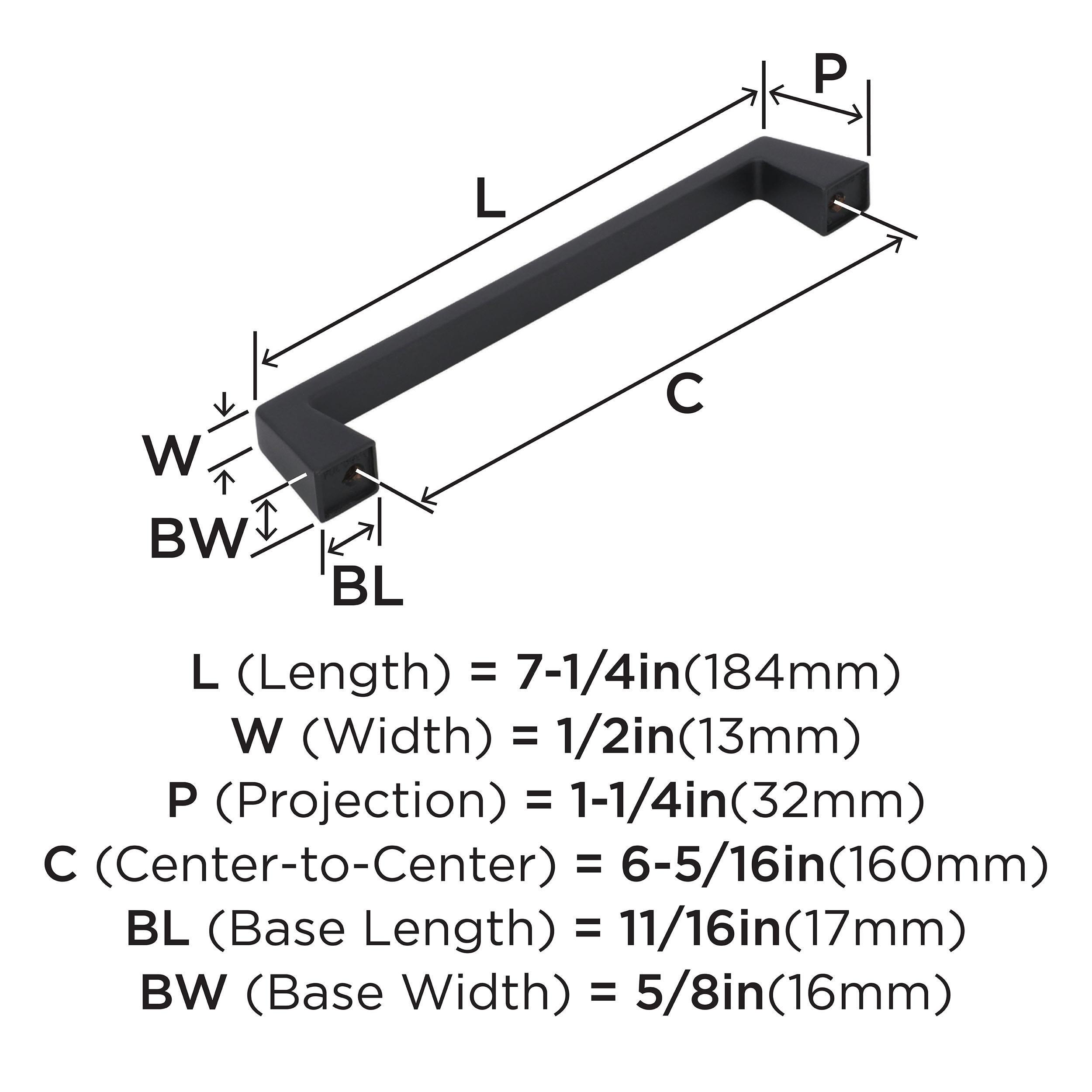 The Amerock Blackrock 6-5/16 in. Center-to-Center Black Bronze Cabinet Pull is finished in black bronze matte. Inspired by hard, geometric lines, the Blackrock collection's simple shapes make a lasting impression.