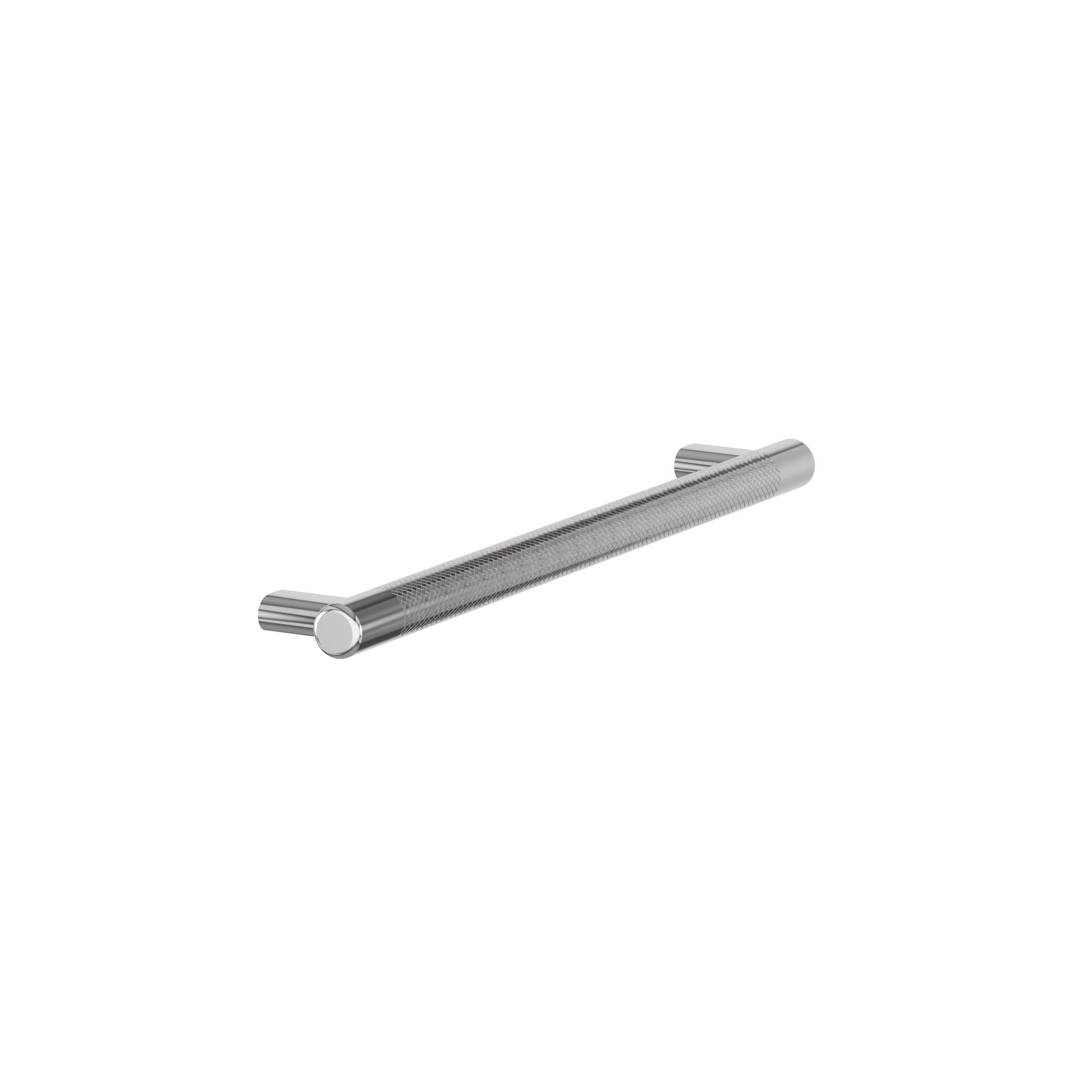 The Amerock Bronx 10-1/16 in. Center-to-Center Polished Chrome Cabinet Pull is finished in polished chrome polished. The subtle knurling of the Bronx collection adds a sophisticated and modern industrial twist to the traditional bar pull, certain to add designer flair to any space.