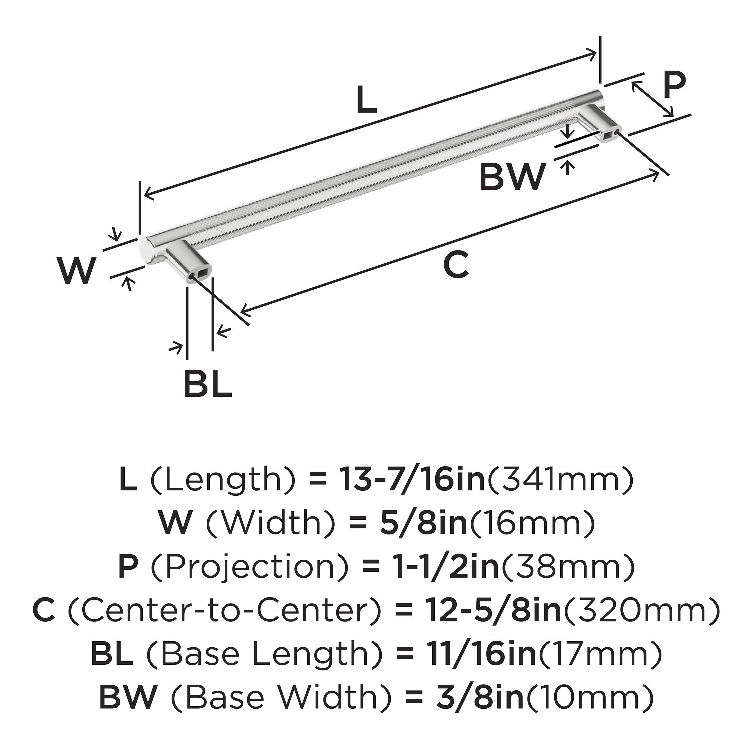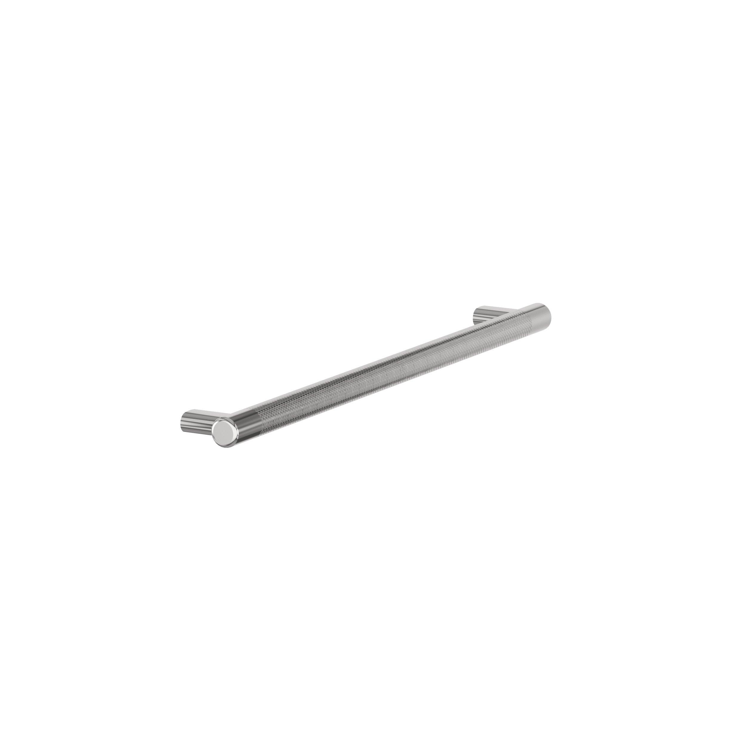 The Amerock Bronx 12-5/8 in. Center-to-Center Polished Chrome Cabinet Pull is finished in polished chrome polished. The subtle knurling of the Bronx collection adds a sophisticated and modern industrial twist to the traditional bar pull, certain to add designer flair to any space.