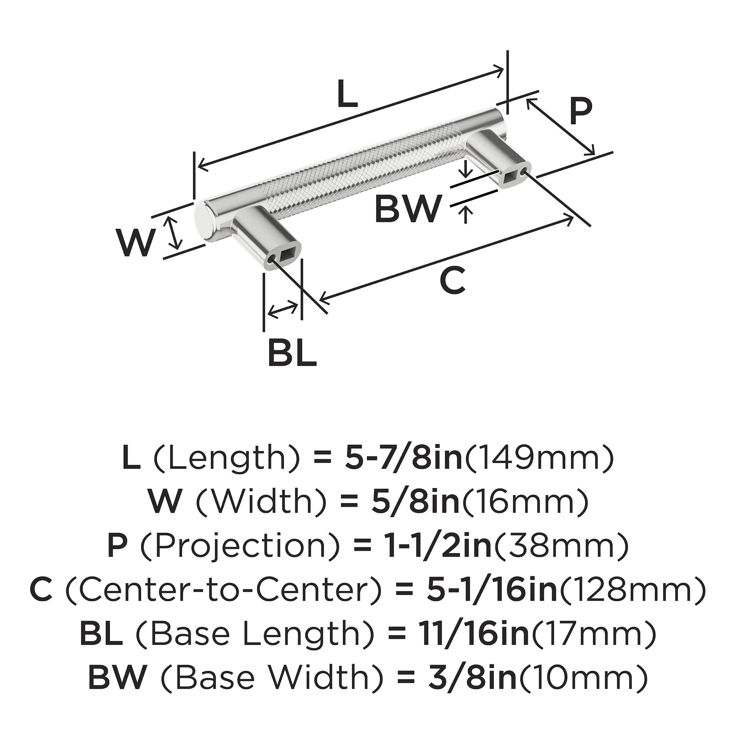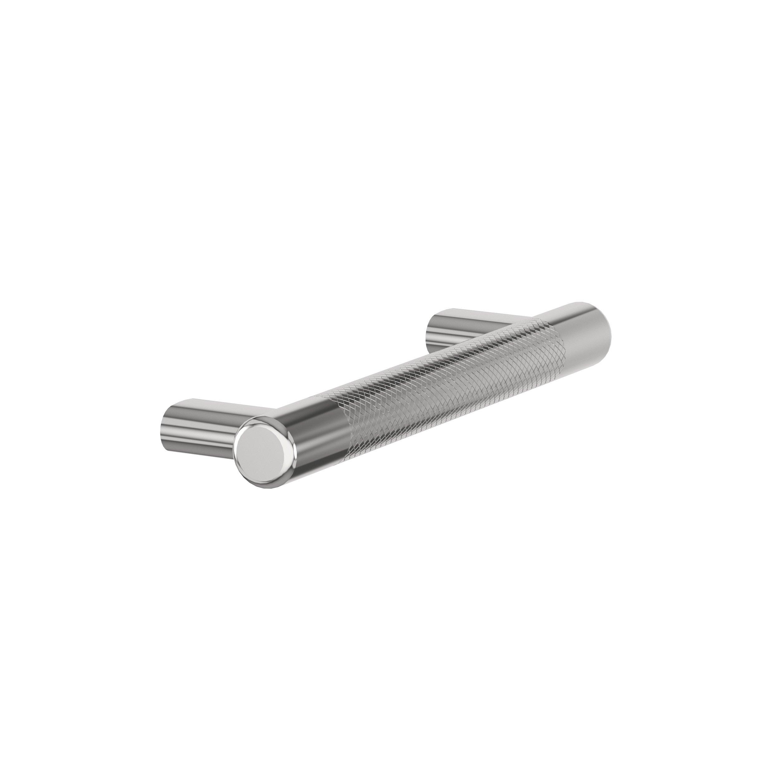 The Amerock Bronx 5-1/16 in. Center-to-Center Polished Chrome Cabinet Pull is finished in polished chrome polished. The subtle knurling of the Bronx collection adds a sophisticated and modern industrial twist to the traditional bar pull, certain to add designer flair to any space.