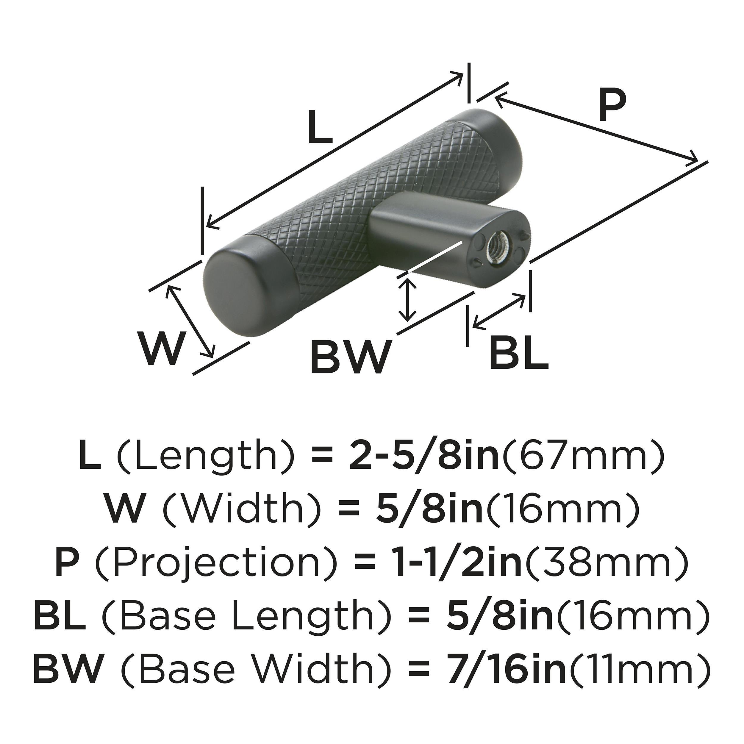 The Amerock Bronx 2-5/8 in. Black Bronze Cabinet Knob is finished in black bronze matte. The subtle knurling of the Bronx collection adds a sophisticated and modern industrial twist to the traditional bar pull, certain to add designer flair to any space.