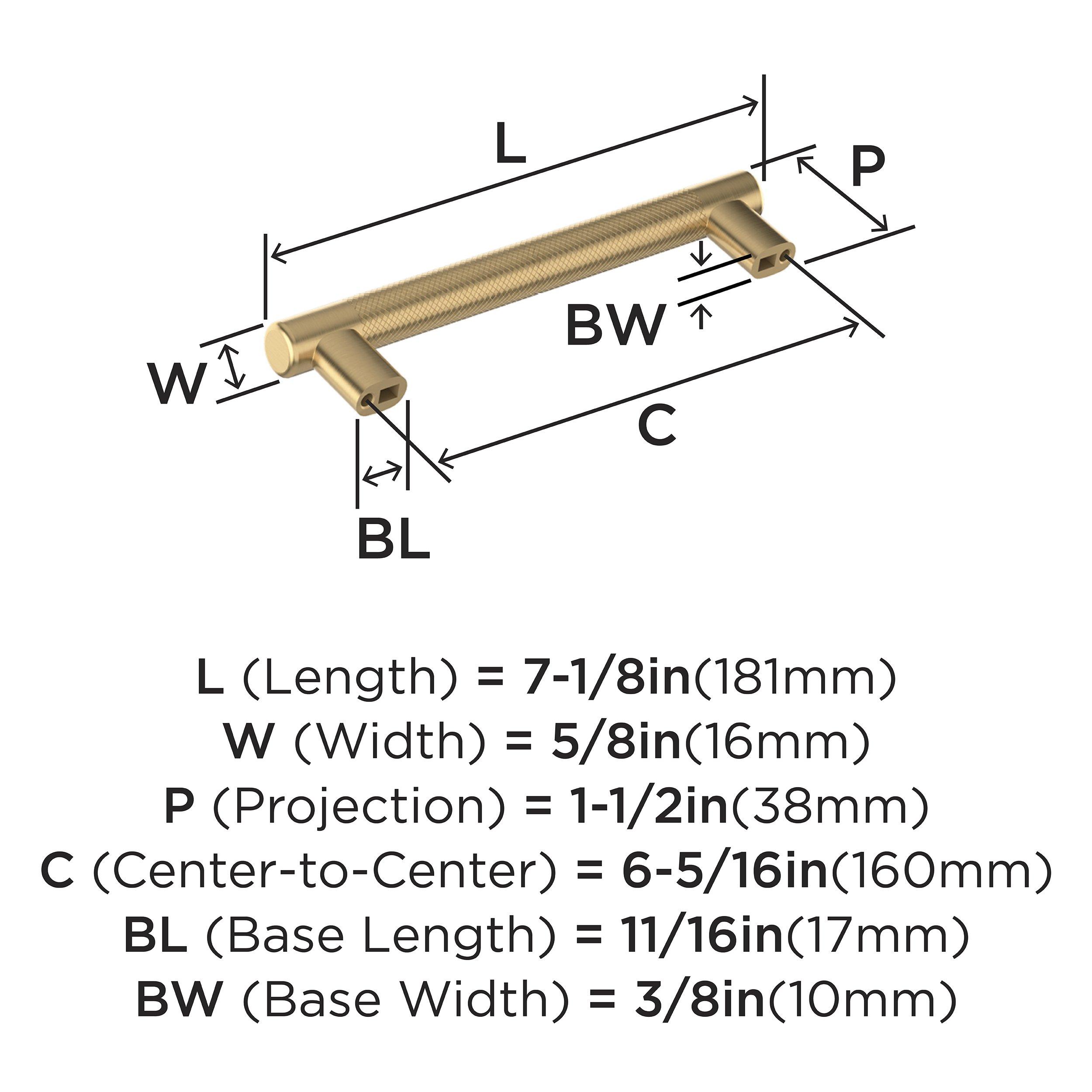 The Amerock Bronx 6-5/16 in. Center-to-Center Champagne Bronze Cabinet Pull is finished in champagne bronze satin. The subtle knurling of the Bronx collection adds a sophisticated and modern industrial twist to the traditional bar pull, certain to add designer flair to any space.
