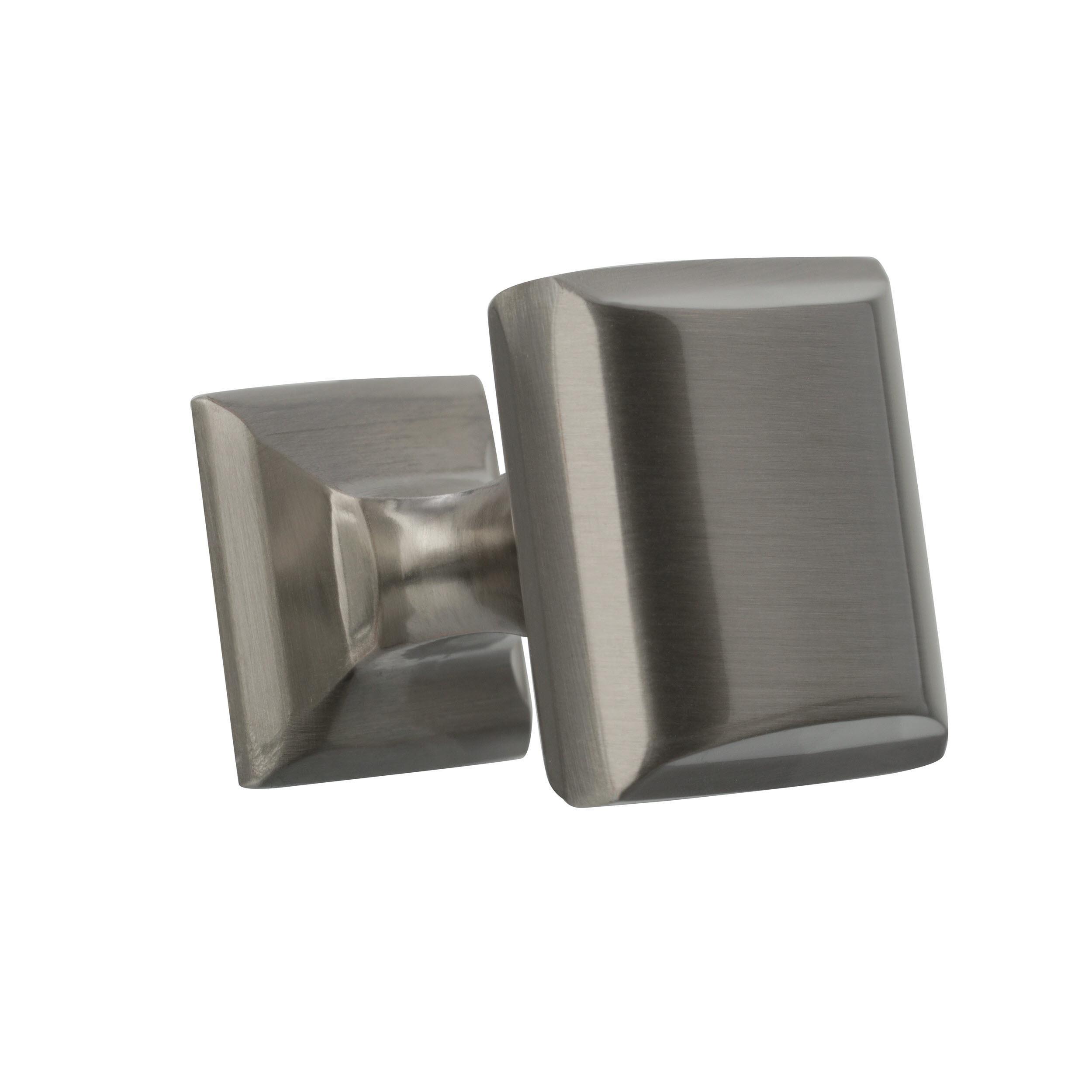 The Amerock Candler 1-1/4 in. Satin Nickel Cabinet Knob is finished in satin nickel satin. With strong lines and soft curves, the Candler collection offers a casual feel that imparts timeless character