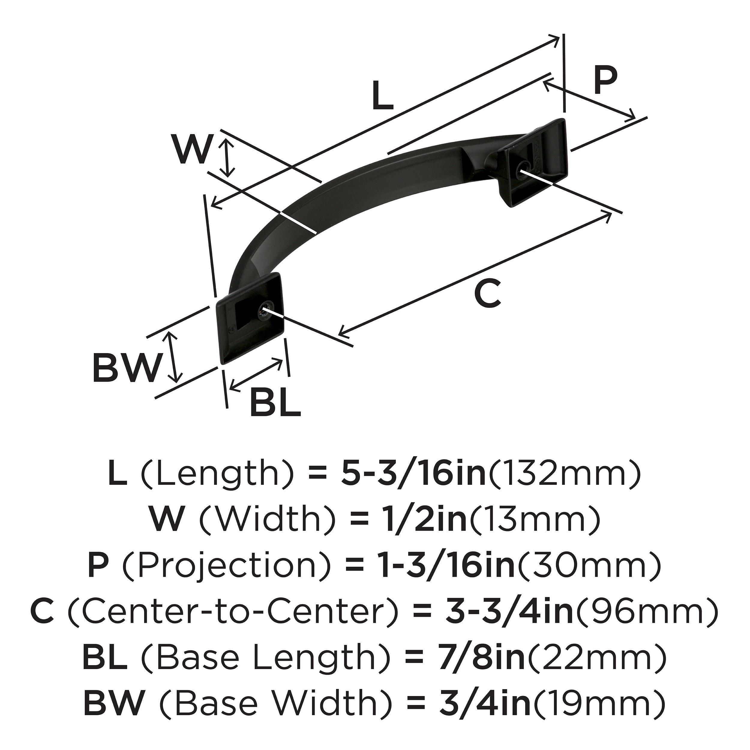 The Amerock Candler 3-3/4 in. Center-to-Center Black Bronze Cabinet Pull is finished in black bronze matte. With strong lines and soft curves, the Candler collection offers a casual feel that imparts timeless character