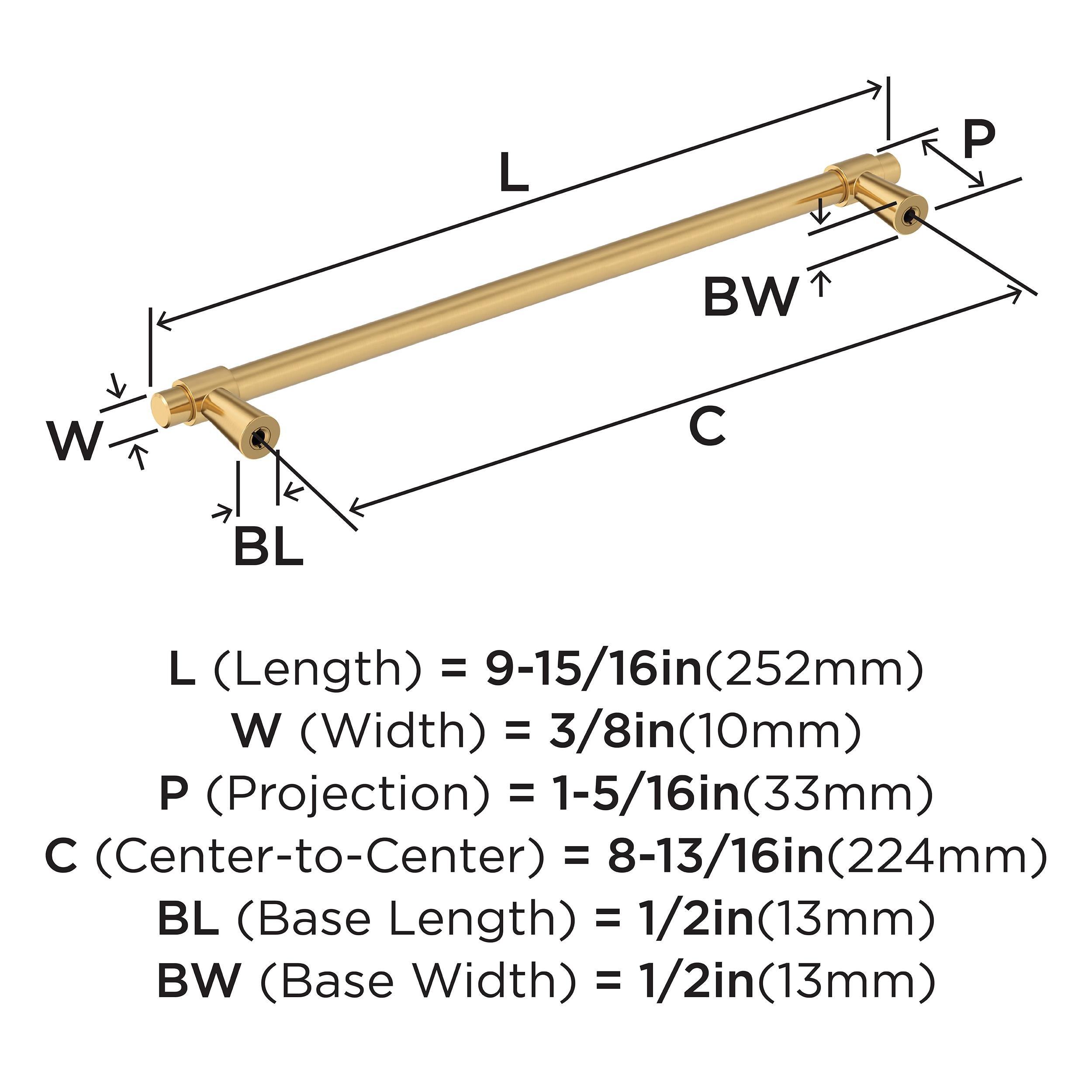 The Amerock Destine 8-13/16 in. Center-to-Center Champagne Bronze Cabinet Pull is finished in champagne bronze satin. With its minimalistic forms, the Destine collection imparts mid-century modern flair to any décor with its streamlined, assembled design.