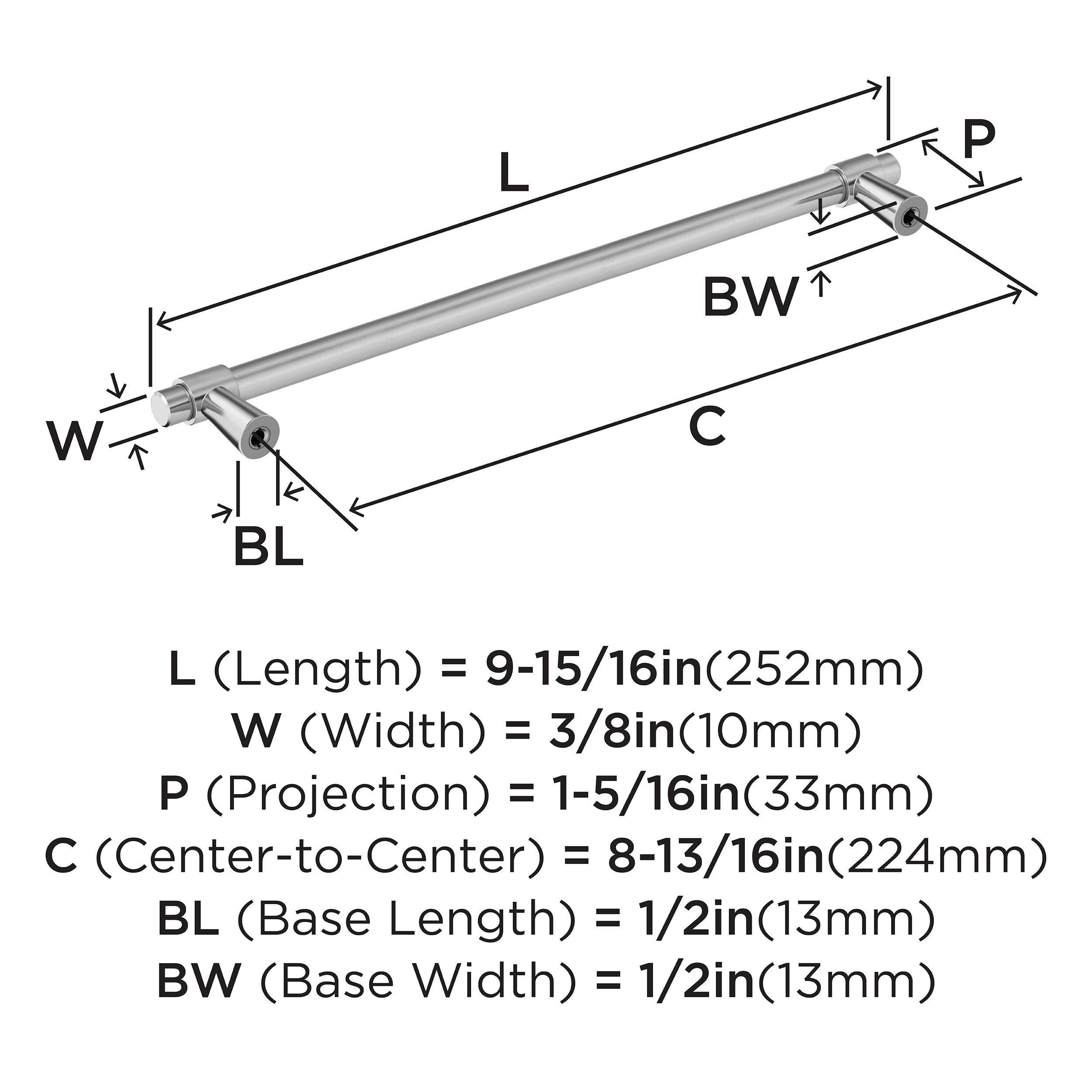 The Amerock Destine 8-13/16 in. Center-to-Center Polished Chrome Cabinet Pull is finished in polished chrome polished. With its minimalistic forms, the Destine collection imparts mid-century modern flair to any décor with its streamlined, assembled design.