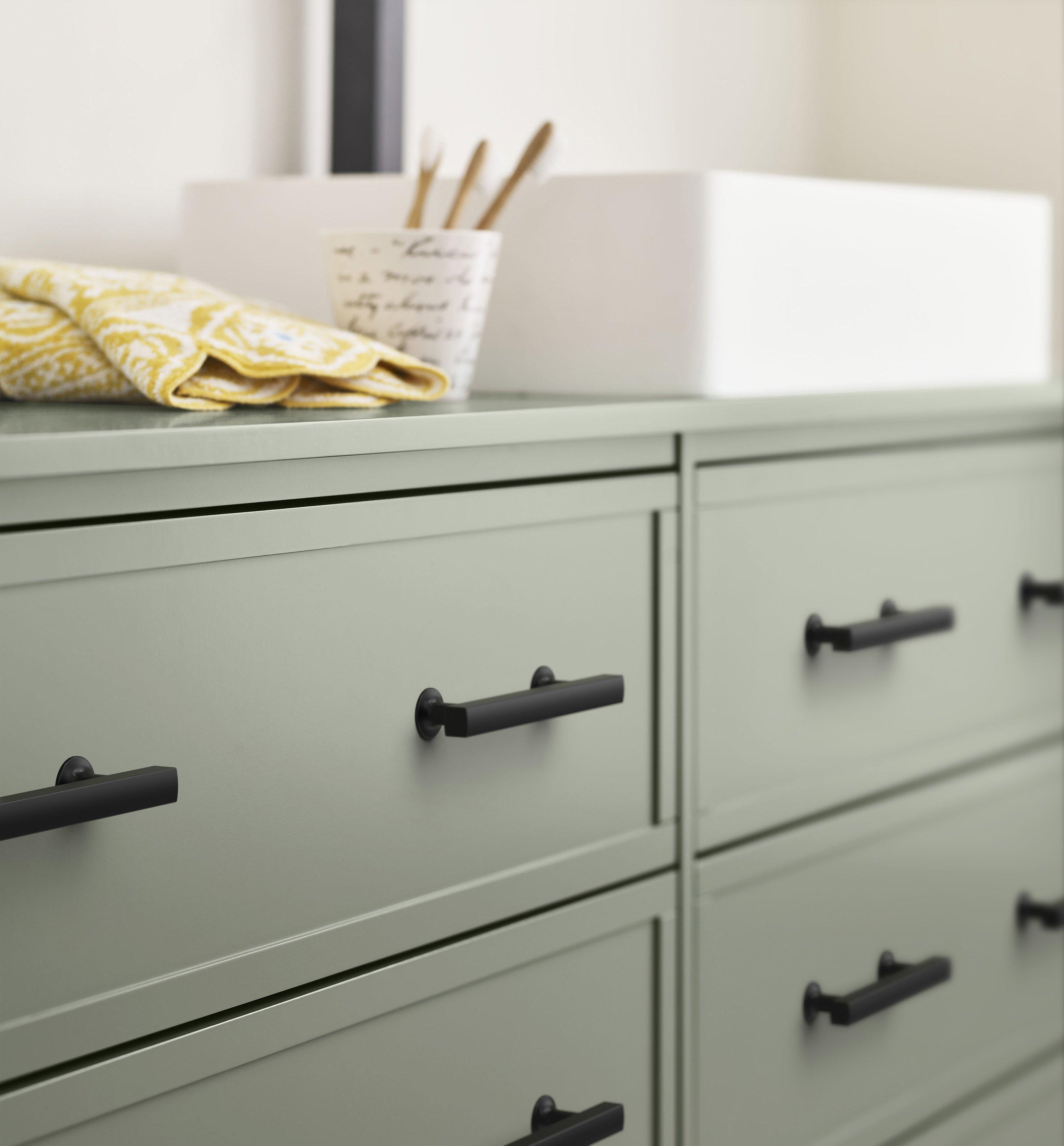 Lifetime LimitedThe Amerock Everett 3-3/4 in. Center-to-Center Matte Black Cabinet Pull is finished in matte black matte. Focusing on softened curves, the Everett collection epitomizes approachable, new traditional chic with a refined touch.