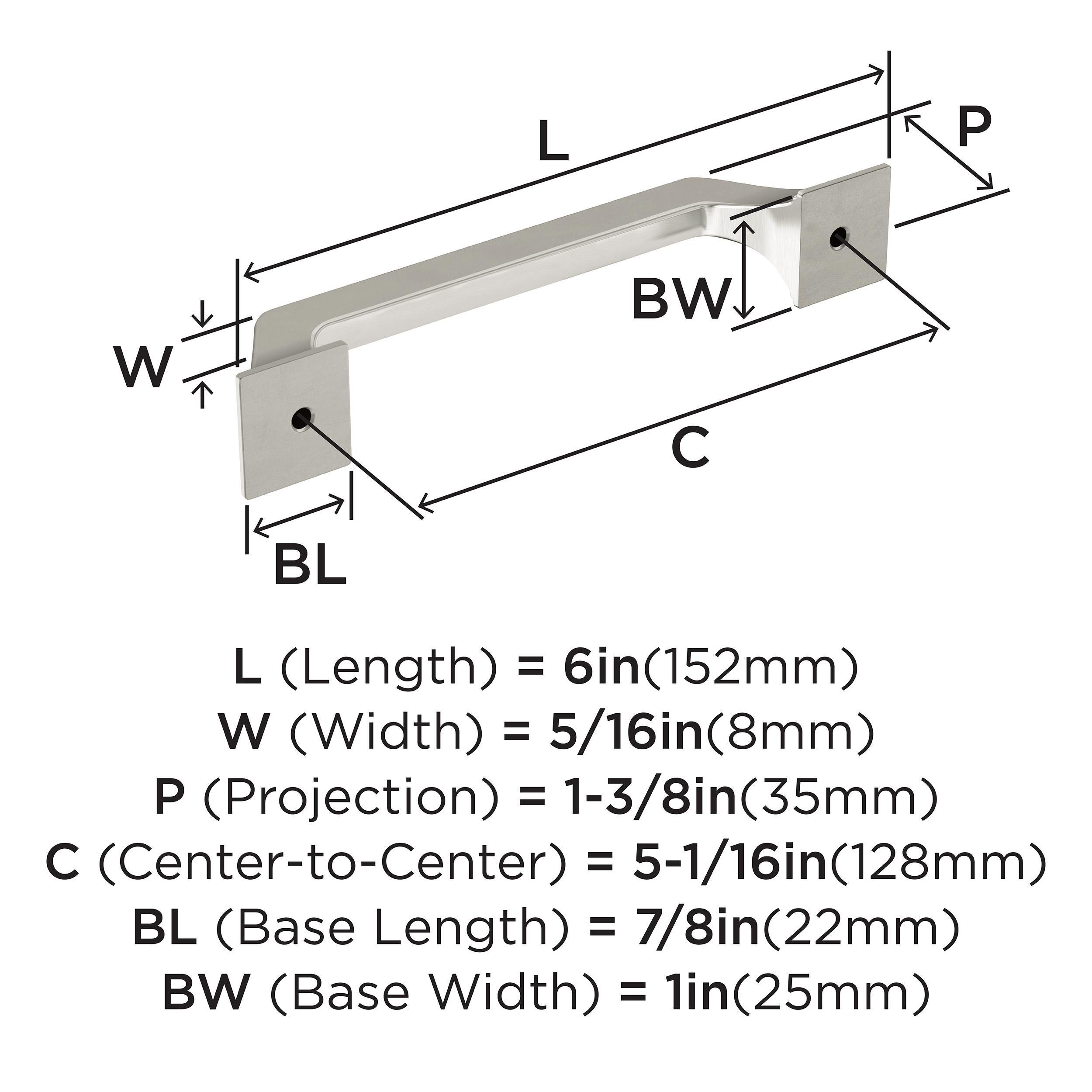 The Amerock Exceed 5-1/16 in. Center-to-Center Satin Nickel Cabinet Pull is finished in satin nickel satin. The Exceed collection blends inviting curves with distinctive pedestal edges, creating a composition that is as unexpected as it is timeless.