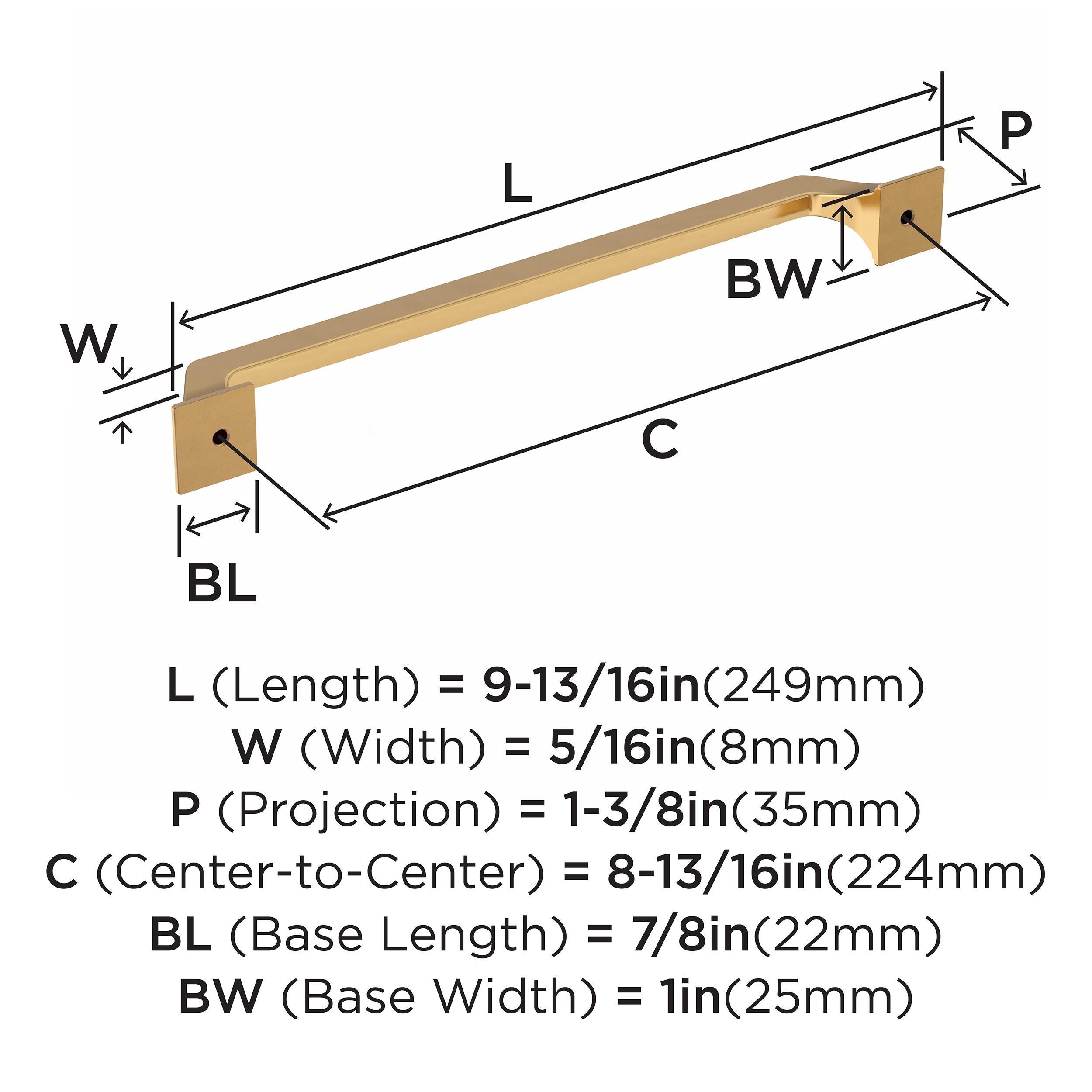 Lifetime LimitedThe Amerock Exceed 8-13/16 in. Center-to-Center Champagne Bronze Cabinet Pull is finished in champagne bronze satin. The Exceed collection blends inviting curves with distinctive pedestal edges, creating a composition that is as unexpected as it is timeless.