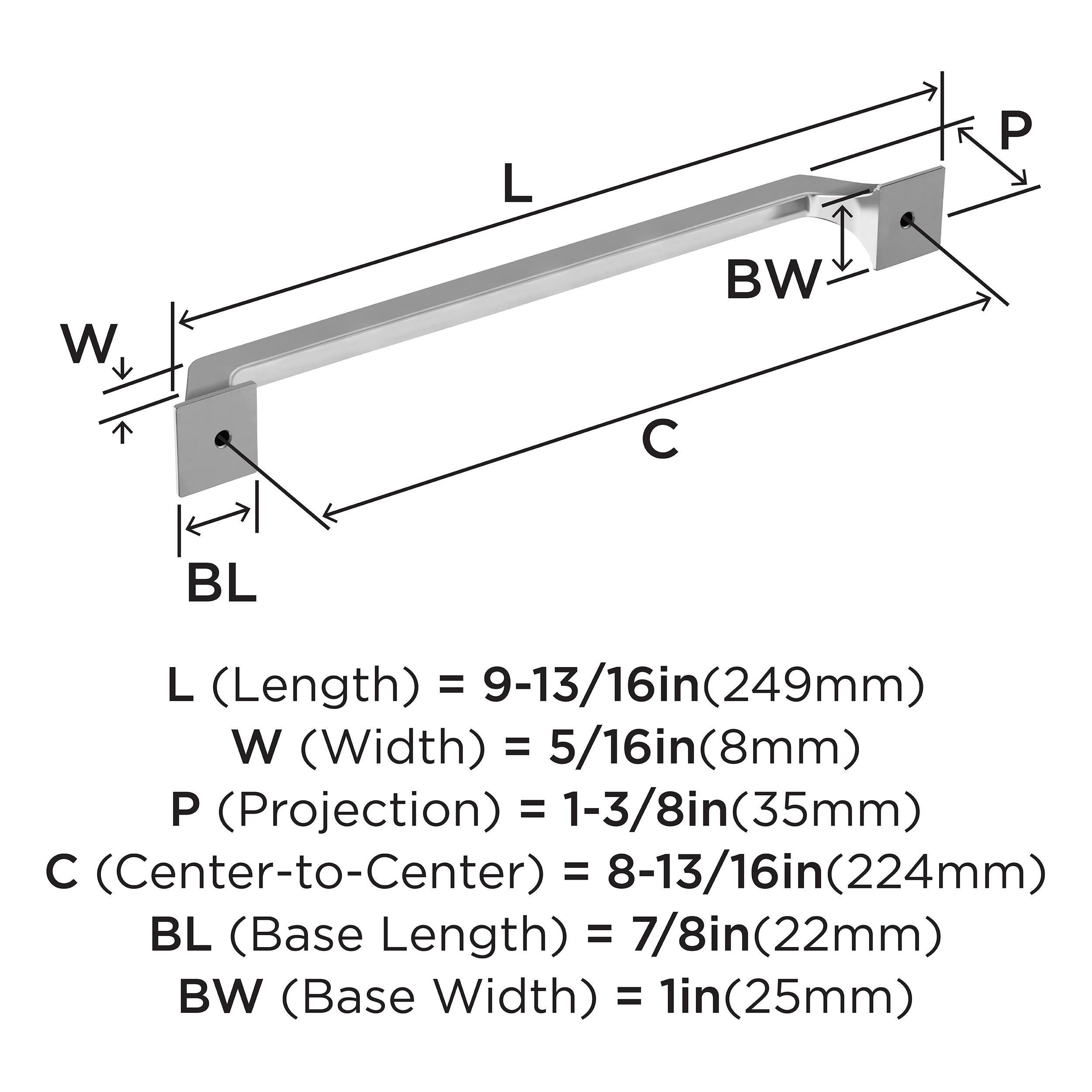 The Amerock Exceed 8-13/16 in. Center-to-Center Polished Chrome Cabinet Pull is finished in polished chrome polished. The Exceed collection blends inviting curves with distinctive pedestal edges, creating a composition that is as unexpected as it is timeless.