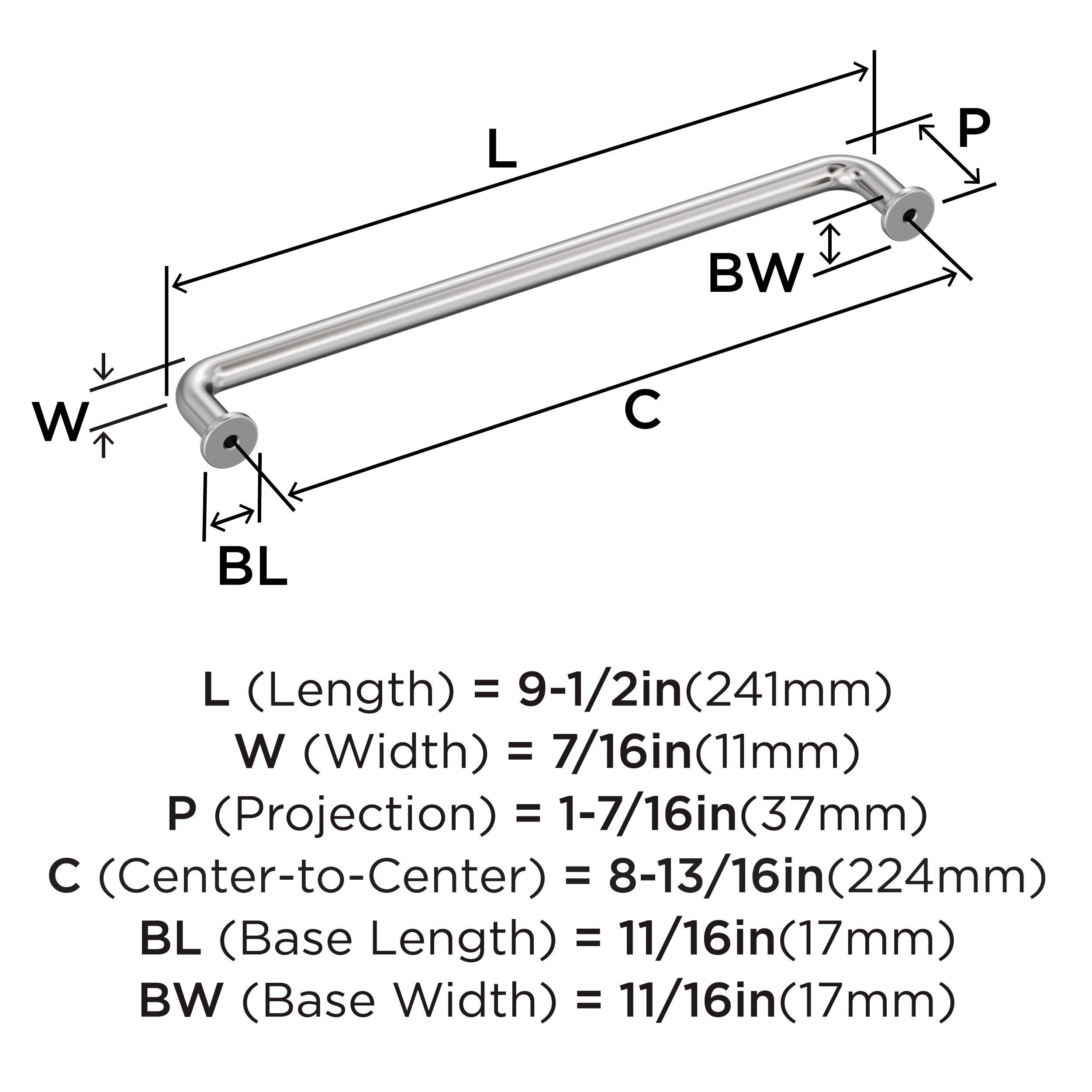 The Amerock Factor 8-13/16 in. Center-to-Center Polished Chrome Cabinet Pull is finished in polished chrome polished. Elevating the basic wire pull, the Factor collection features gentle curves and pedestal feet that create a casual, approachable silhouette.