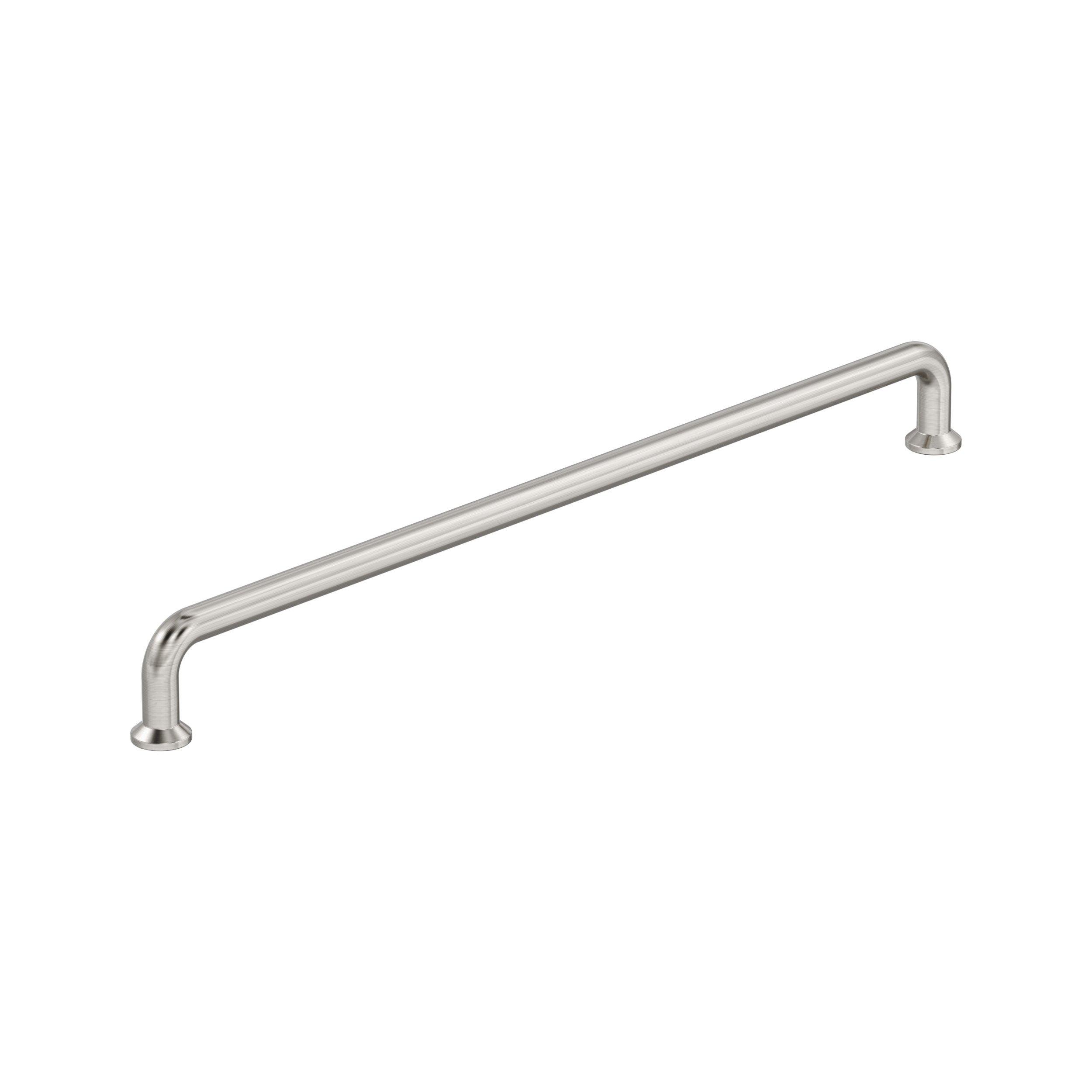 The Amerock Factor 12-5/8 in. Center-to-Center Satin Nickel Cabinet Pull is finished in satin nickel satin. Elevating the basic wire pull, the Factor collection features gentle curves and pedestal feet that create a casual, approachable silhouette.