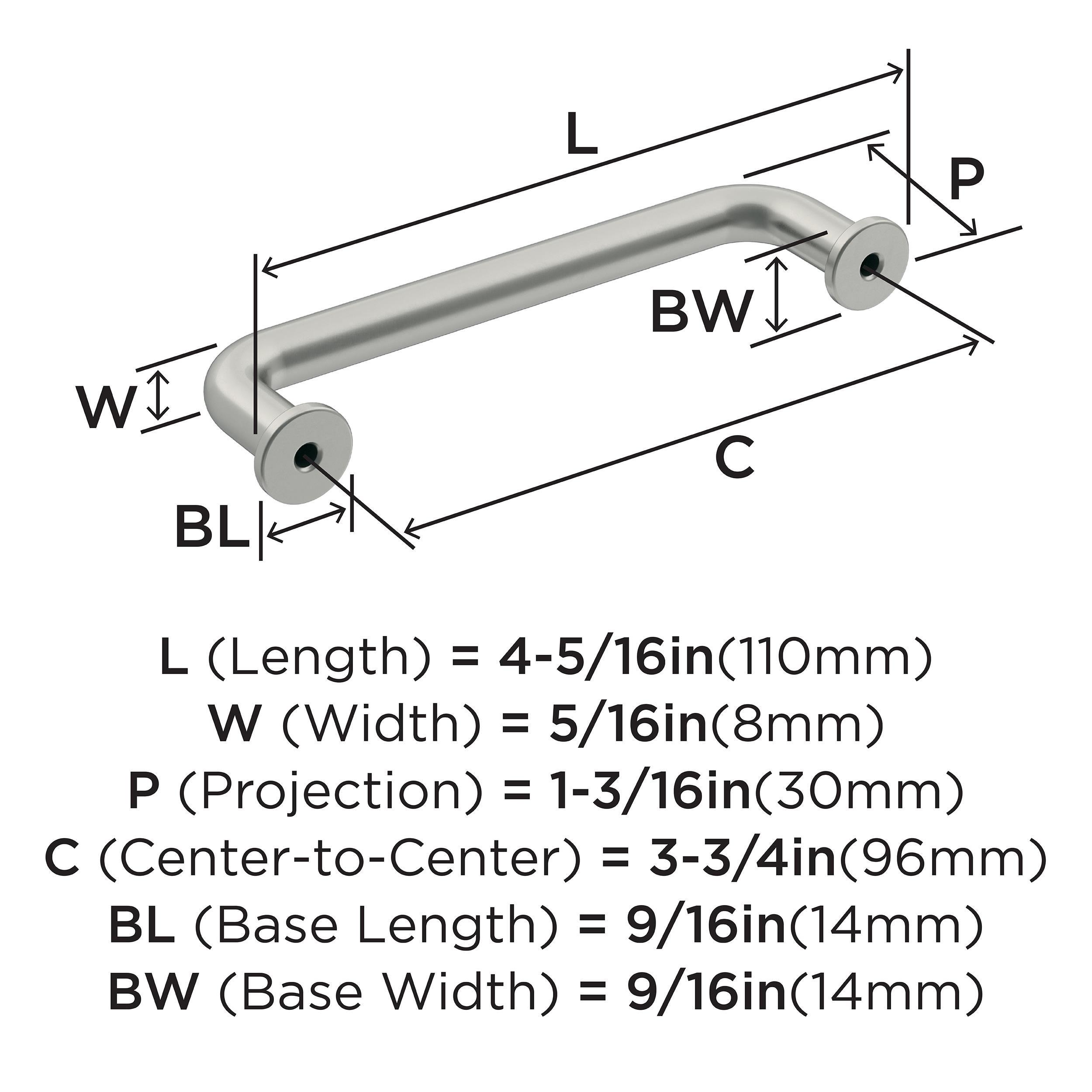 The Amerock Factor 3-3/4 in. Center-to-Center Satin Nickel Cabinet Pull is finished in satin nickel satin. Elevating the basic wire pull, the Factor collection features gentle curves and pedestal feet that create a casual, approachable silhouette.