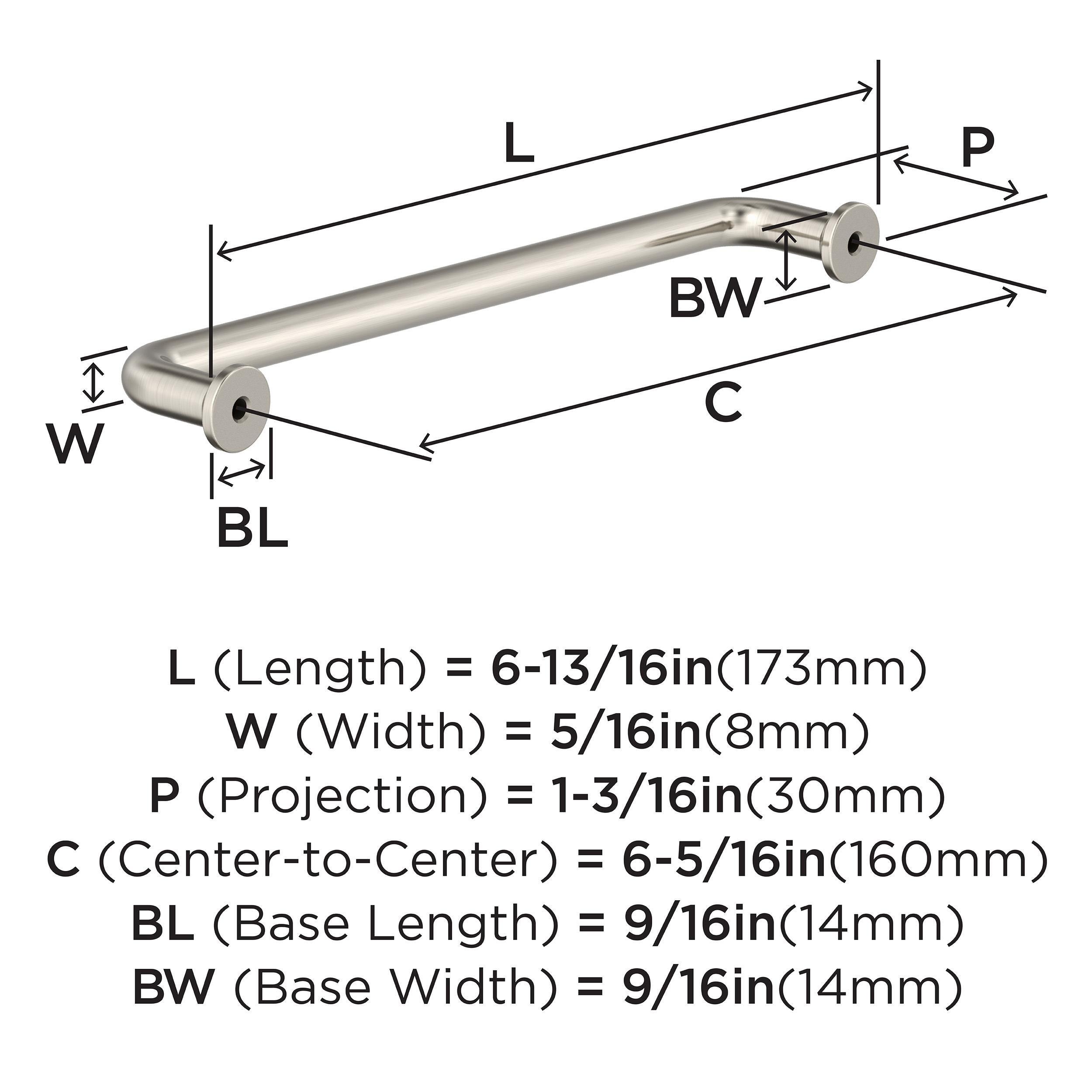 The Amerock Factor 6-5/16 in. Center-to-Center Satin Nickel Cabinet Pull is finished in satin nickel satin. Elevating the basic wire pull, the Factor collection features gentle curves and pedestal feet that create a casual, approachable silhouette.