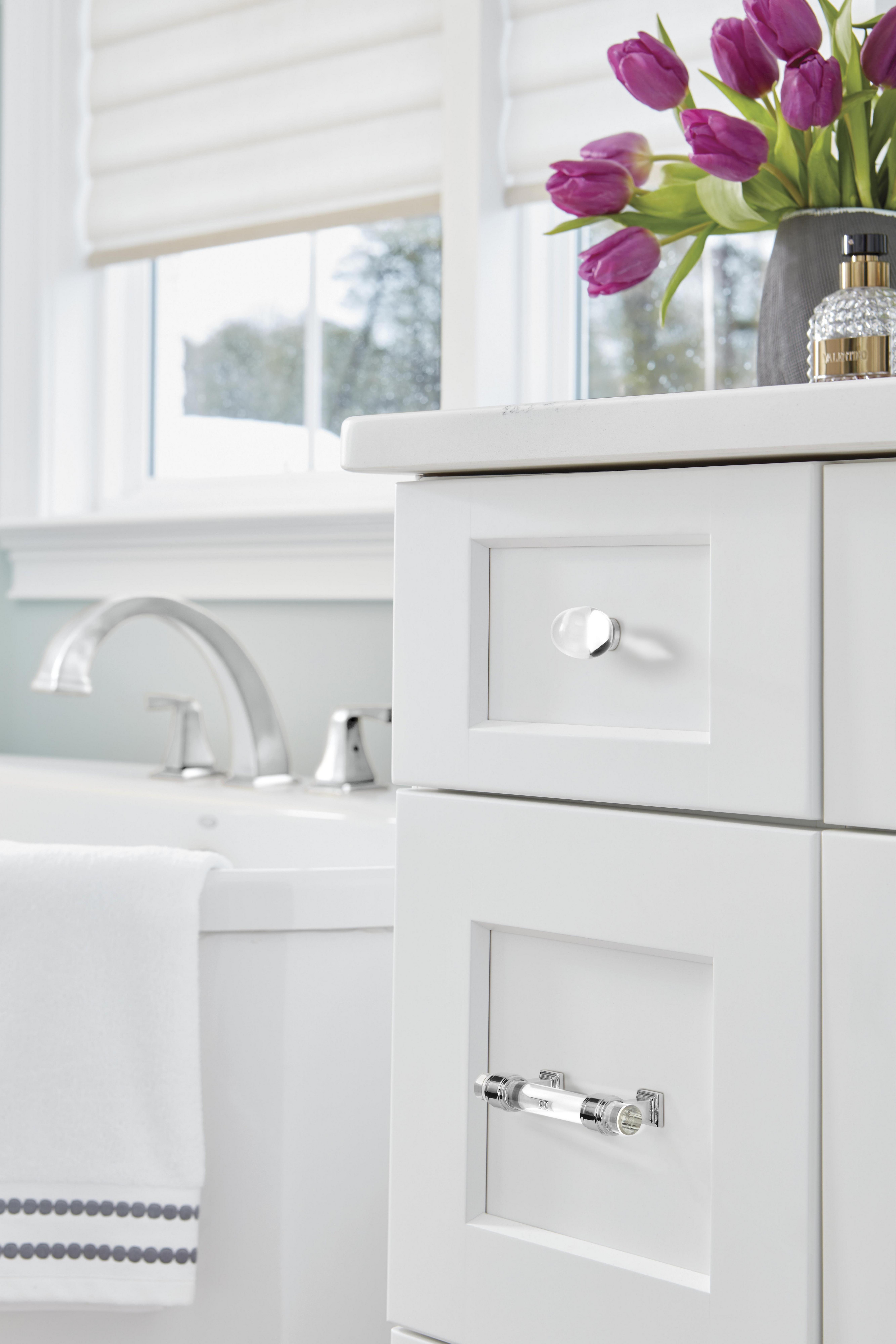 - Complete the look with matching cabinet knobs, drawer pulls and bath hardware from the Amerock Glacio collection