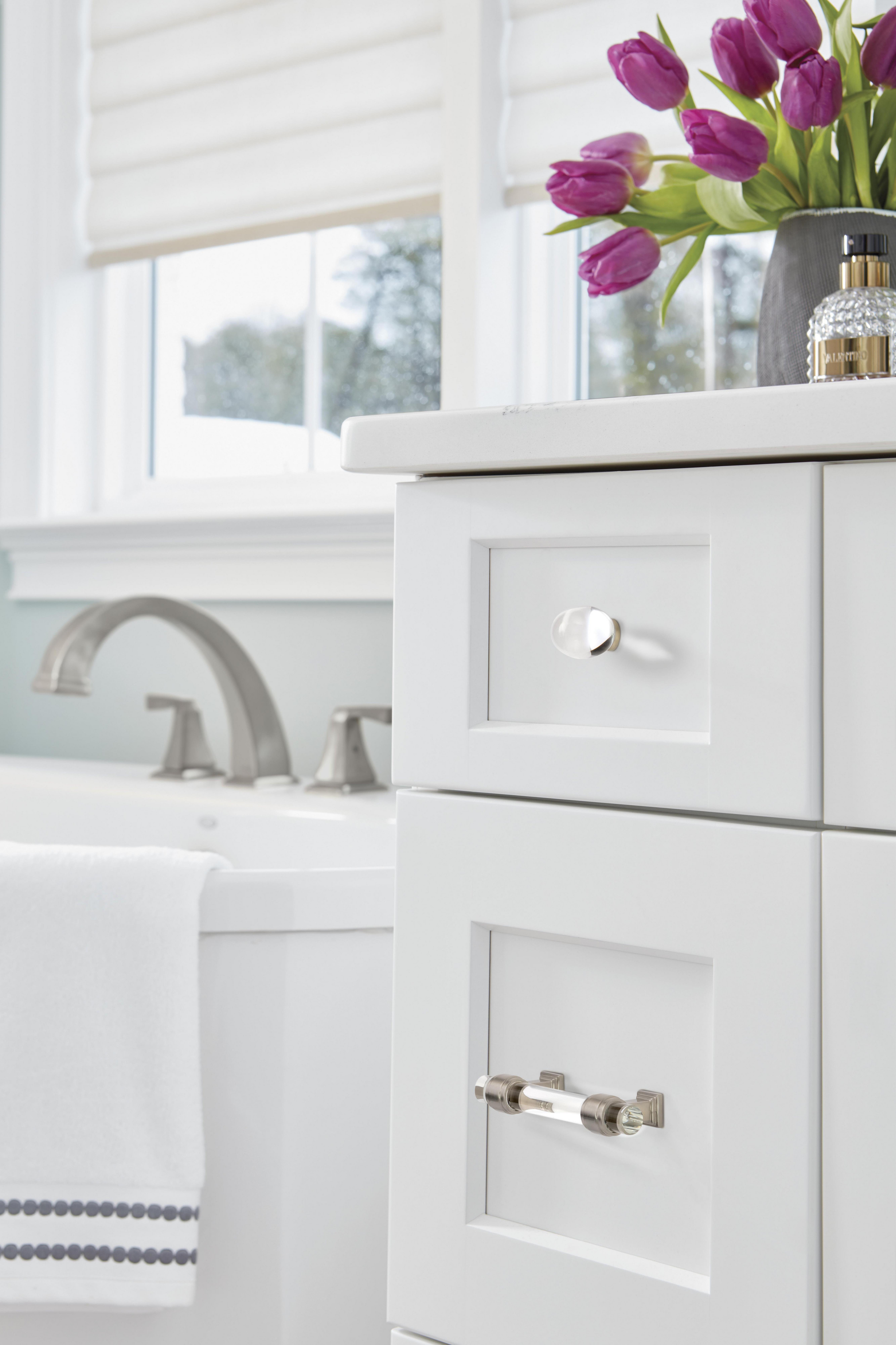 - Complete the look with matching cabinet knobs, drawer pulls and bath hardware from the Amerock Glacio collection