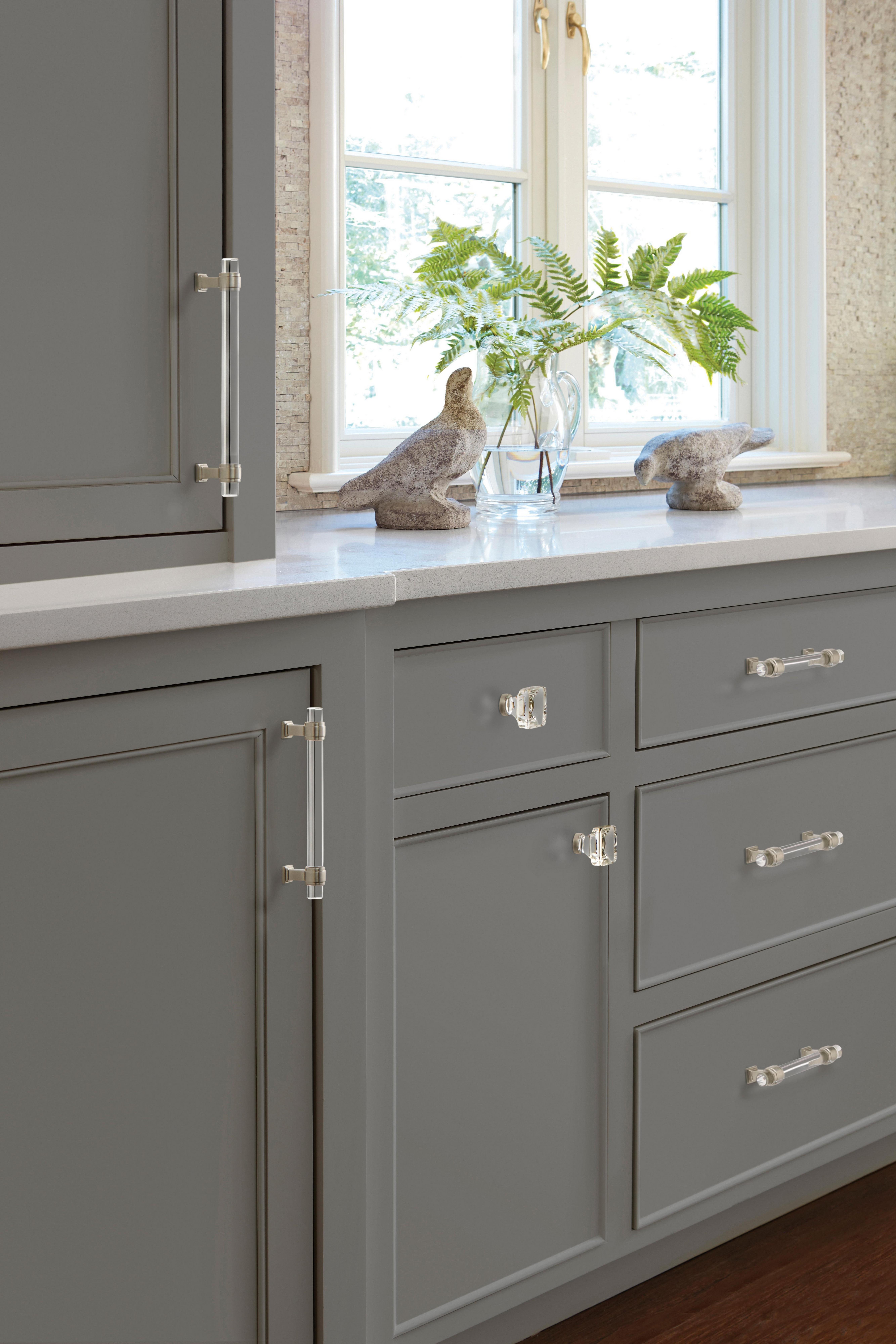 - Complete the look with matching cabinet knobs, drawer pulls and bath hardware from the Amerock Glacio collection