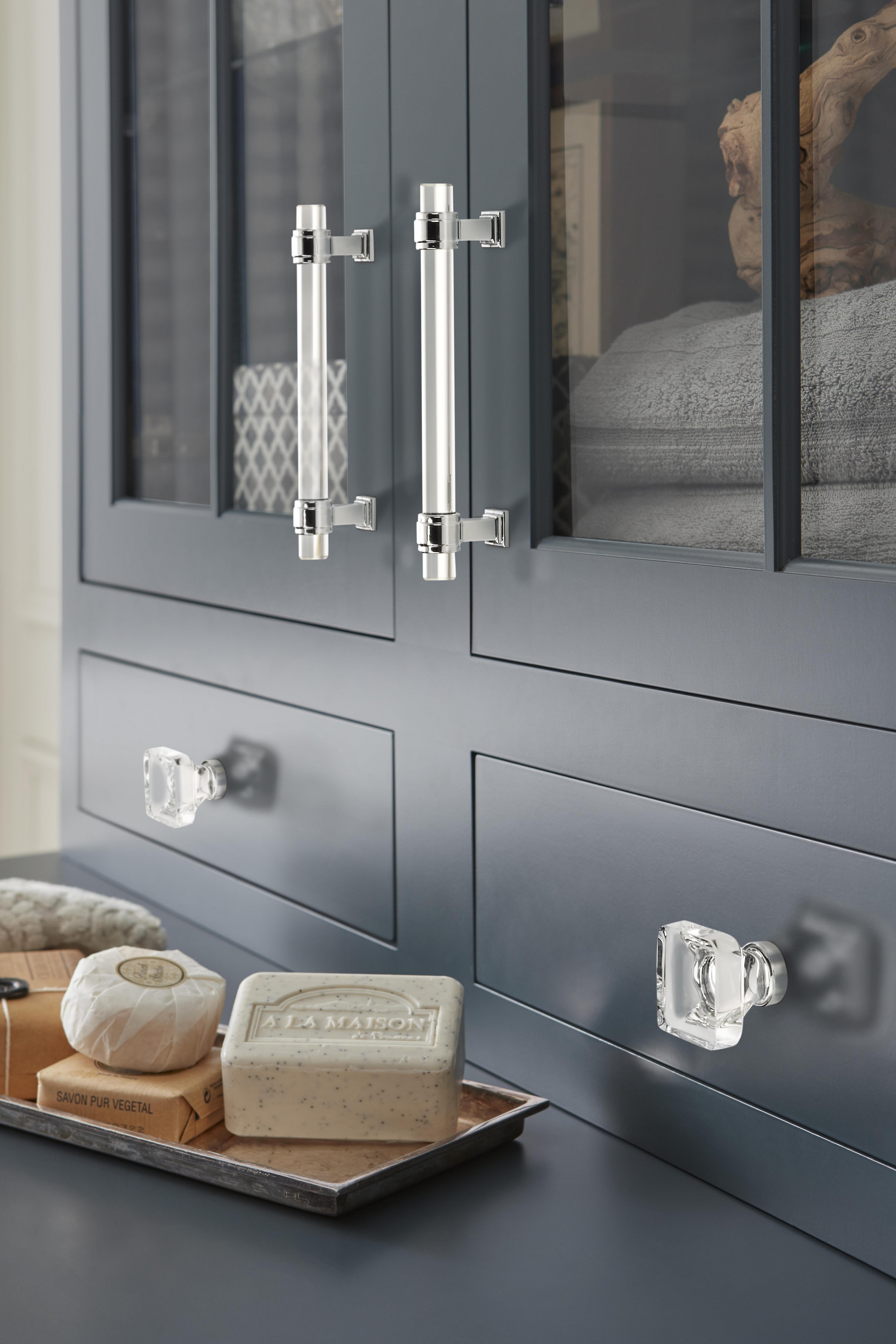 - Complete the look with matching cabinet knobs, drawer pulls and bath hardware from the Amerock Glacio collection