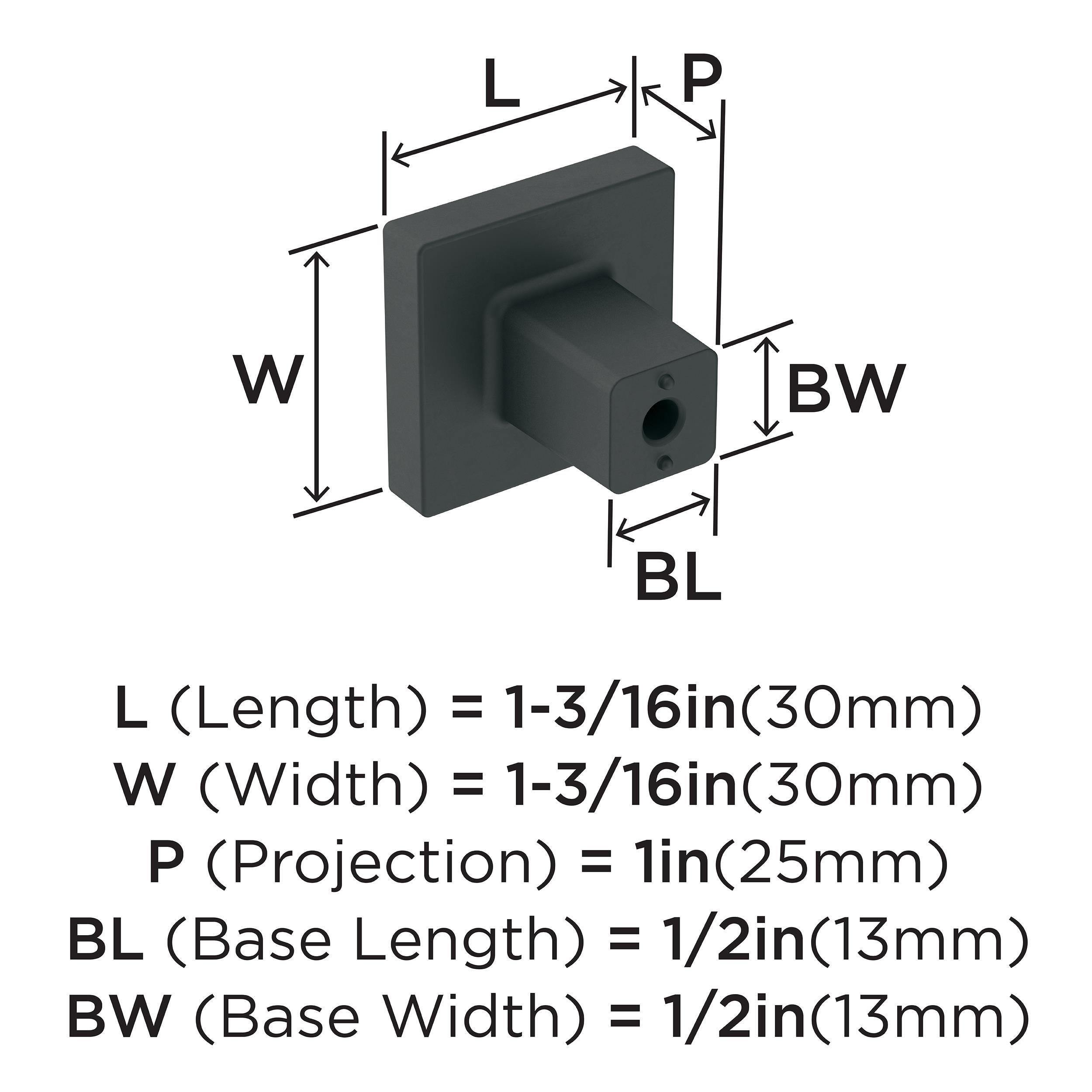 The Amerock Monument 1-3/16 in. Matte Black Cabinet Knob is finished in matte black matte. The modern square design of Monument offers sleek, sophisticated allure with a contemporary European twist, making a bold statement with a refined touch.
