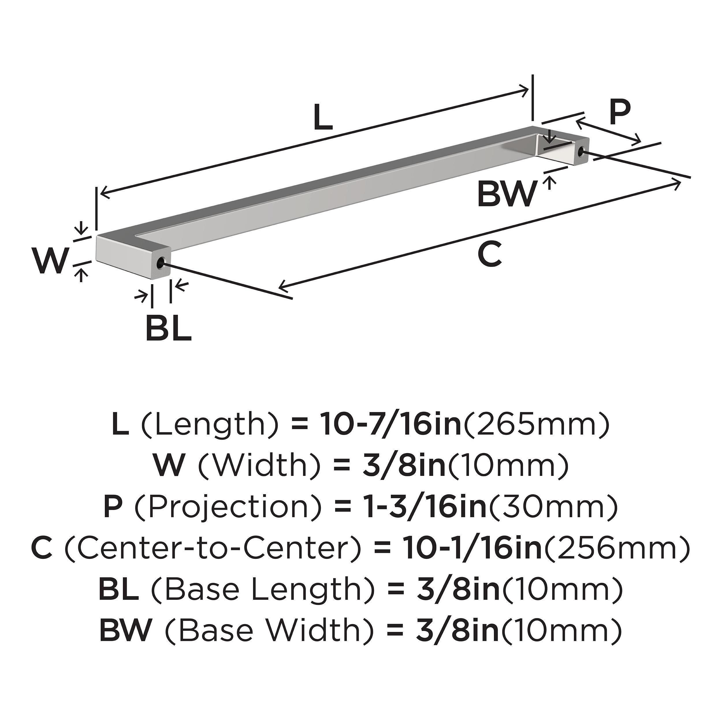 The Amerock Monument 10-1/16 in. Center-to-Center Polished Chrome Cabinet Pull is finished in polished chrome polished. The modern square design of Monument offers sleek, sophisticated allure with a contemporary European twist, making a bold statement with a refined touch.