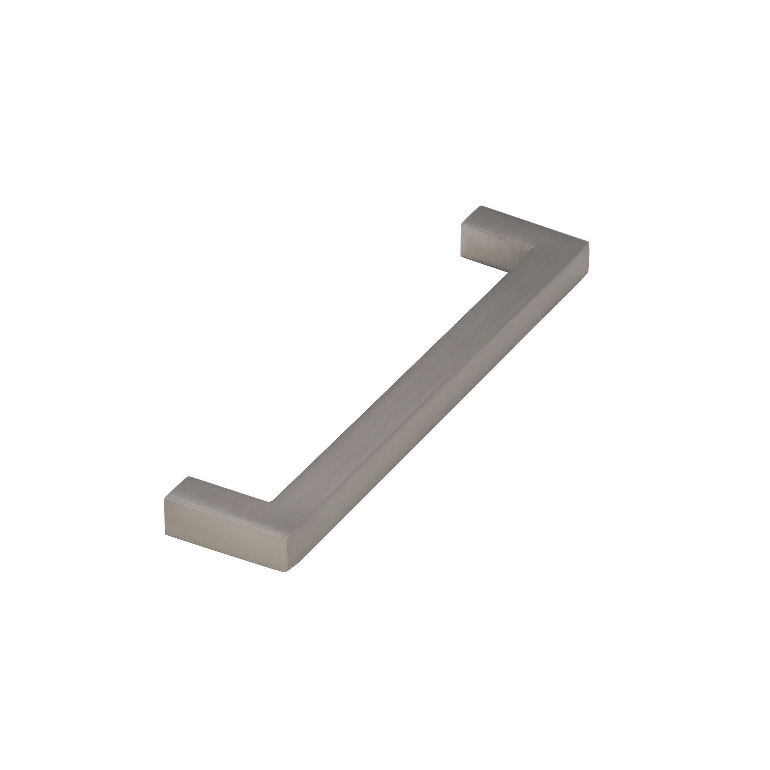 The Amerock Monument 5-1/16 in. Center-to-Center Satin Nickel Cabinet Pull is finished in satin nickel satin. The modern square design of Monument offers sleek, sophisticated allure with a contemporary European twist, making a bold statement with a refined touch.
