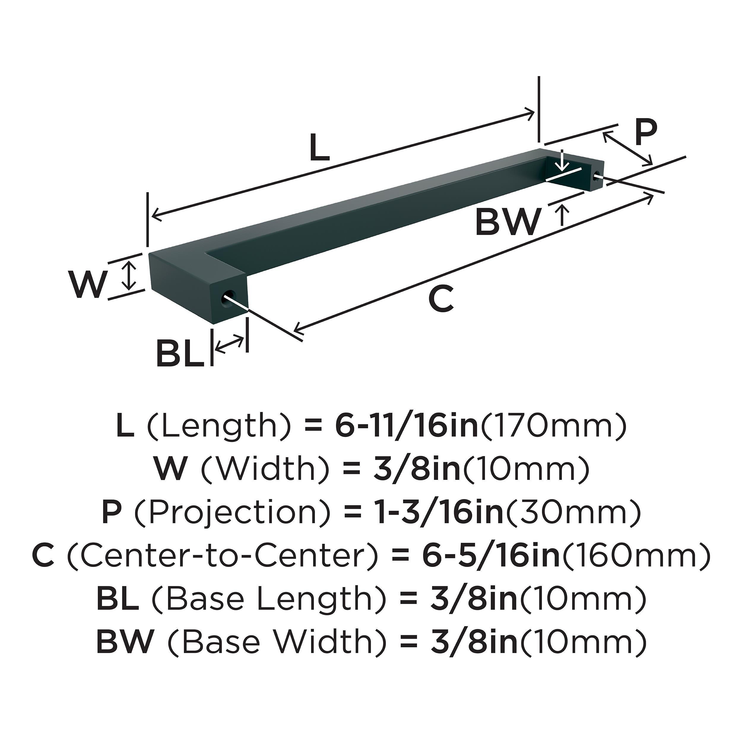 The Amerock Monument 6-5/16 in. Center-to-Center Matte Black Cabinet Pull is finished in matte black matte. The modern square design of Monument offers sleek, sophisticated allure with a contemporary European twist, making a bold statement with a refined touch.