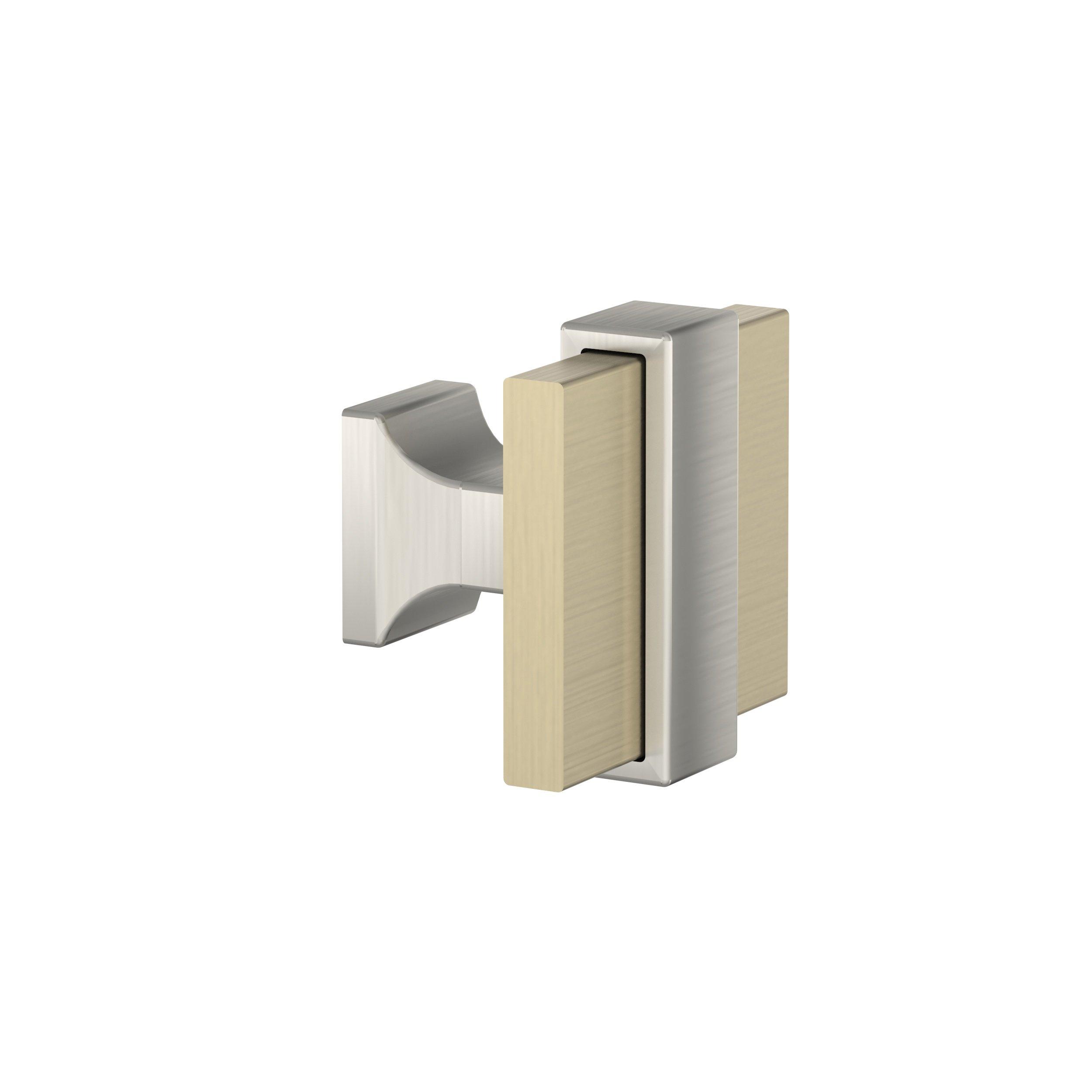 The Amerock Overton 1-3/8 in. Golden Champagne and Satin Nickel Cabinet Knob is finished in satin nickel satin. Inspired by new traditional styling, the Overton collection offers a luxurious, split-finish design that accentuates its ribbonlike forms.