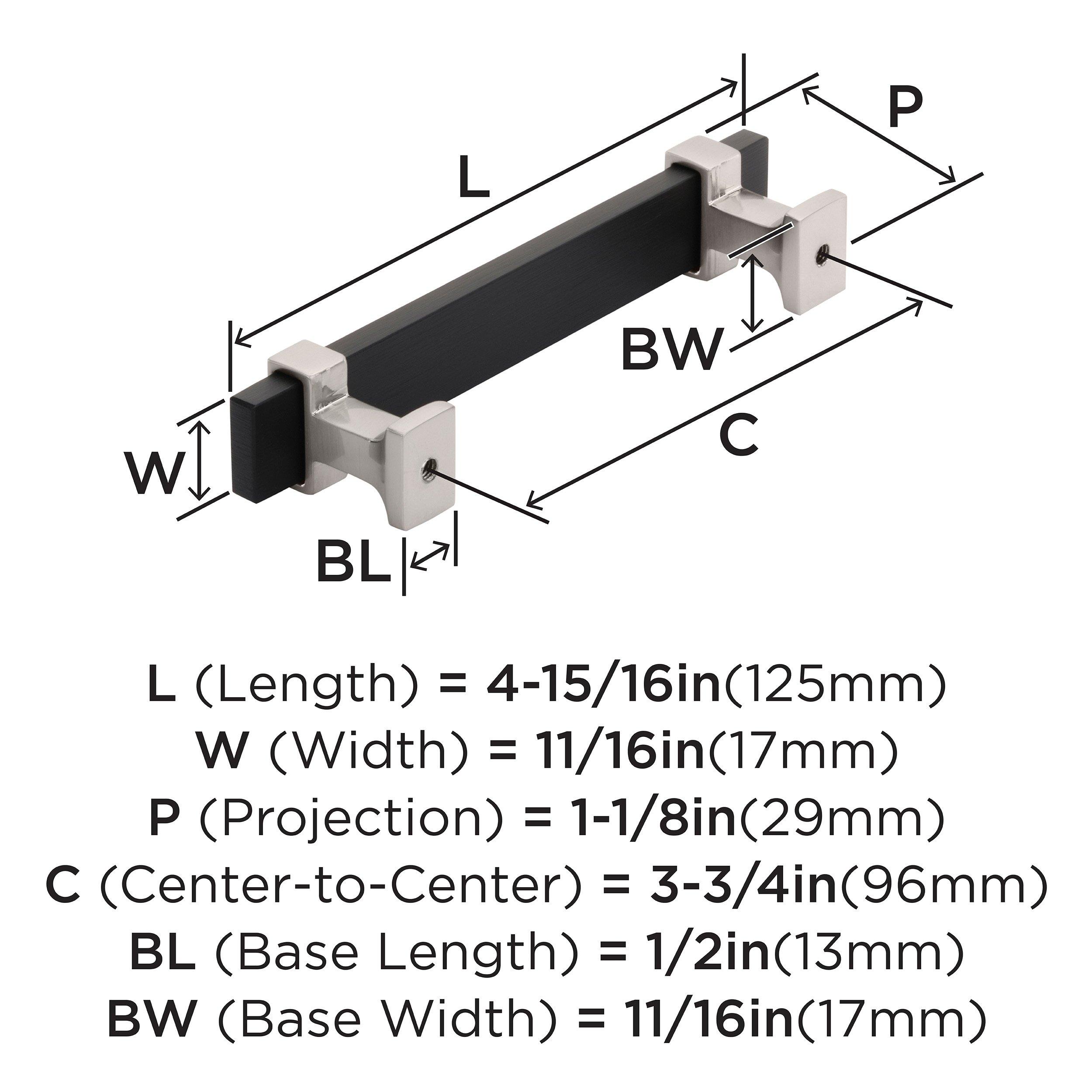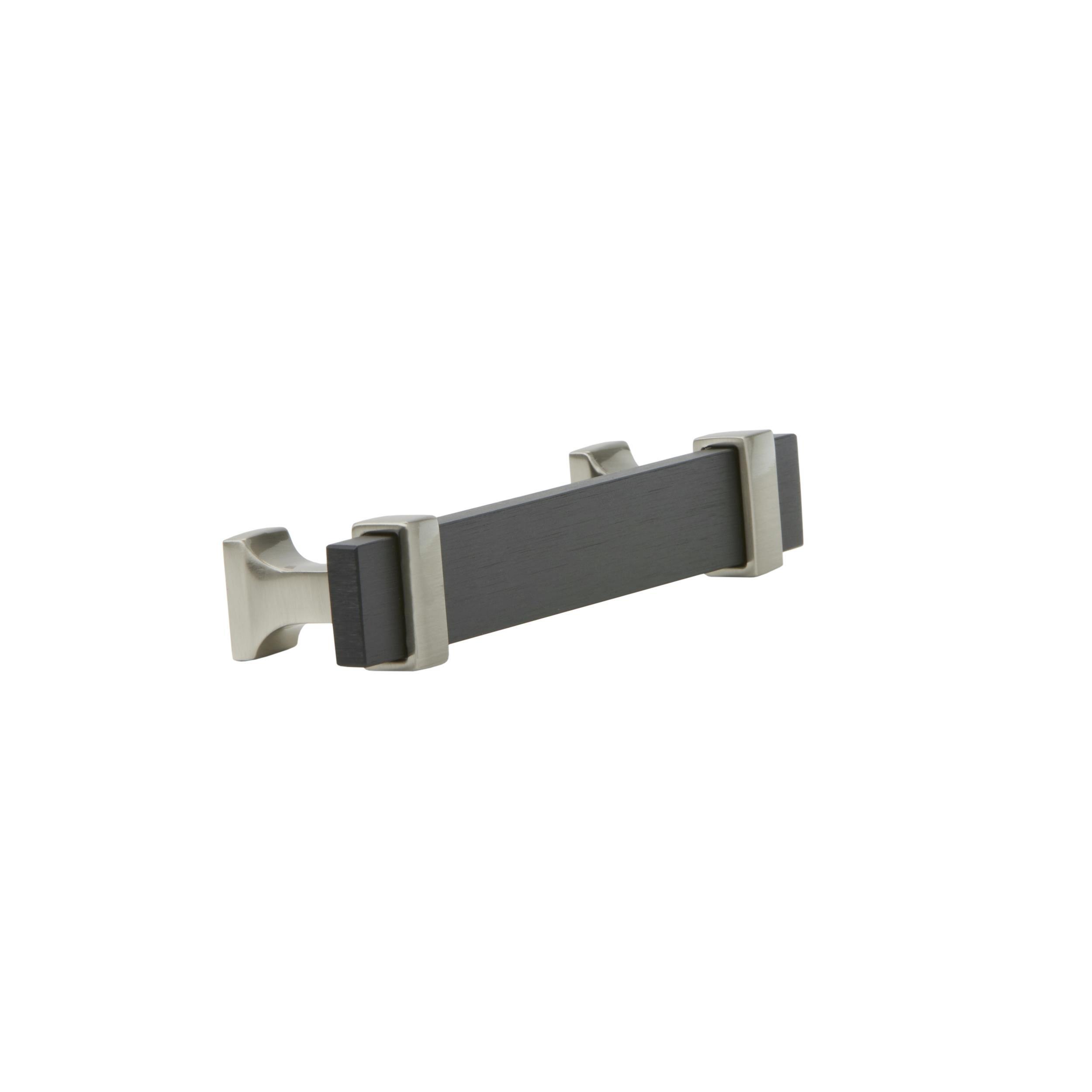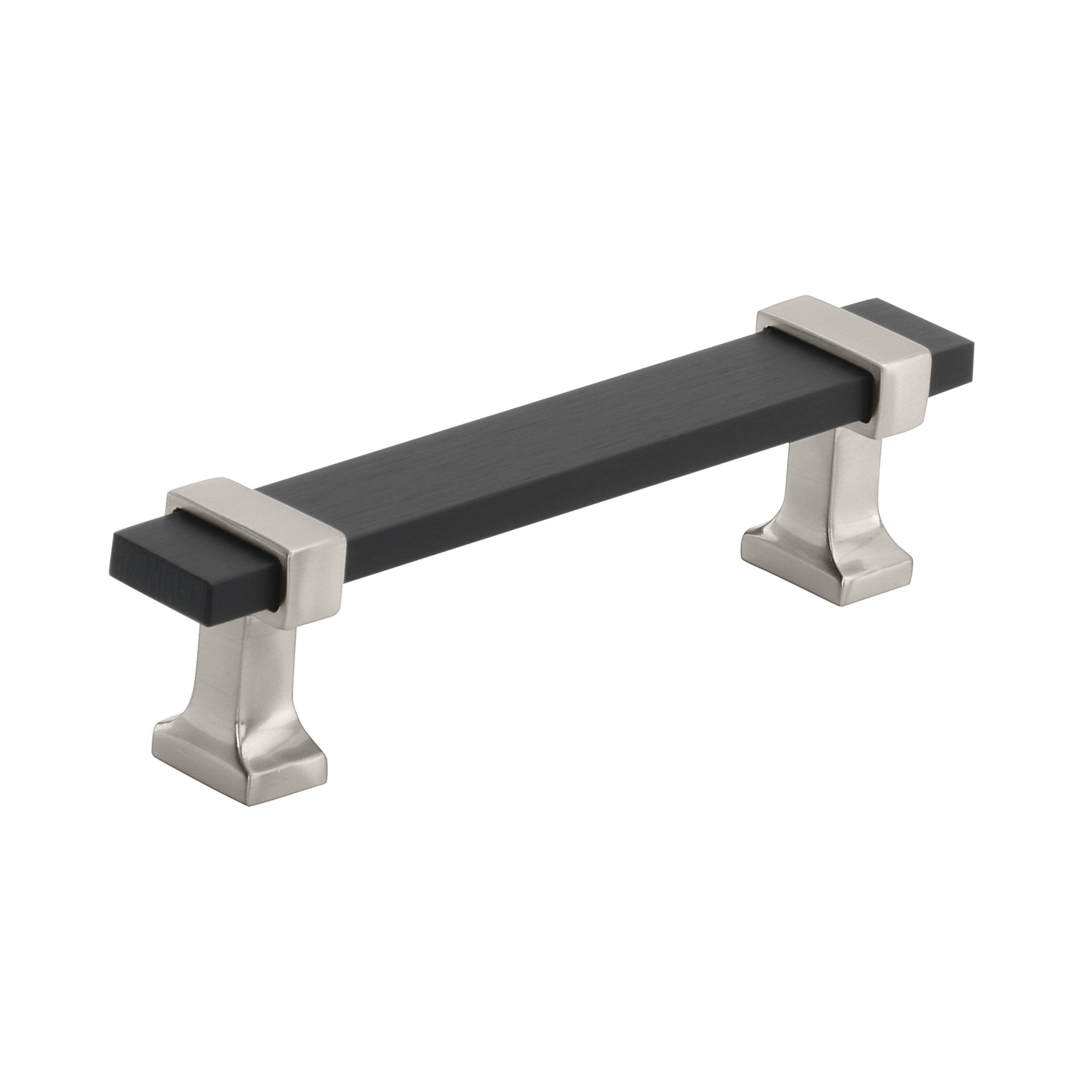 The Amerock Overton 3-3/4 in. Center-to-Center Brushed Matte Black and Satin Nickel Cabinet Pull is finished in satin nickel matte. Inspired by new traditional styling, the Overton collection offers a luxurious, split-finish design that accentuates its ribbonlike forms.