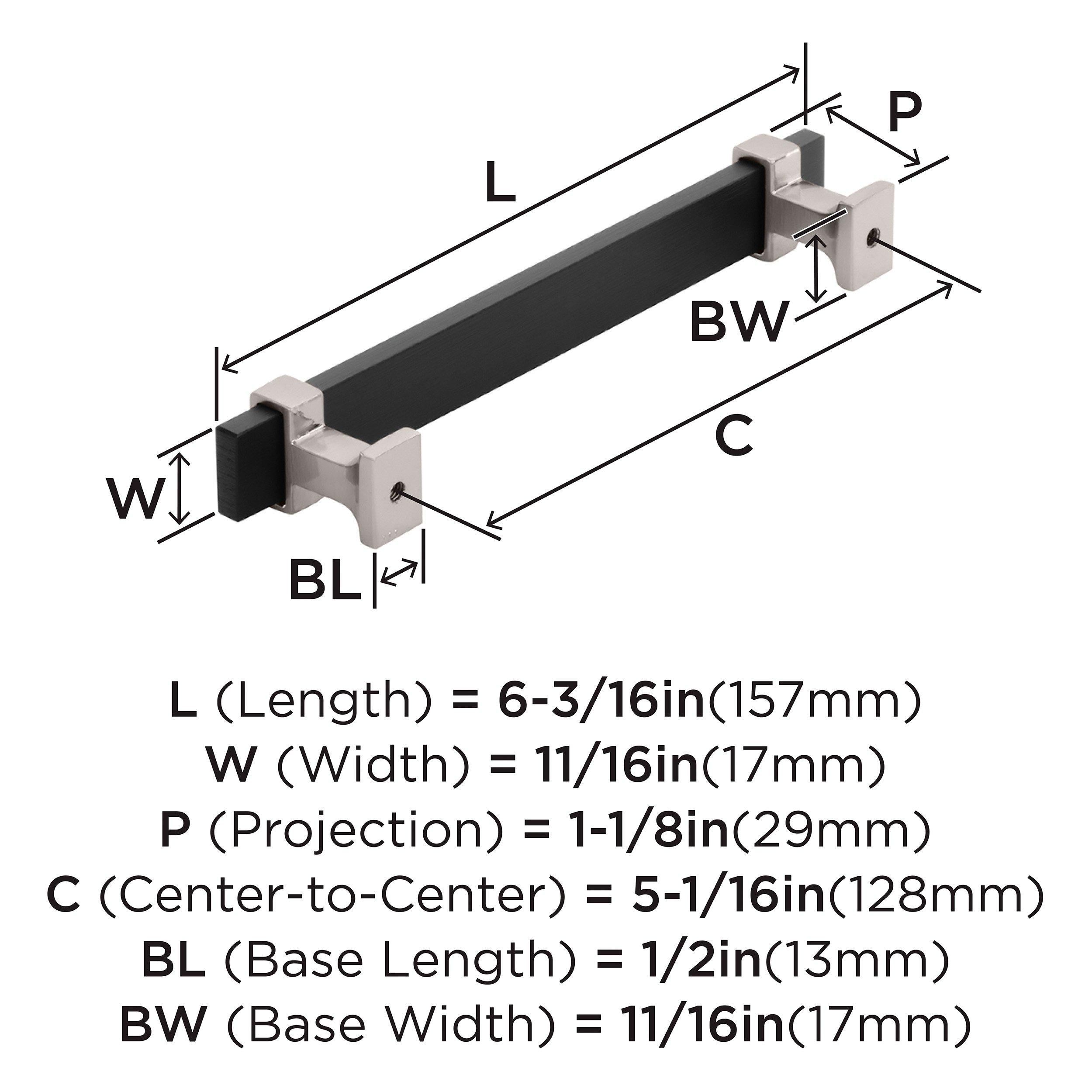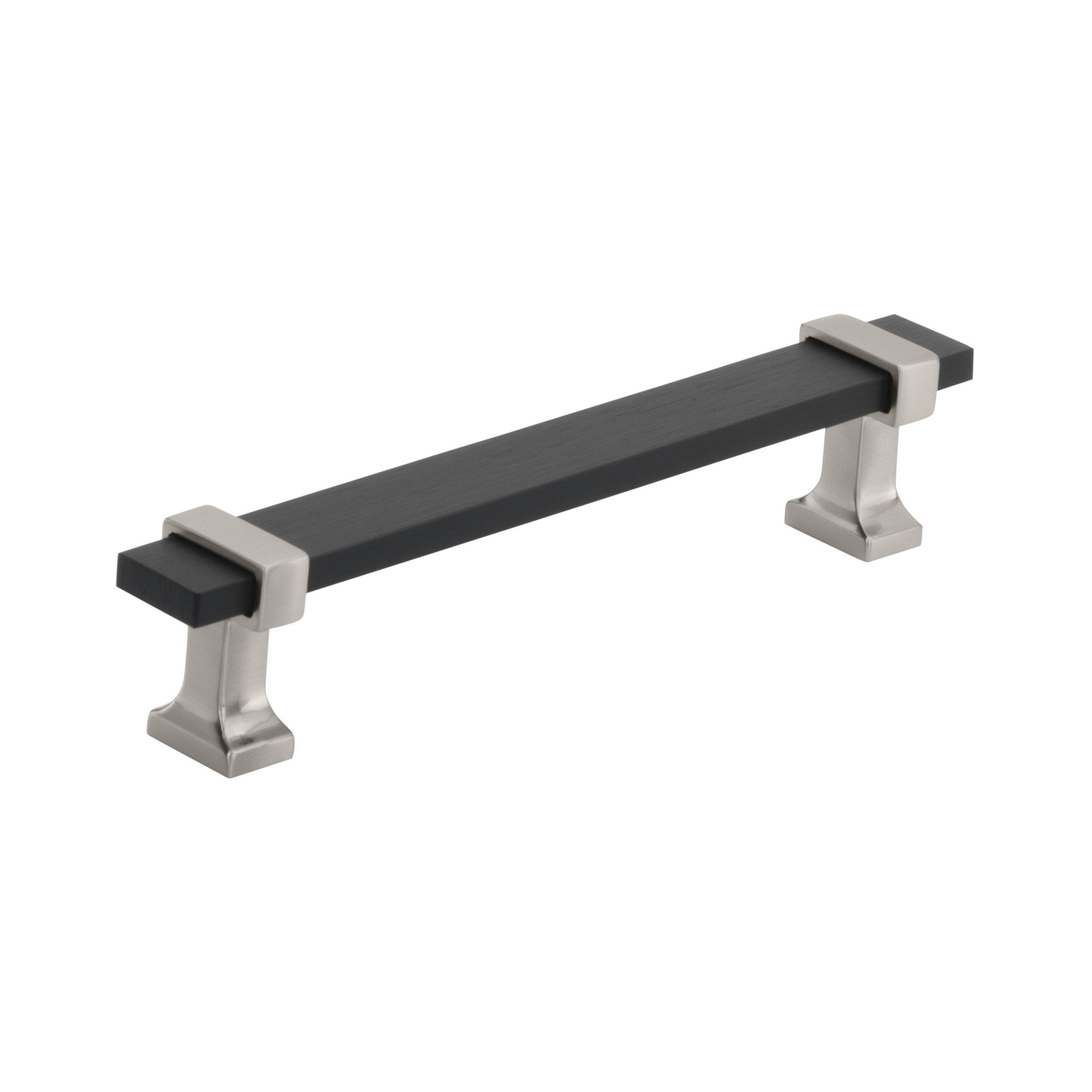 The Amerock Overton 5-1/16 in. Center-to-Center Brushed Matte Black and Satin Nickel Cabinet Pull is finished in satin nickel matte. Inspired by new traditional styling, the Overton collection offers a luxurious, split-finish design that accentuates its ribbonlike forms.