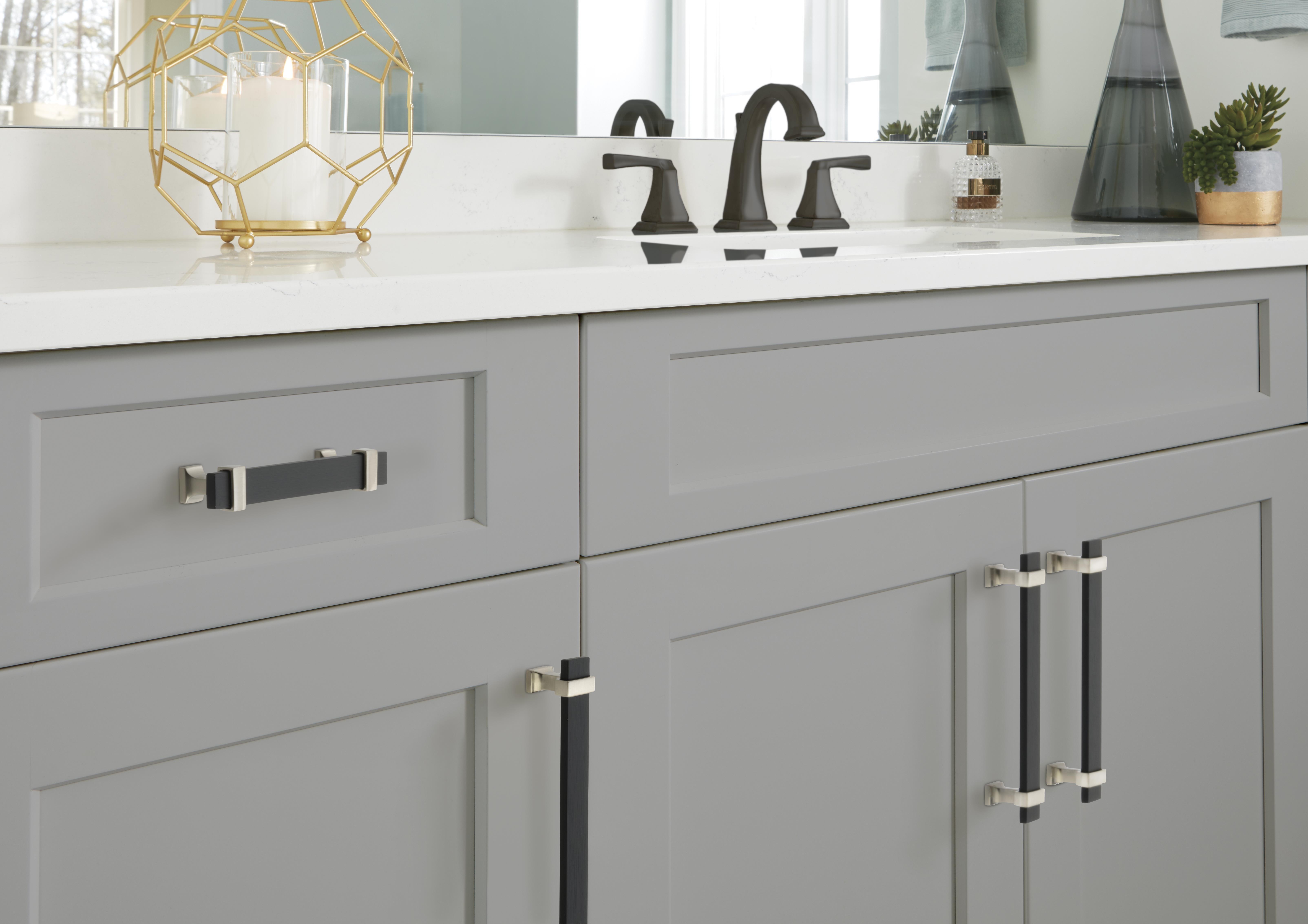- Complete the look with matching cabinet knobs, drawer pulls and bath hardware from the Amerock Overton collection