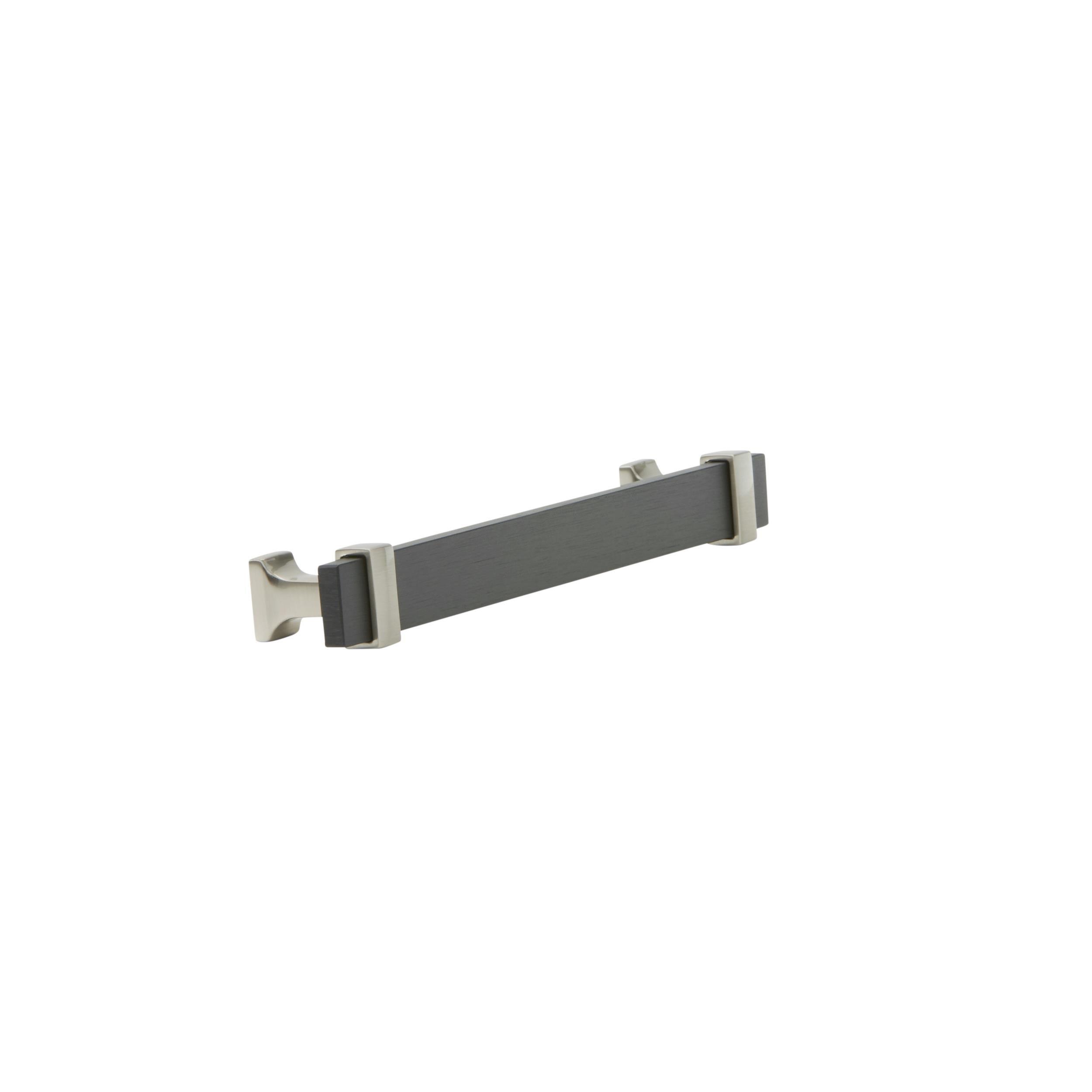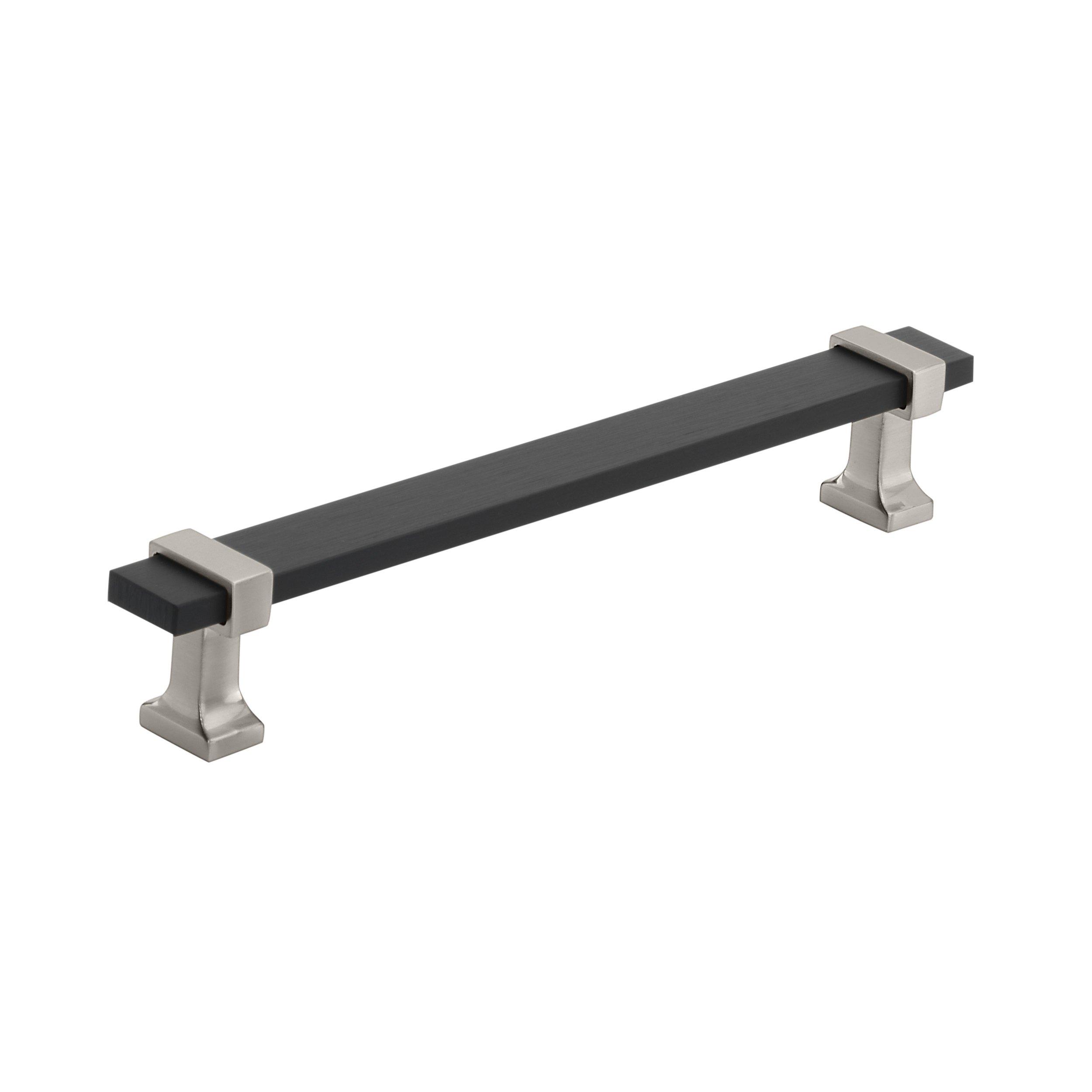 The Amerock Overton 6-5/16 in. Center-to-Center Brushed Matte Black and Satin Nickel Cabinet Pull is finished in satin nickel matte. Inspired by new traditional styling, the Overton collection offers a luxurious, split-finish design that accentuates its ribbonlike forms.