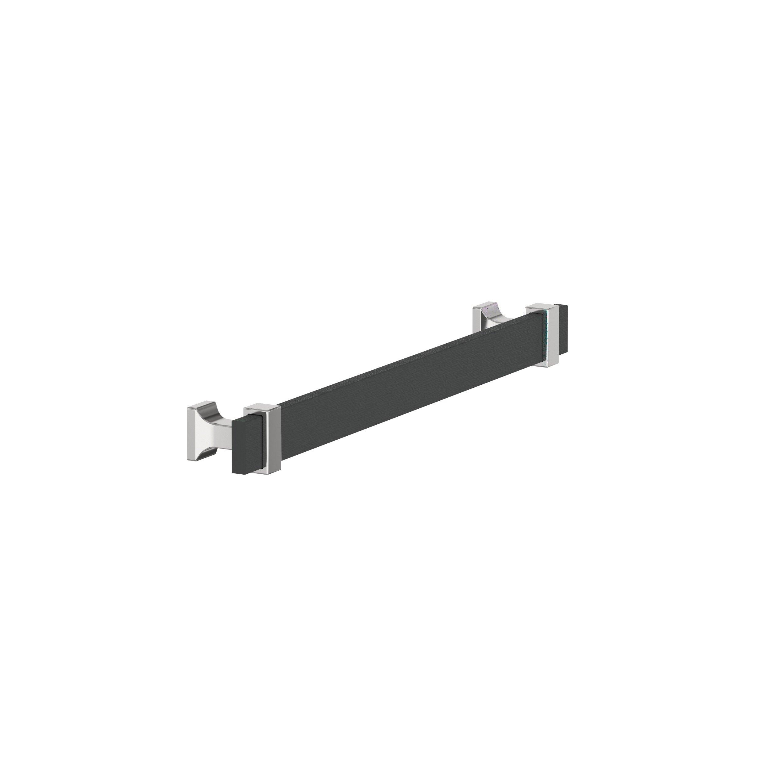 The Amerock Overton 7-9/16 in. Center-to-Center Brushed Matte Black and Polished Chrome Cabinet Pull is finished in polished chrome matte. Inspired by new traditional styling, the Overton collection offers a luxurious, split-finish design that accentuates its ribbonlike forms.