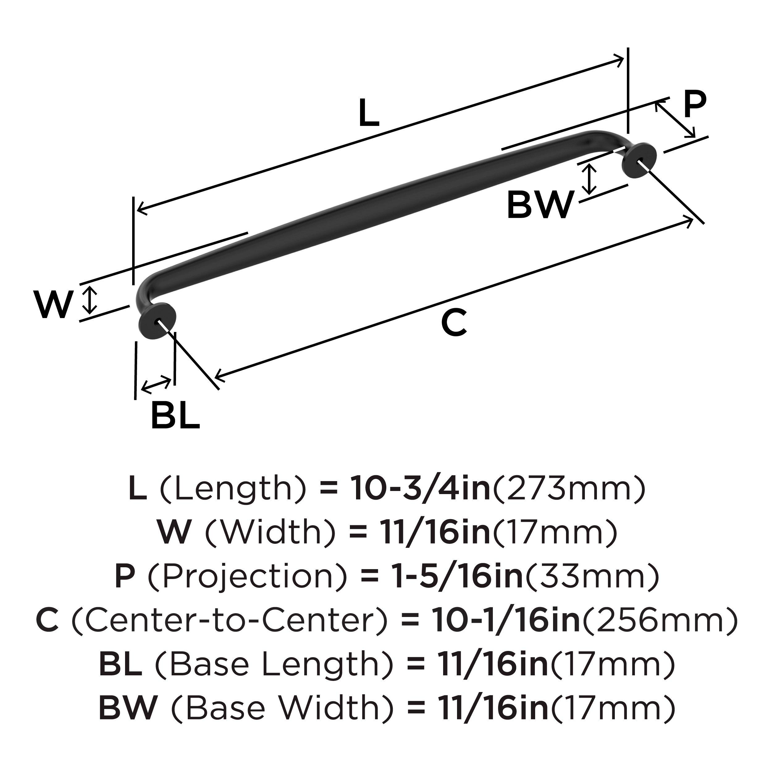 The Amerock Renown 10-1/16 in. Center-to-Center Matte Black Cabinet Pull is finished in matte black matte. A nod to new traditional style, the Renown collection imparts refined simplicity and approachable character that enhances the décor.