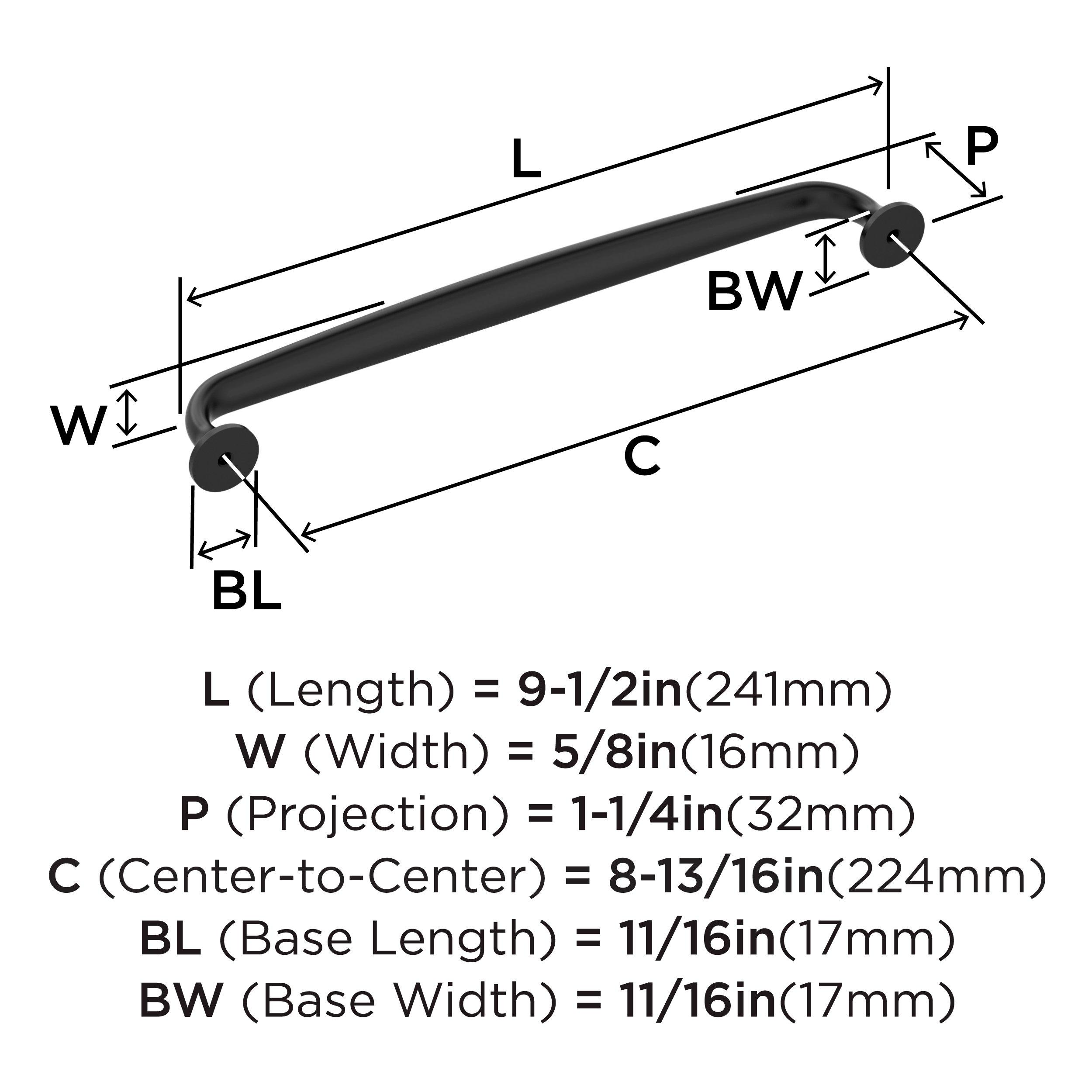 The Amerock Renown 8-13/16 in. Center-to-Center Matte Black Cabinet Pull is finished in matte black matte. A nod to new traditional style, the Renown collection imparts refined simplicity and approachable character that enhances the décor.